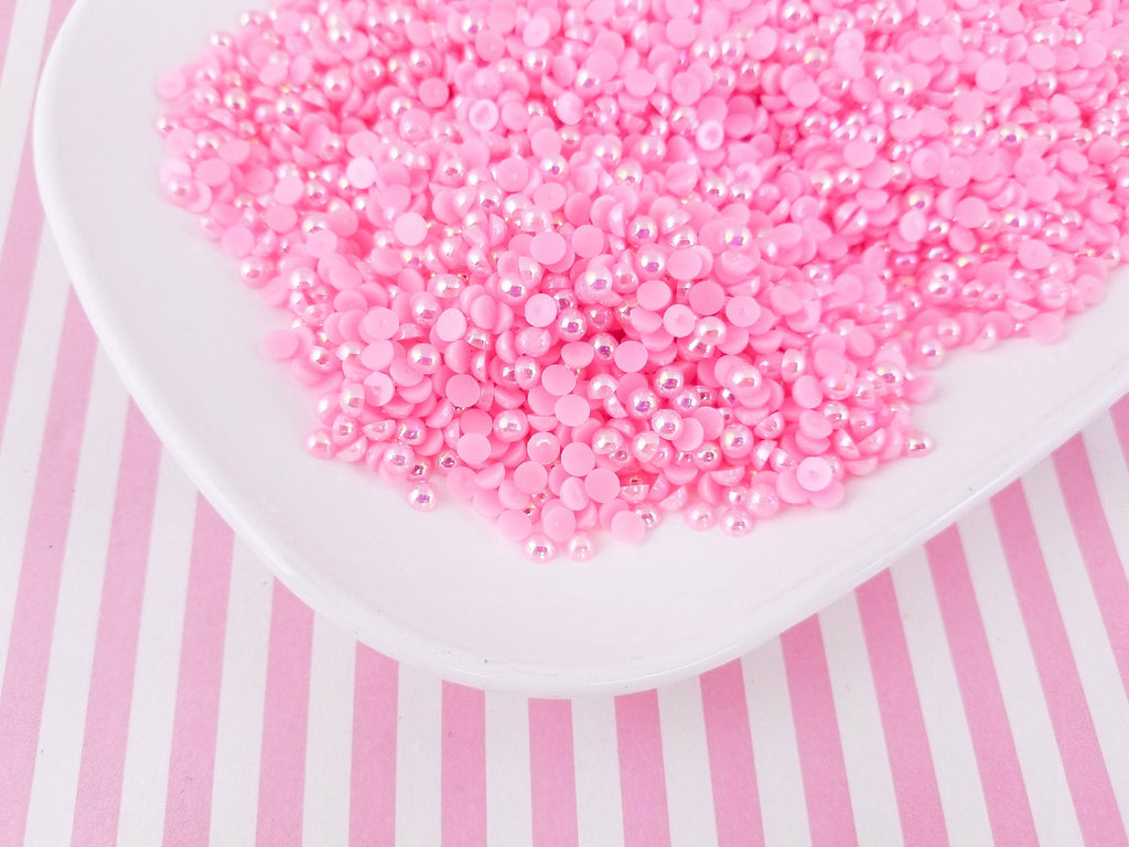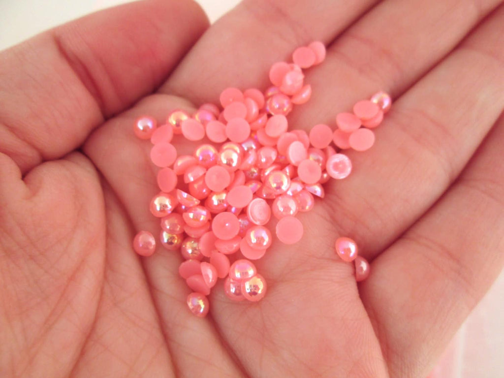 500 Two tone 4mm Pastel Blue and Pink pearl cabochons, flat back pearls, Plastic Pearls, Fake Pearls