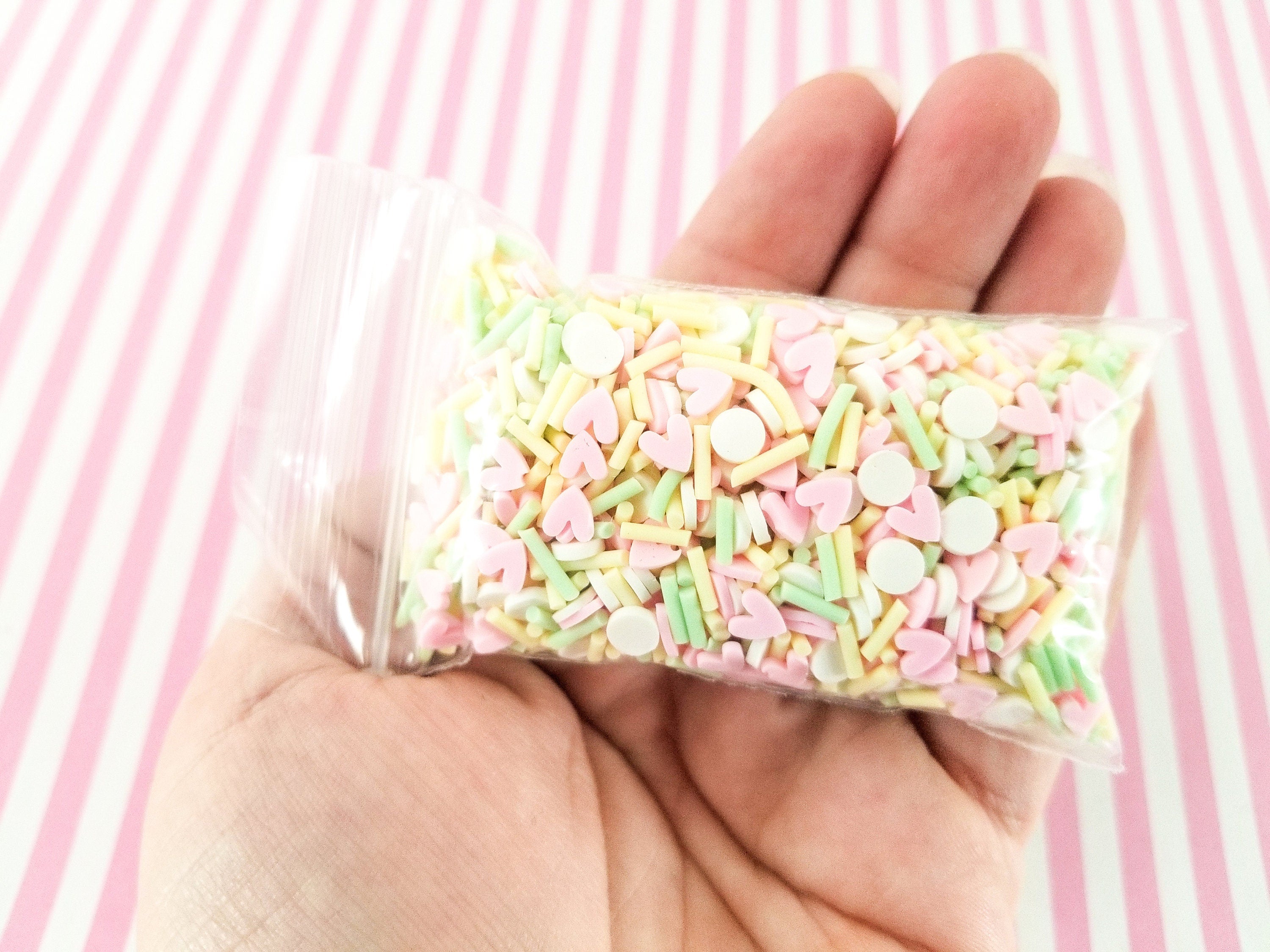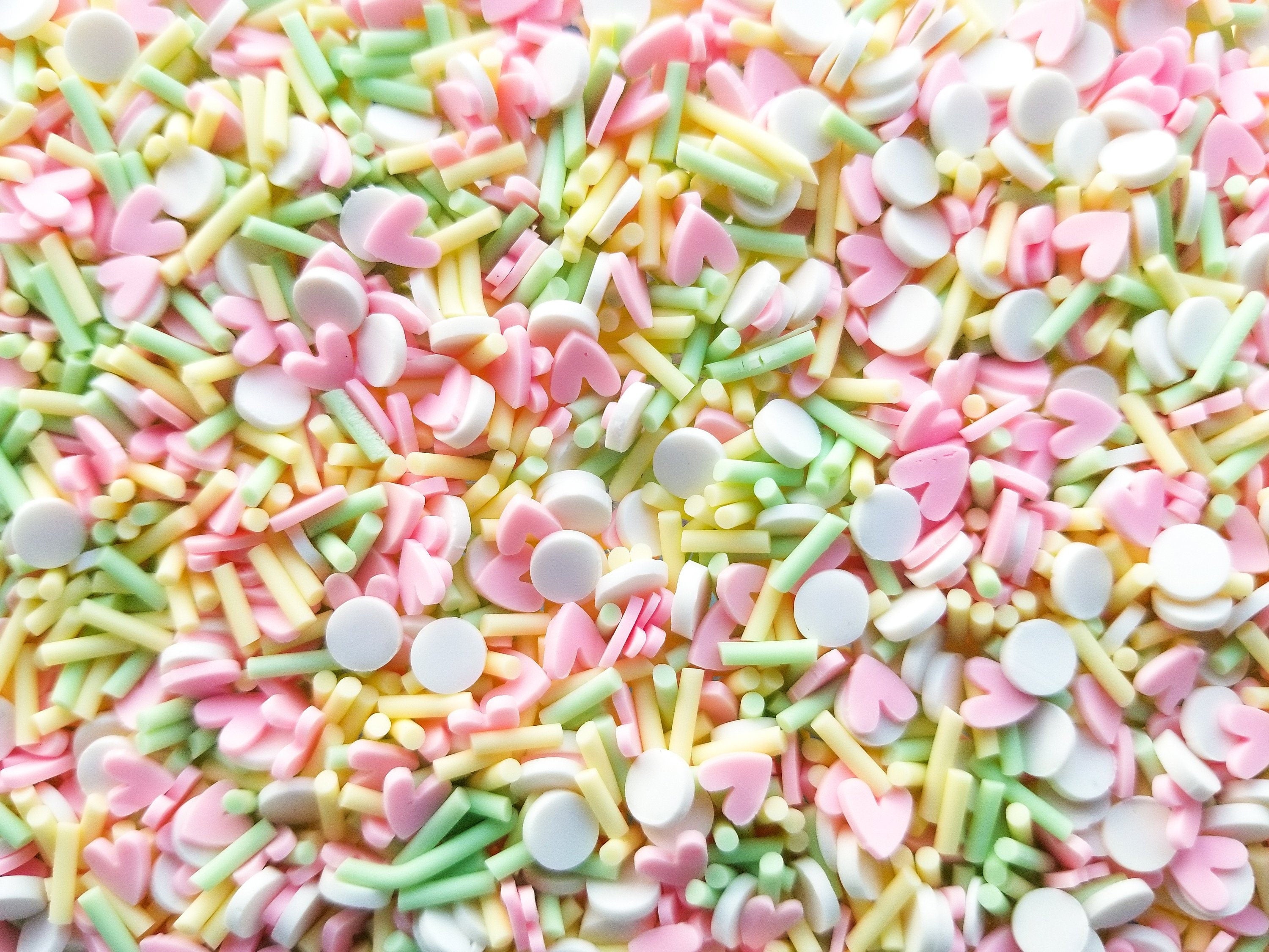 Sugar Baby, Pastel Yellow and Green Sprinkles with White and Pink, Polymer Clay Fake Sprinkles, Decoden Funfetti Jimmies E151