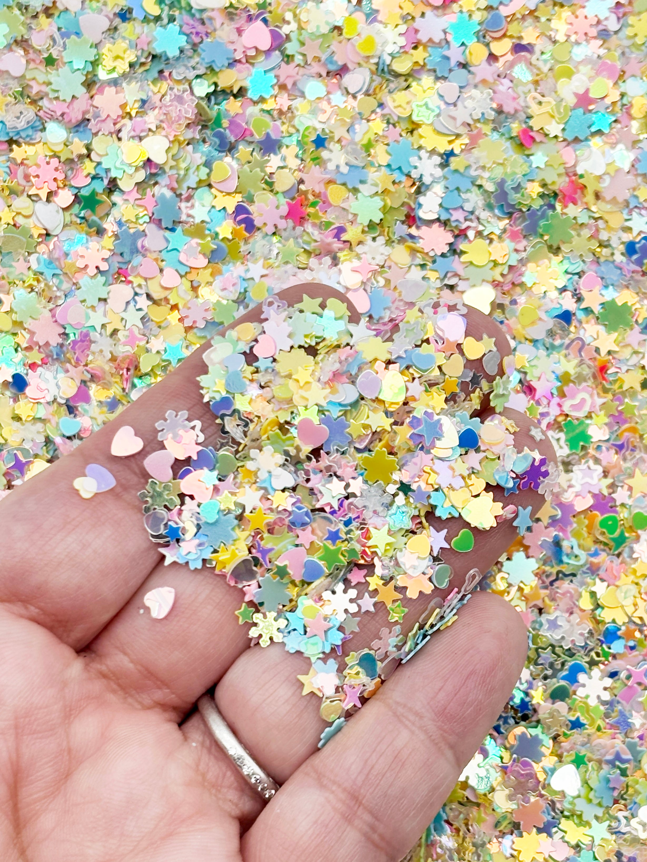 Iridescent Shift Pastel Golden Assorted Shape Glitter, Pick Your Amount, Shaker Mix, Kawaii Glitter U102