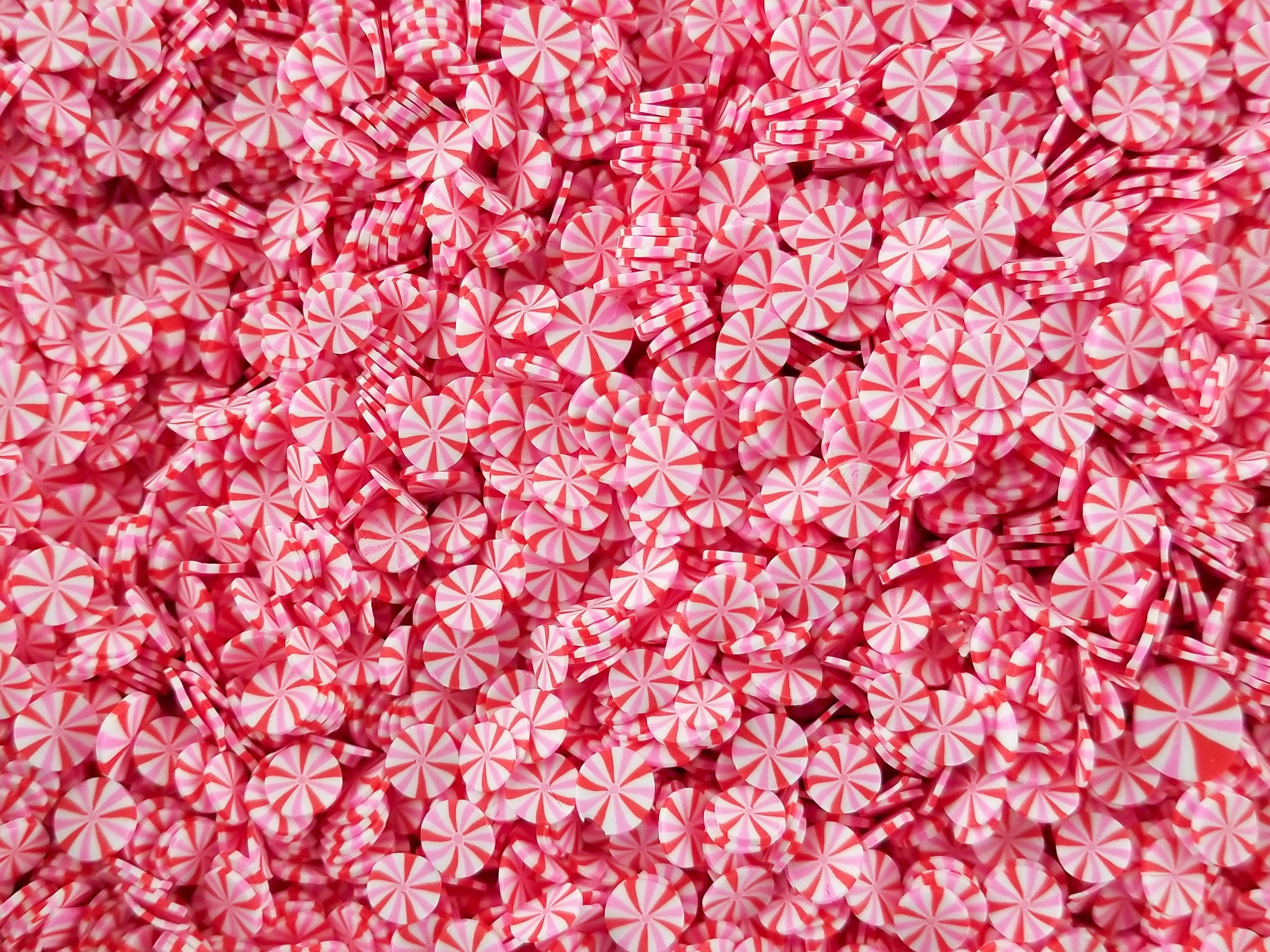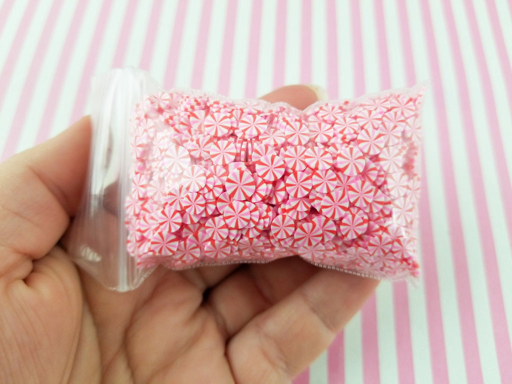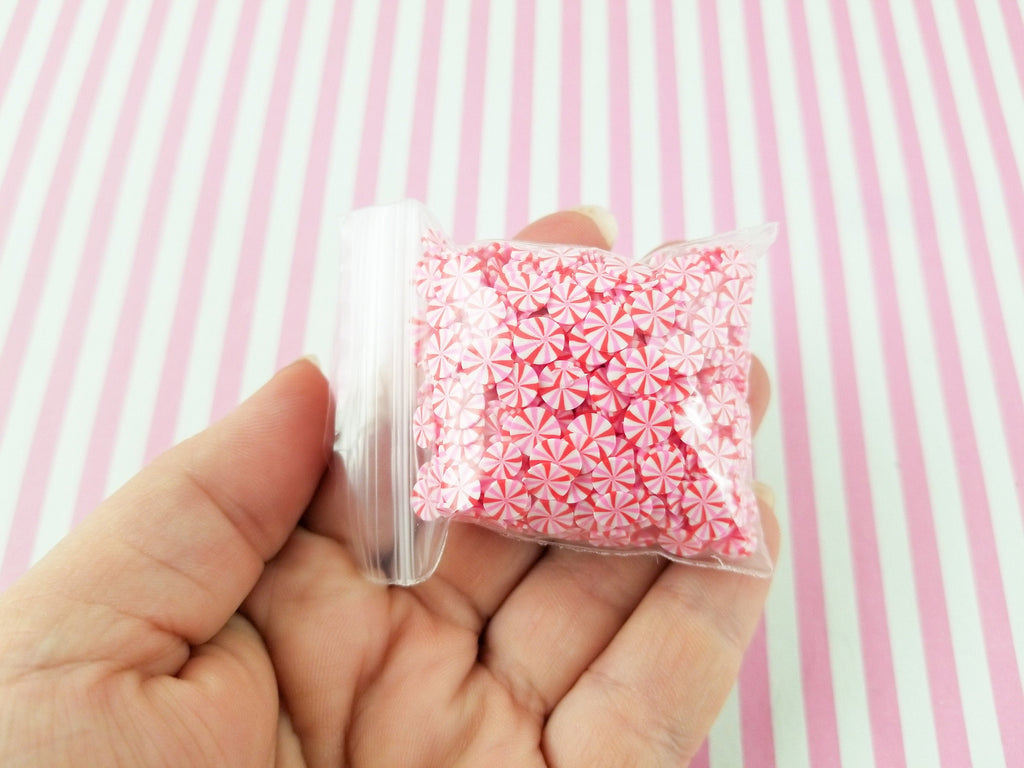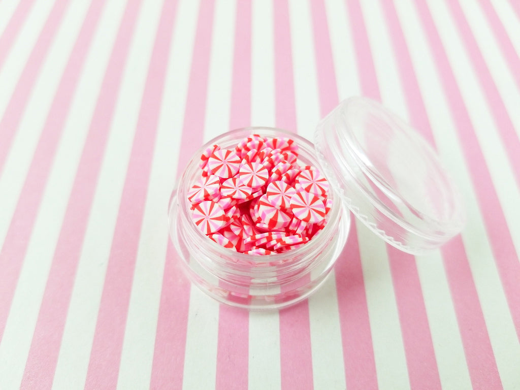 Two-tone Red and Pink Peppermint Polymer Clay Dessert Candy Slice Sprinkles, Christmas Nail Art Slices, Faux Dessert, Miniature Dessert, R70