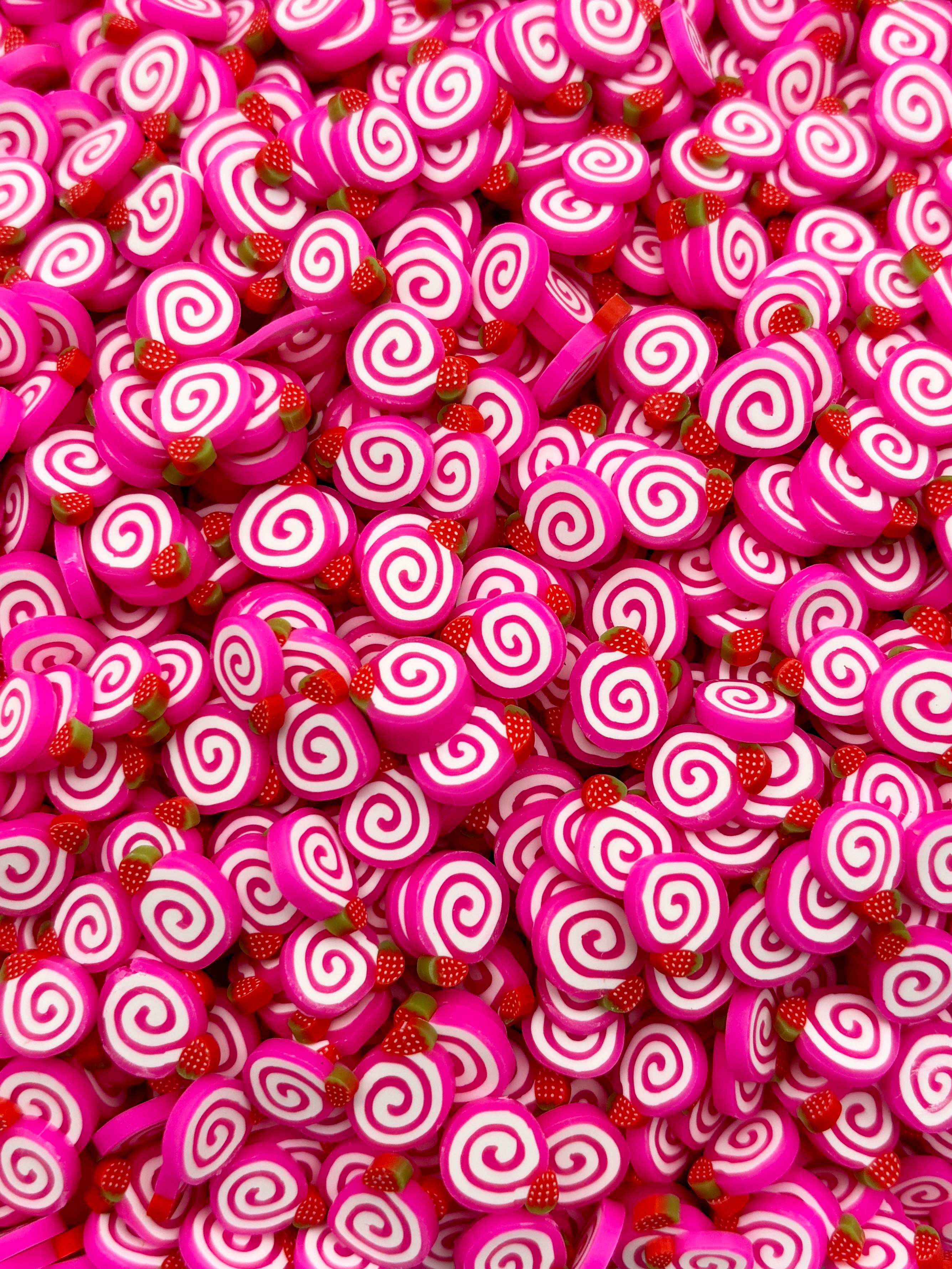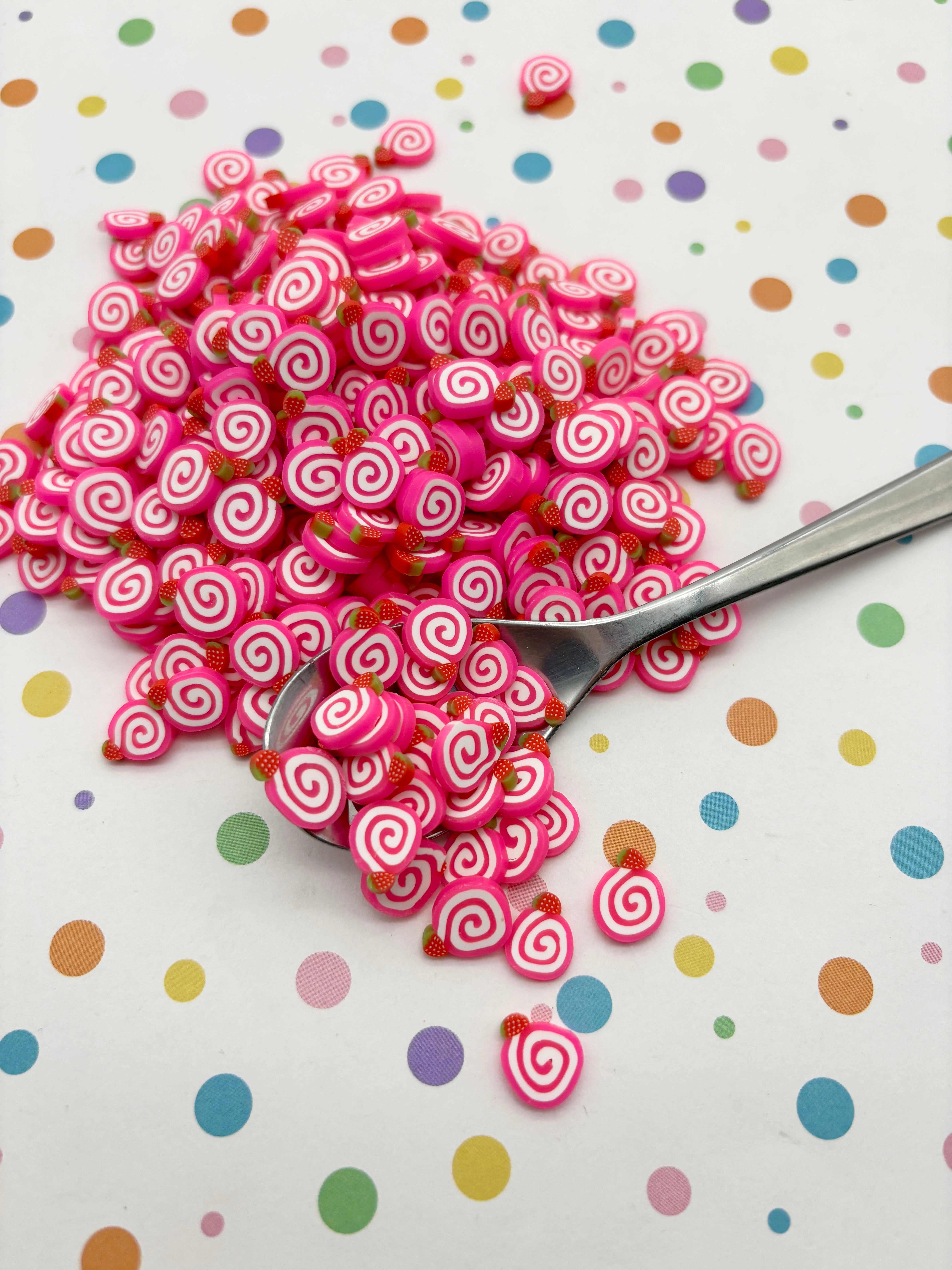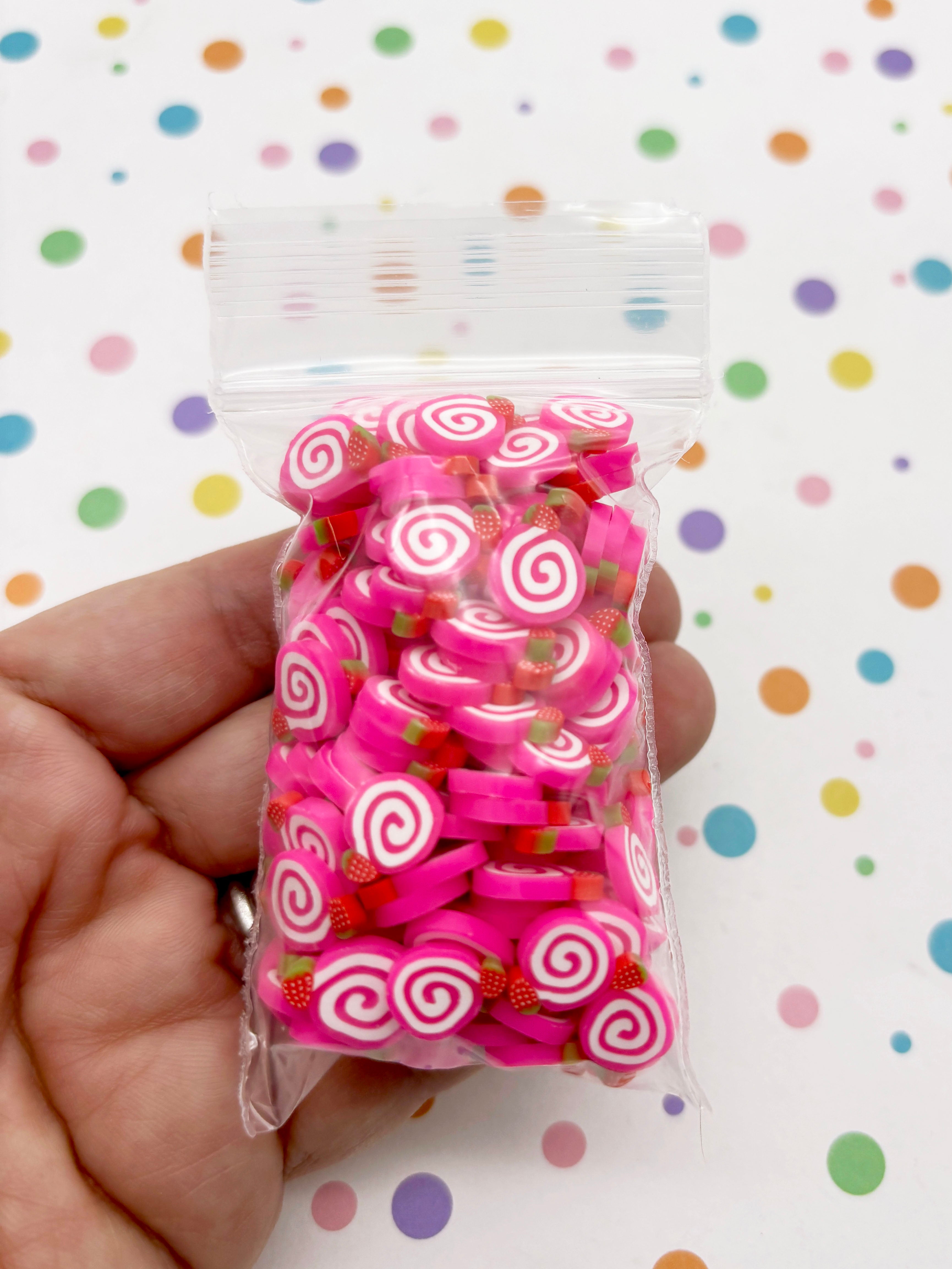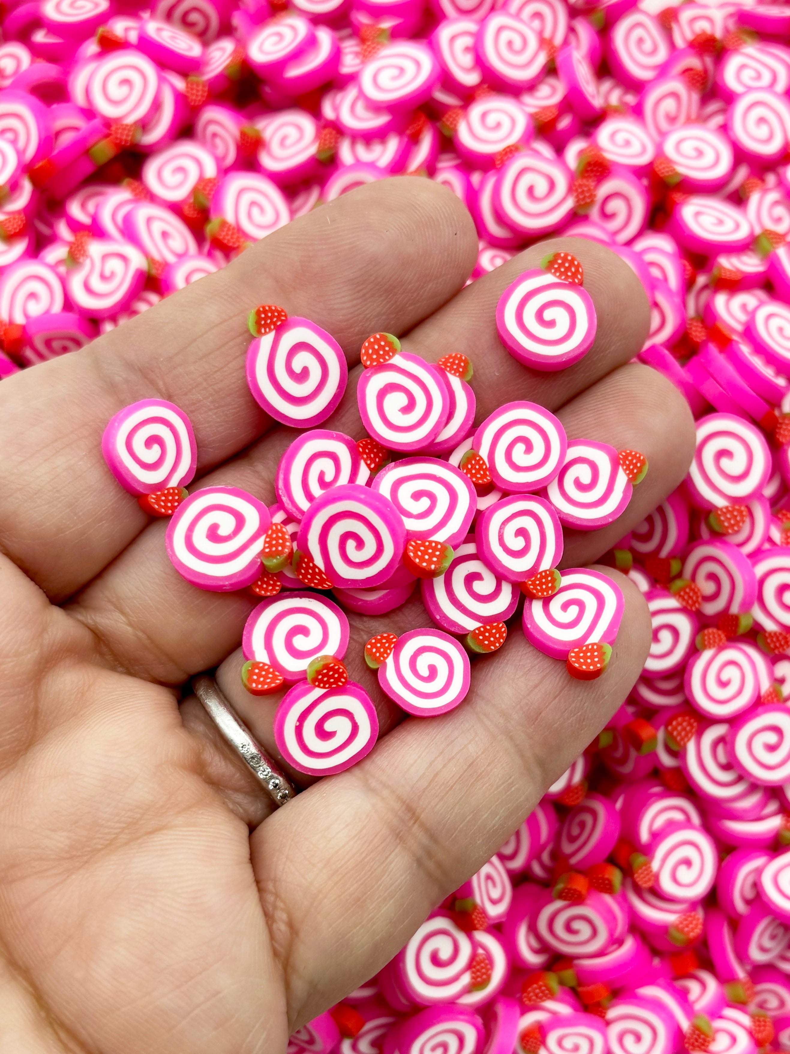 Larger 10mm Strawberry Roll Cake Polymer Clay Dessert Slices, Nail Art Slices, Faux Dessert, Miniature Dessert, R157