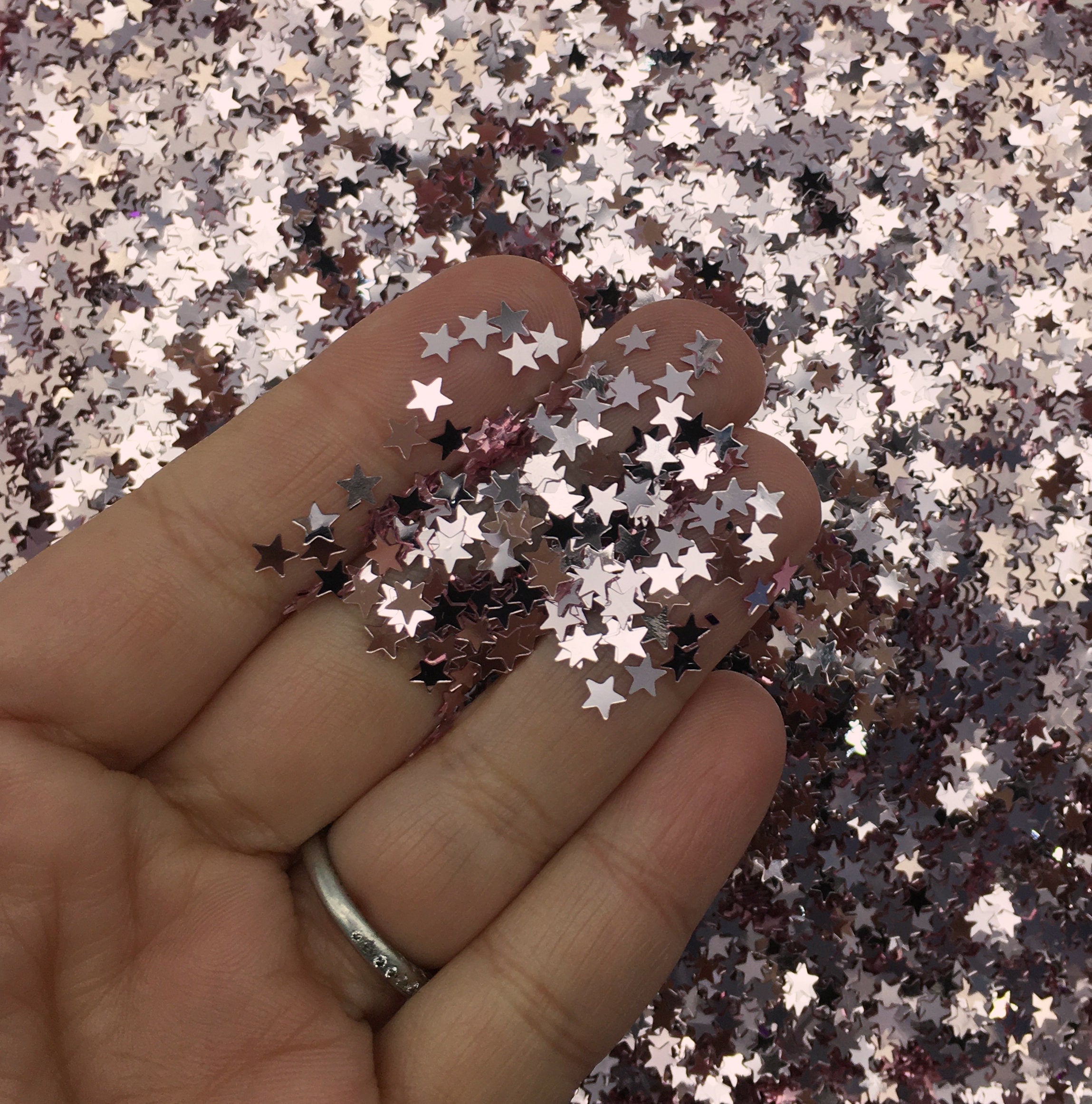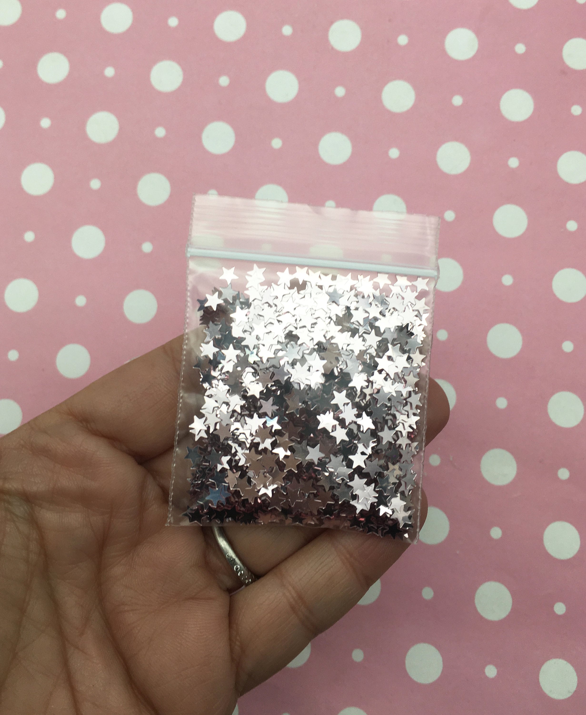 These are silver star glitters. These can add a splash of color to your decoden or resin creations.