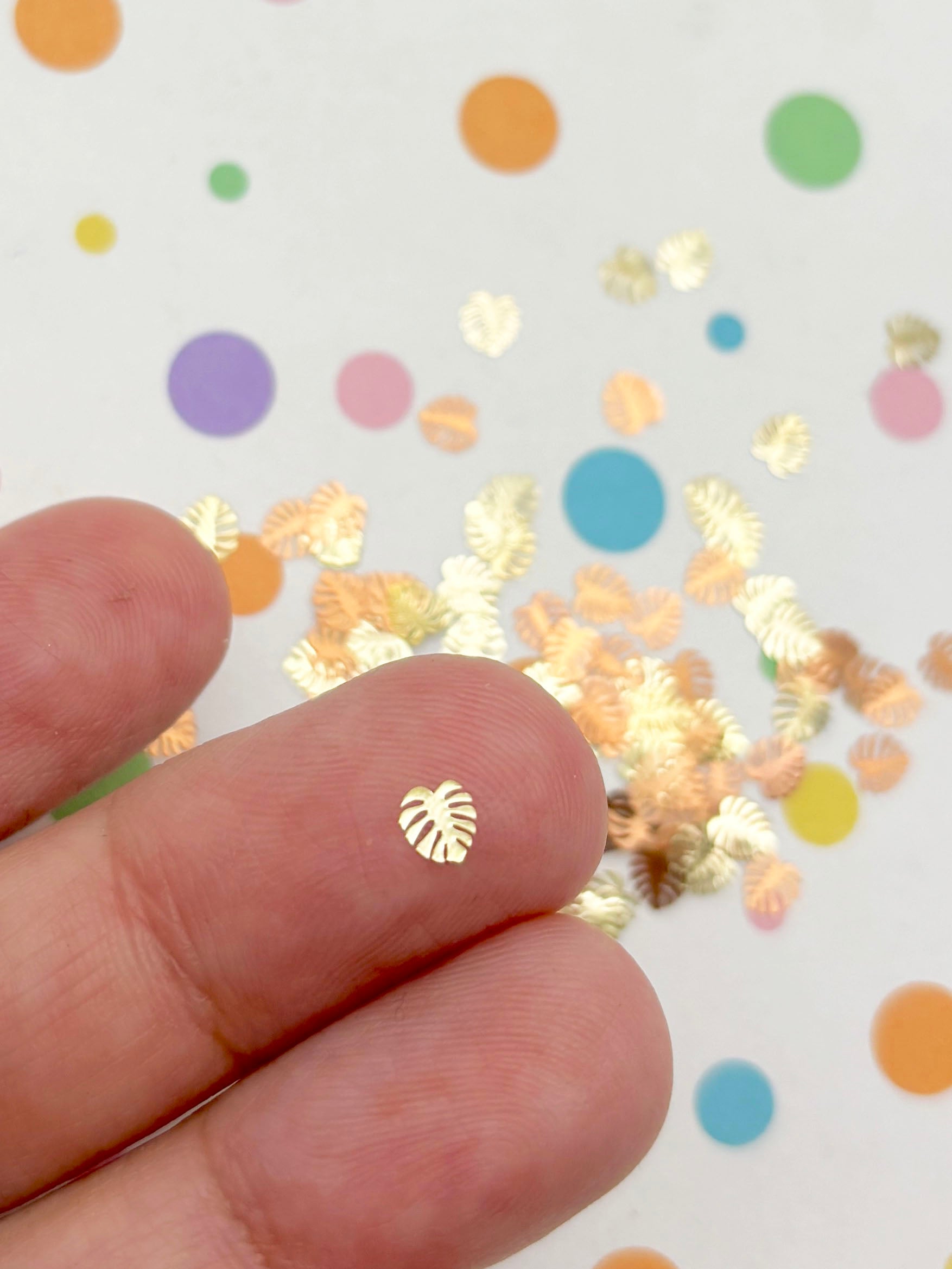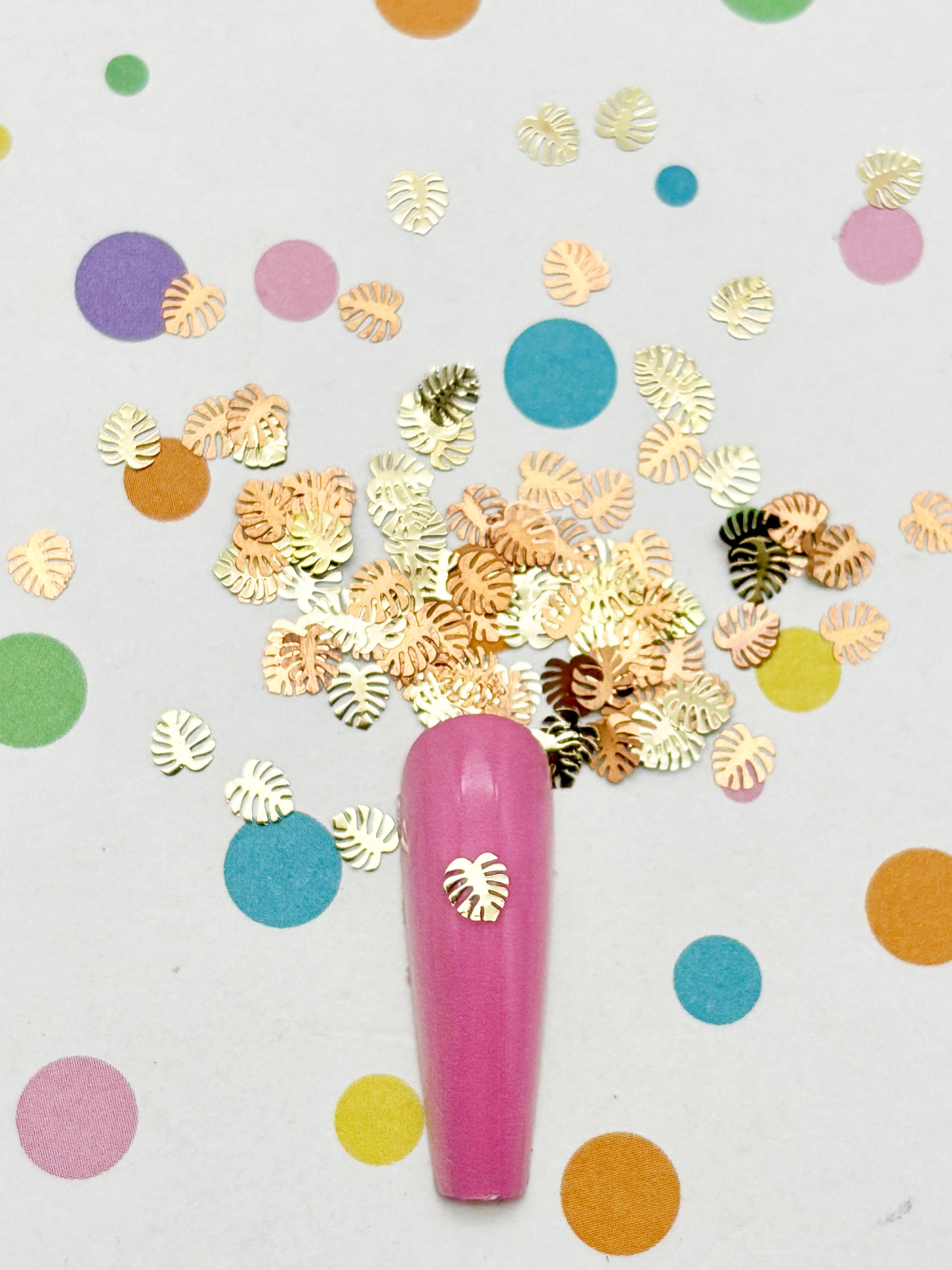 50 Tiny 5mm Gold Toned Monstera Leaf Cabochons, Cute Kawaii Nail Plant Cabs, Nail Art Charm Resin Supplies, Resin add-on 1718