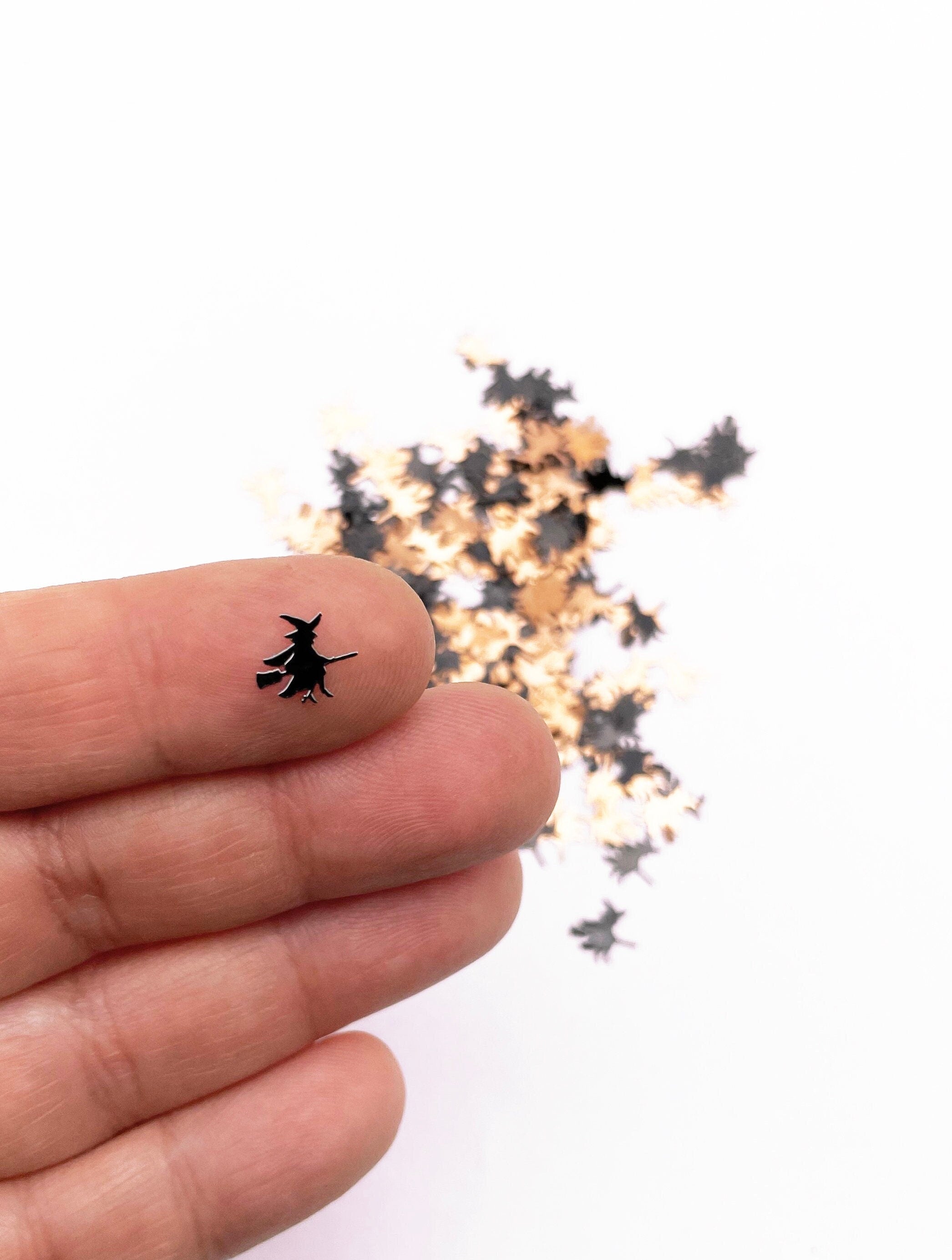 50 Tiny 8mm Black Toned Spooky Witch Nail Cabochons, Cute Kawaii Nail Halloween Cabs, Nail Art Charm Resin Supplies, Resin add-on 1745