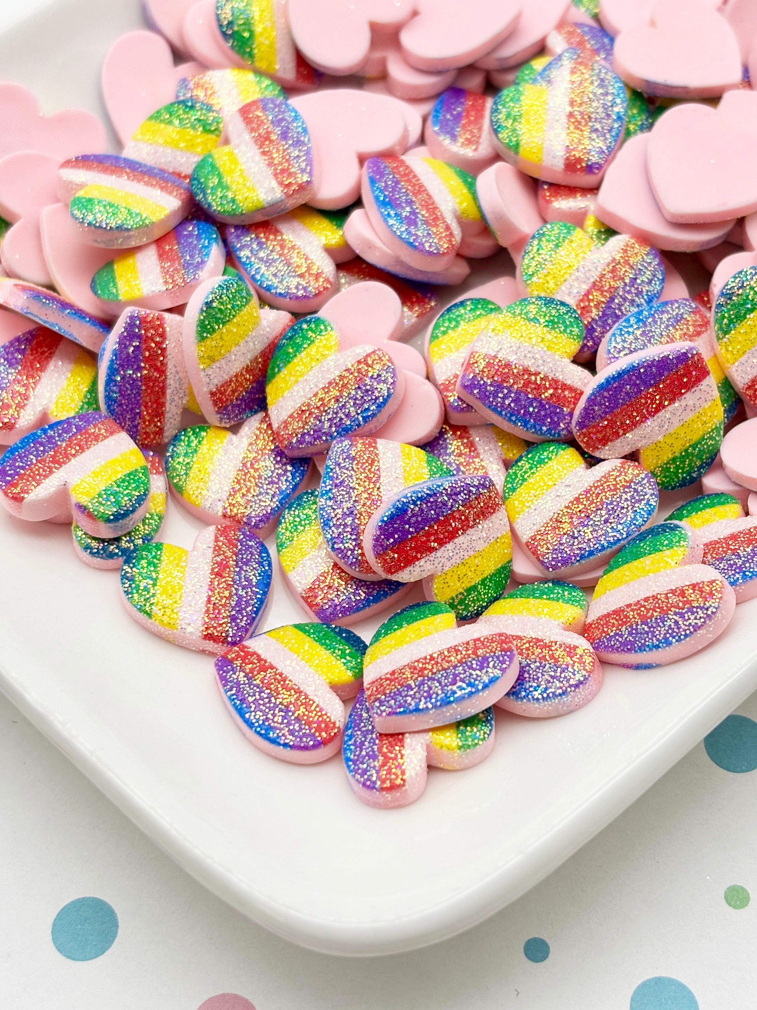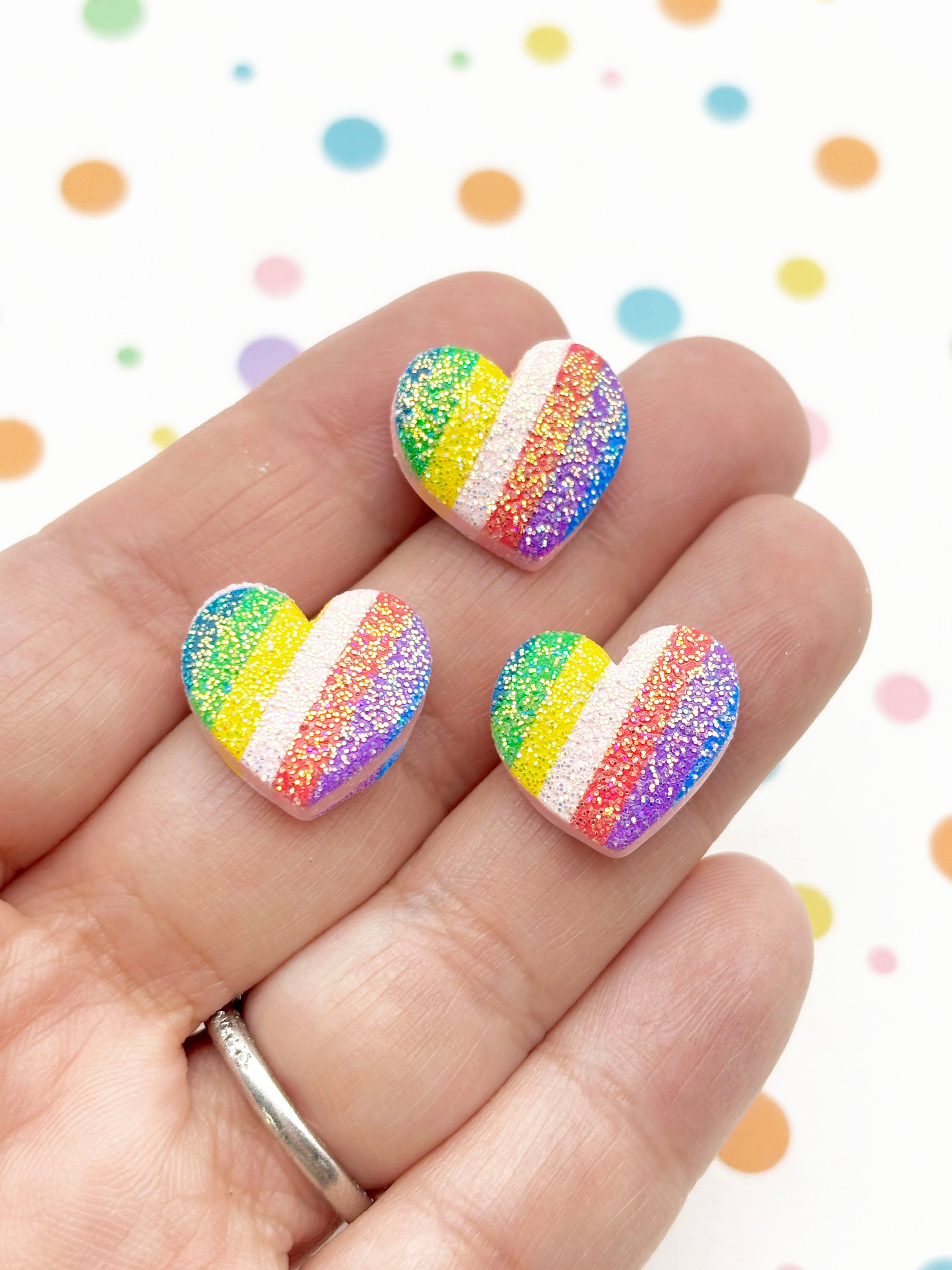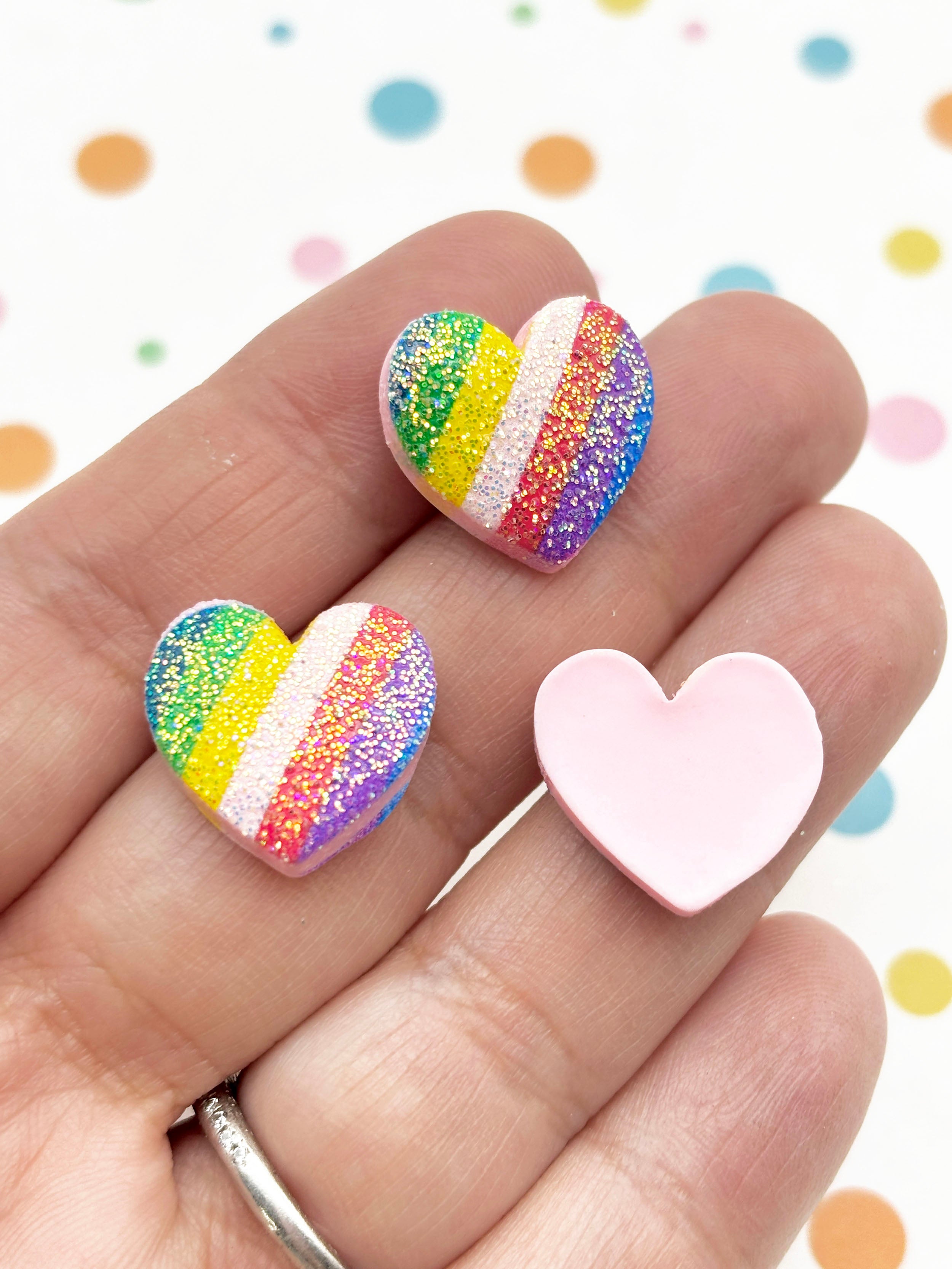 10 Small 17mm Glitter Flat Backed Resin Heart Cabochons, Flatbacked Acrylic Plastic Glittery Cabs, Valentines Day Crafts 455b