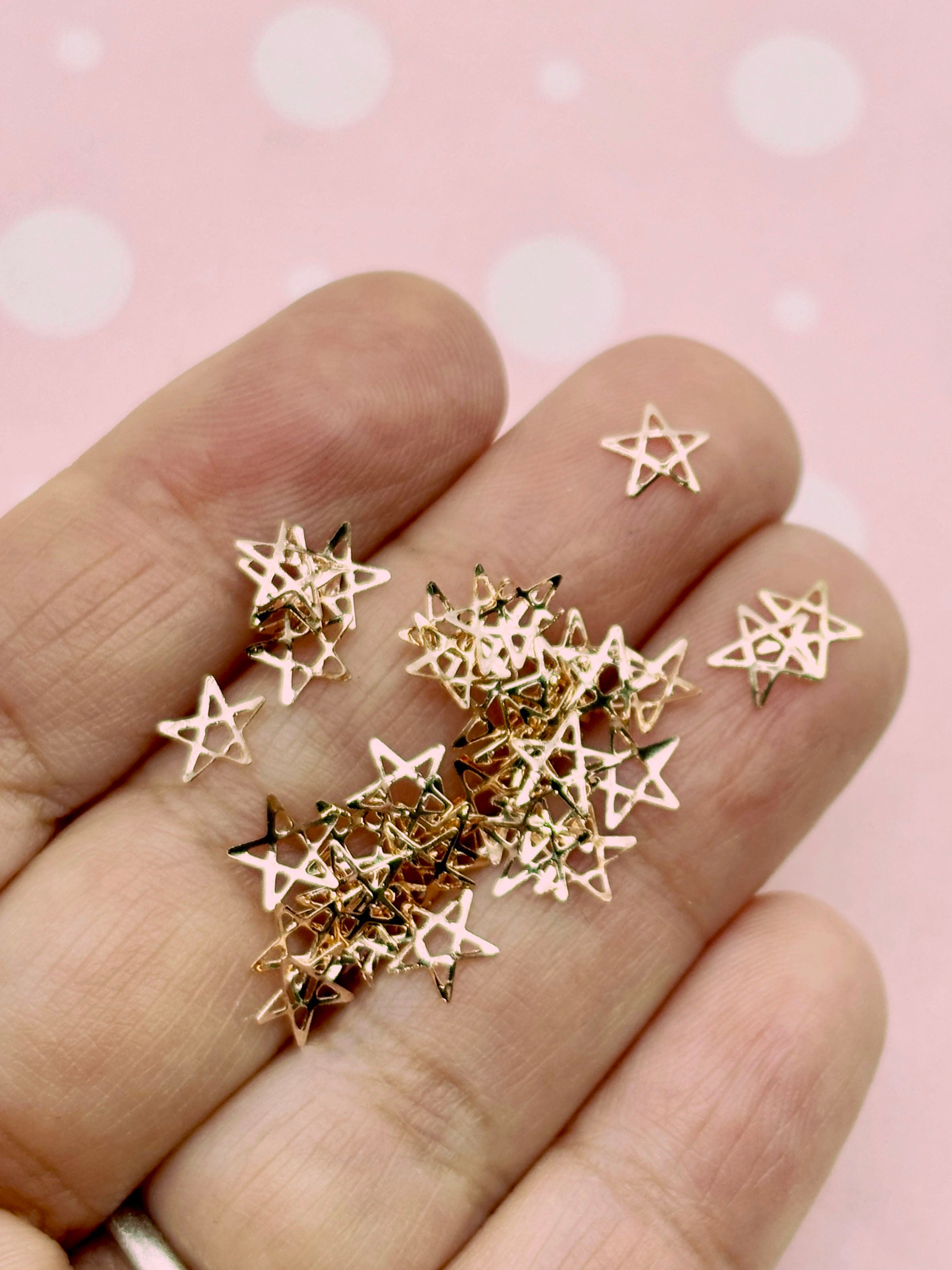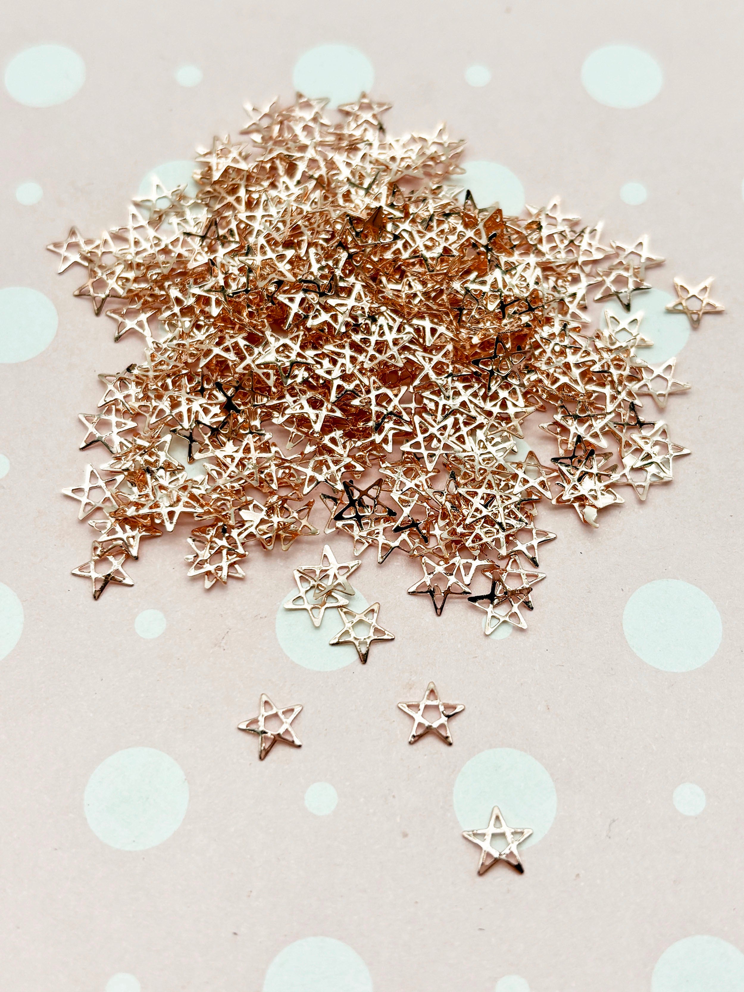 300 Tiny 6mm Rose Gold Toned Metal Star Cabochons, Cute Kawaii Nail Star Cabs, Charm Resin Supplies, Resin add-on #1470