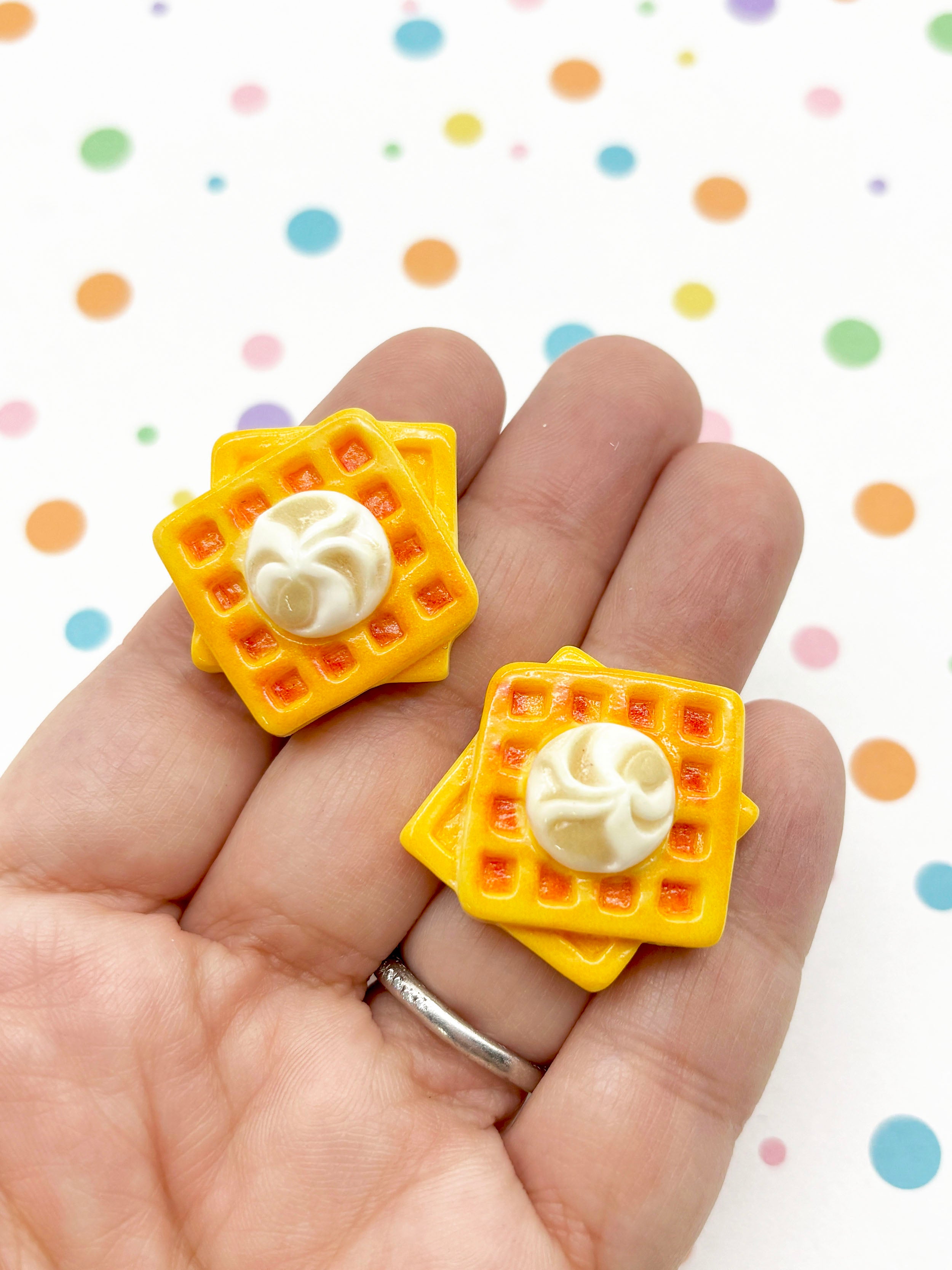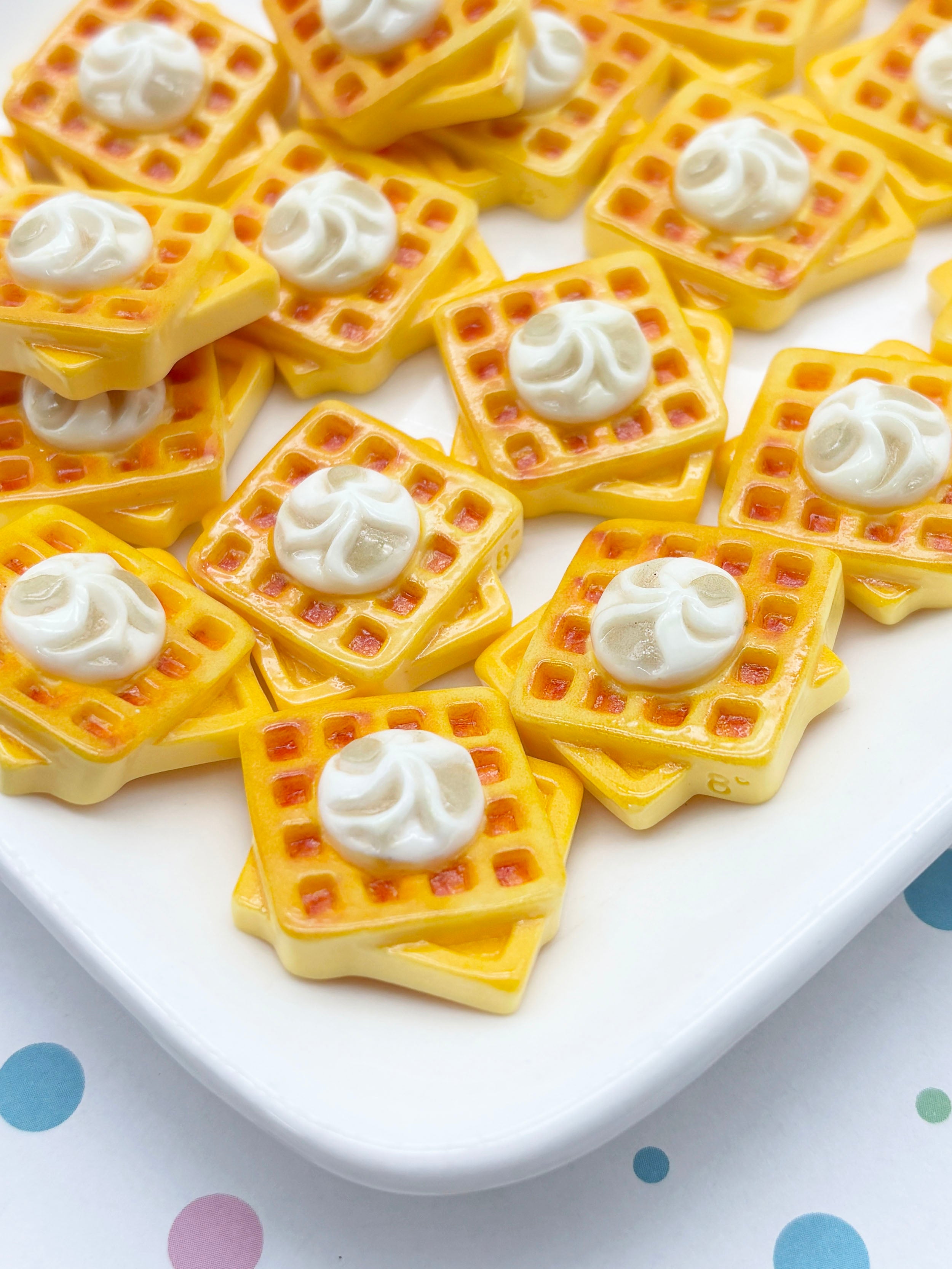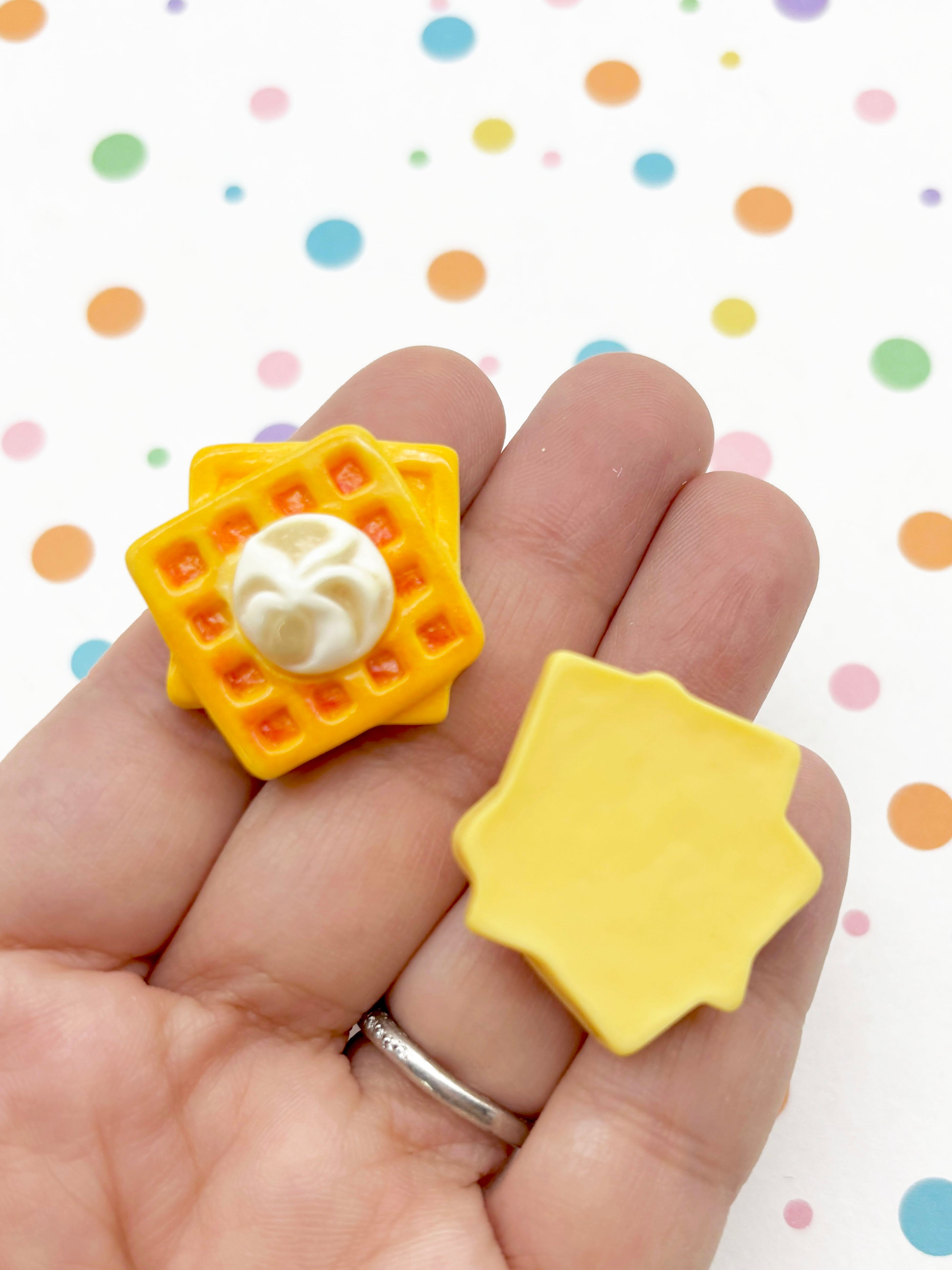 These miniature waffle kawaii cabochons are so cute! They are great for all your deco den needs. You can use them to make jewelry, decorate phone case, embellish children's clothing etc…. You will get 5 pieces