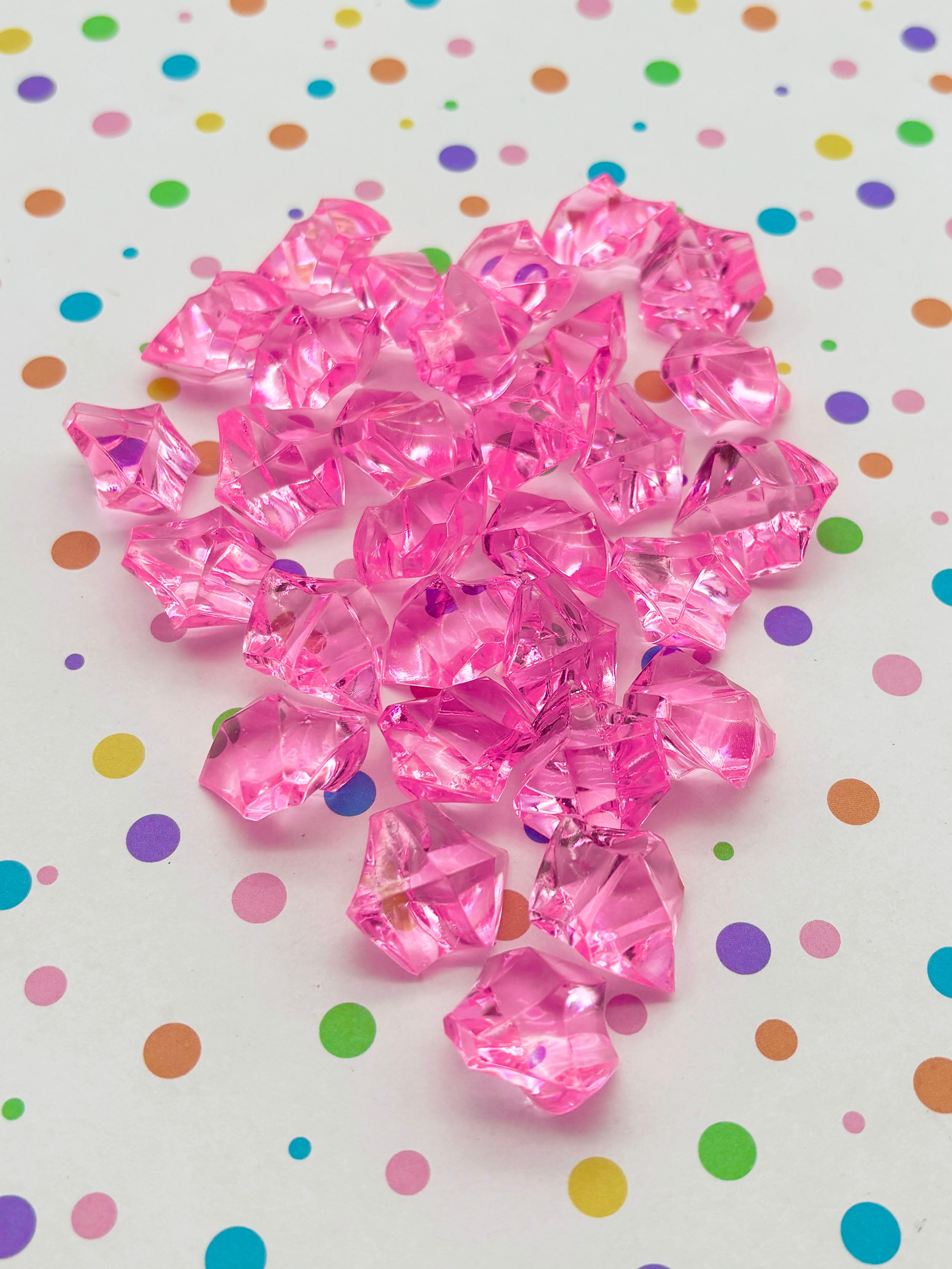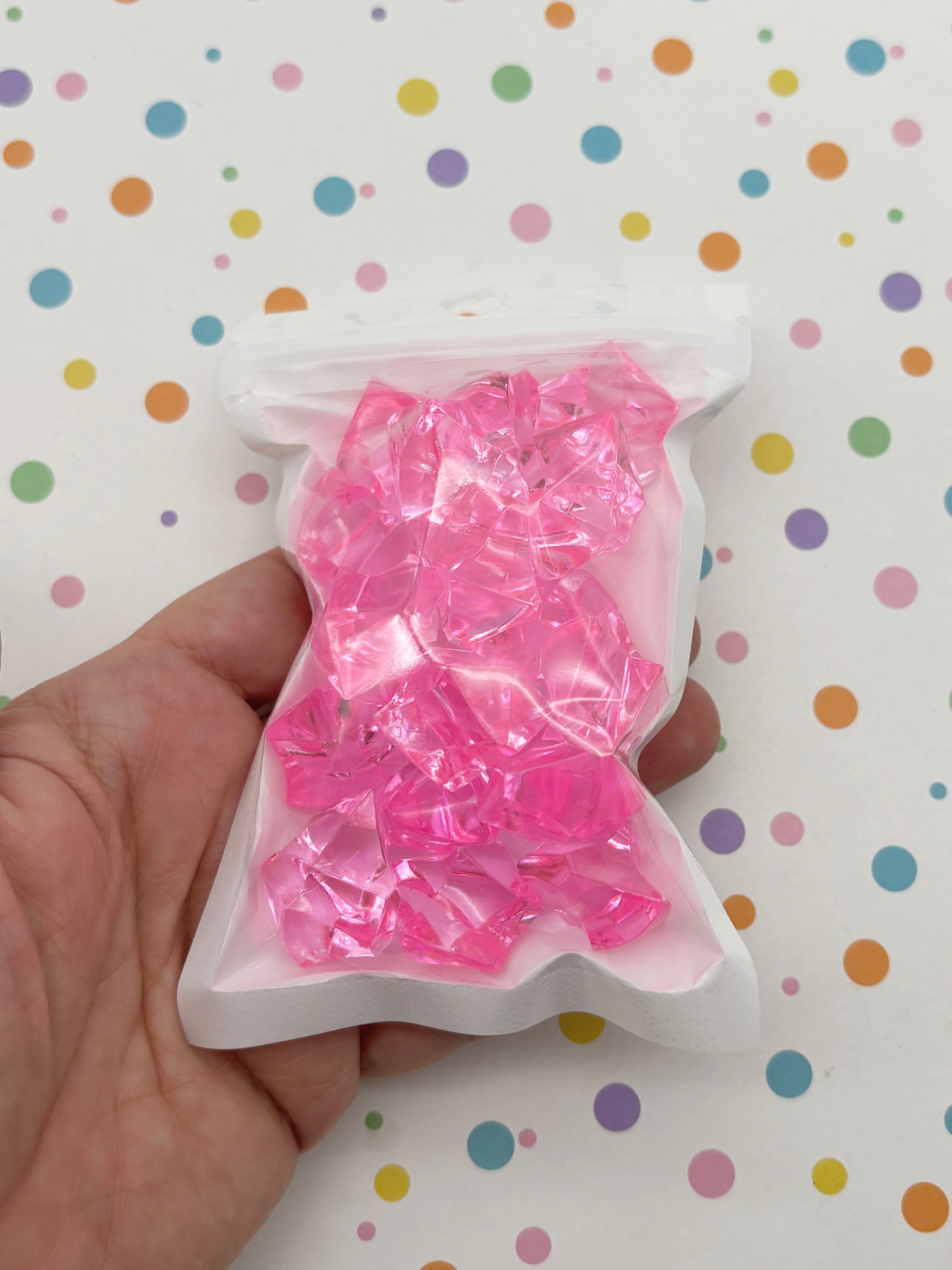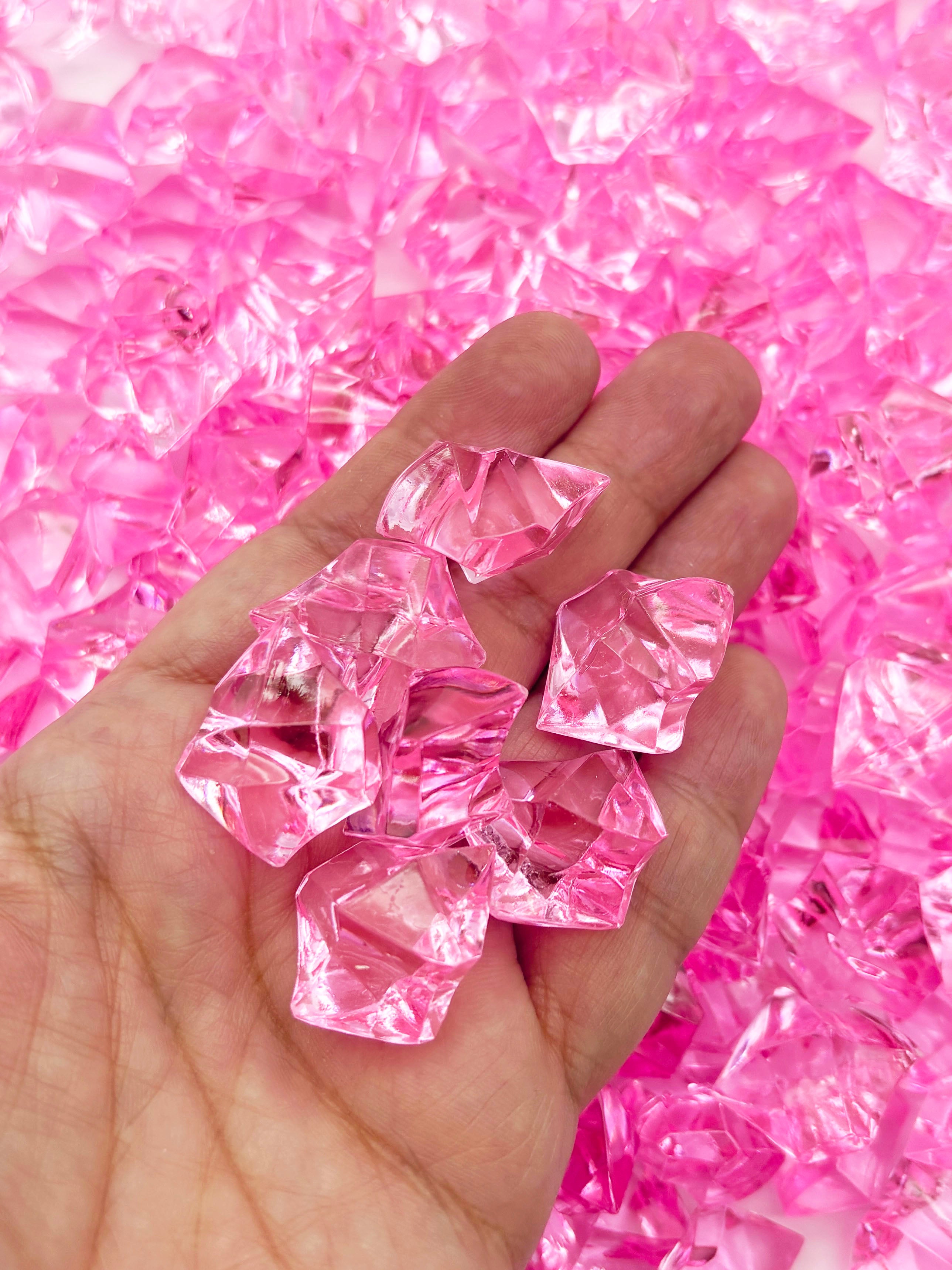 50g LARGE Bright Pink Acrylic Gemstone Chunks, Resin Gem Stones, Faux Plastic Diamonds, 20+ Pieces Slime Supplies CHK 30