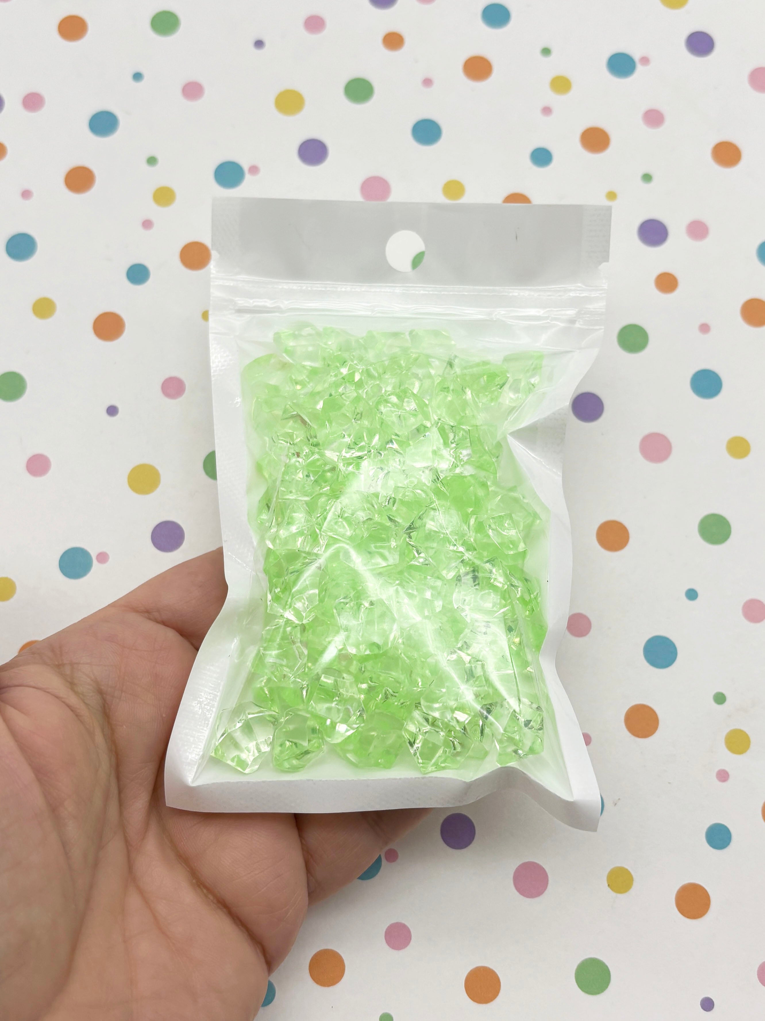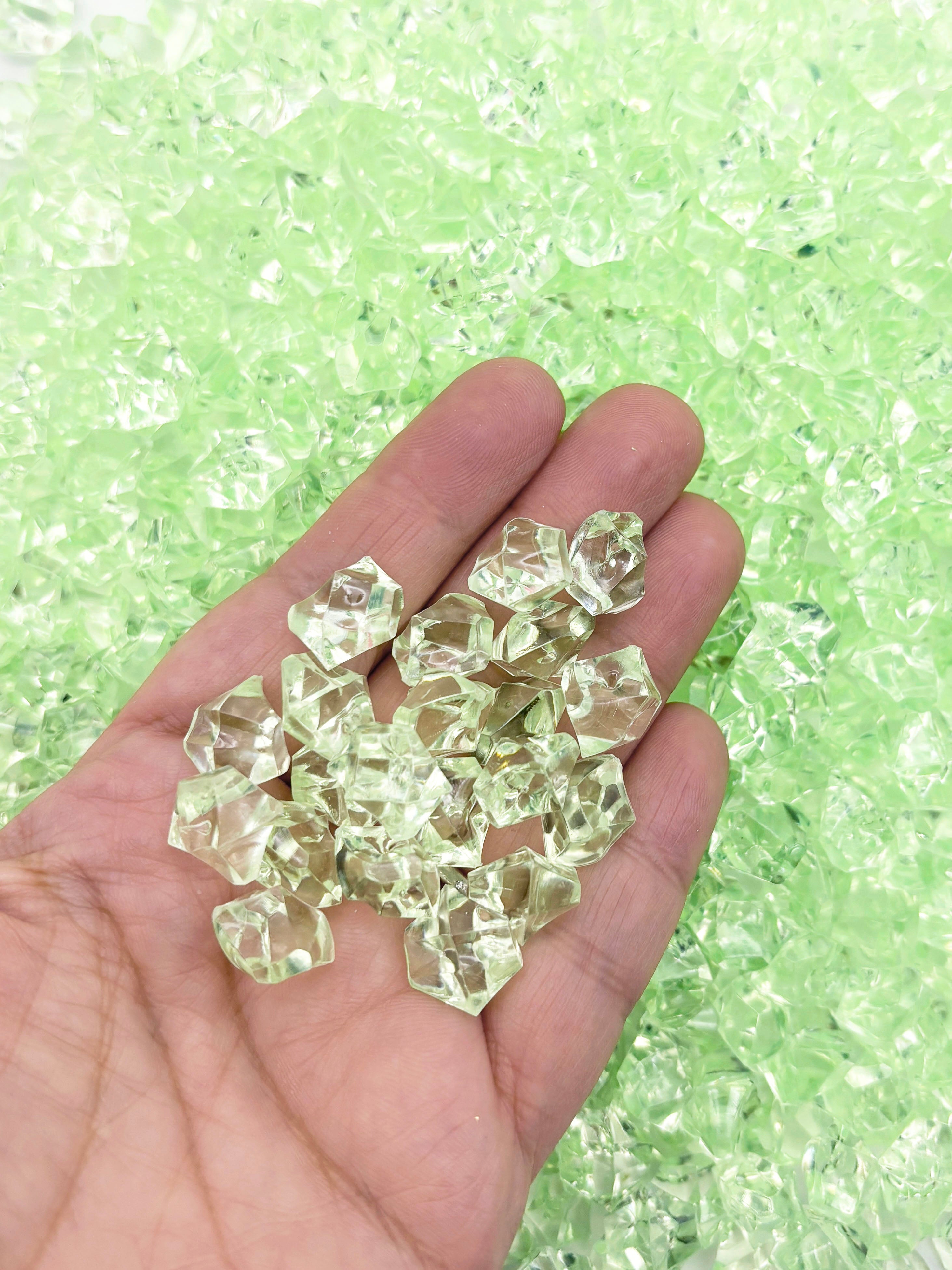50g SMALL Transparent Pastel Pale Green Acrylic Gemstone Ice Cube Chunks, Resin Gem Stones, Faux Plastic Diamonds, 80+ Pieces CHK 28