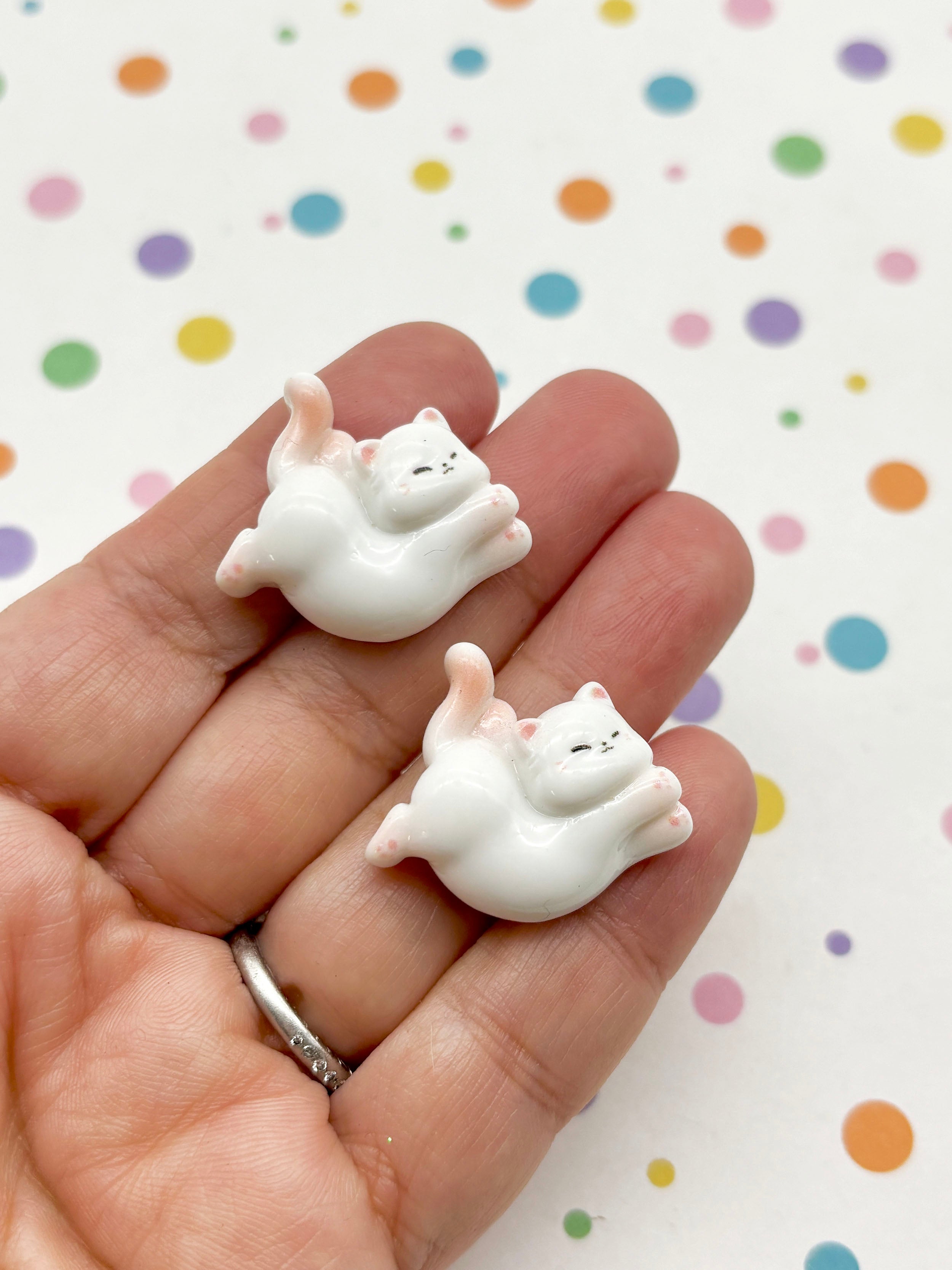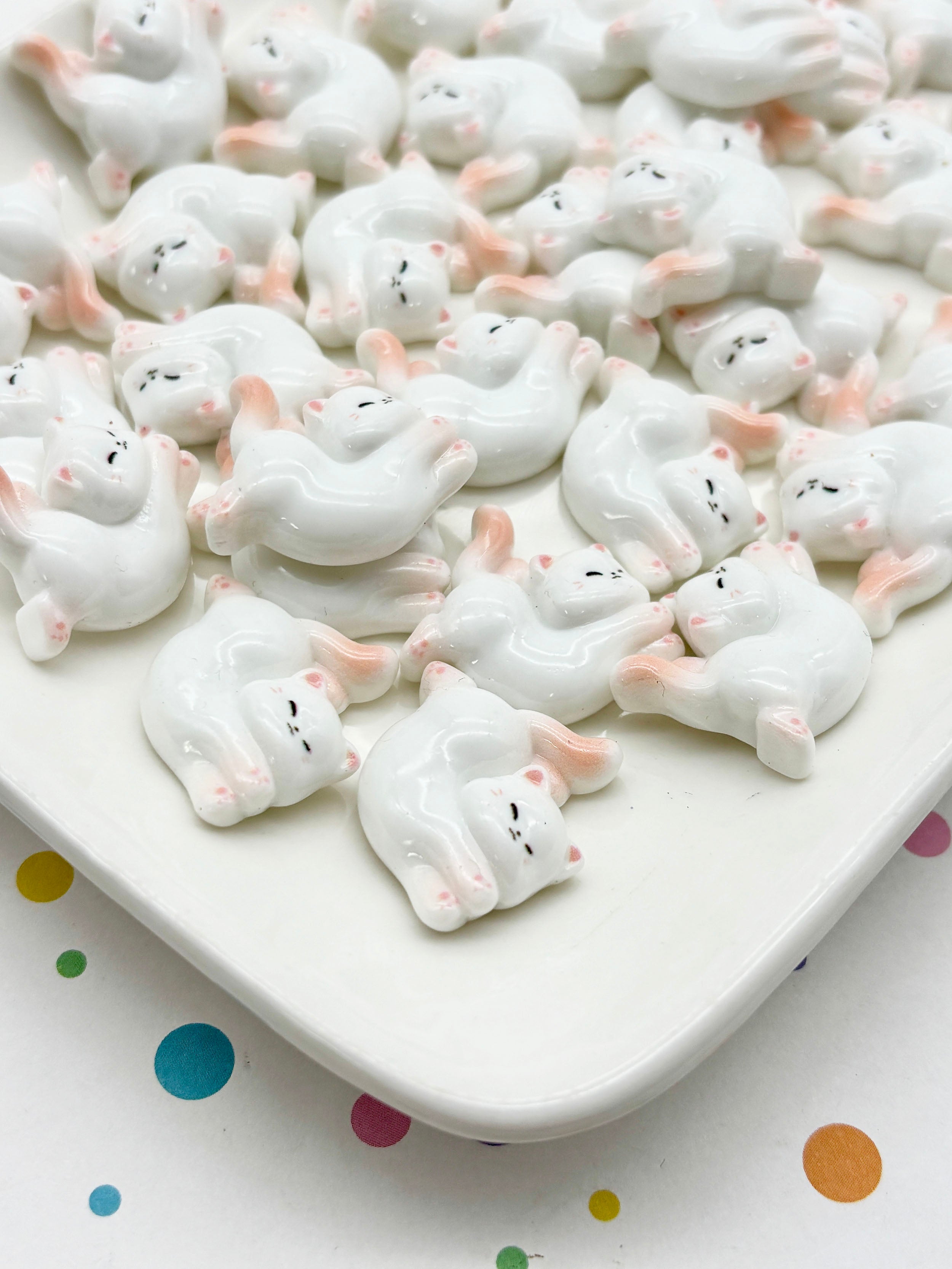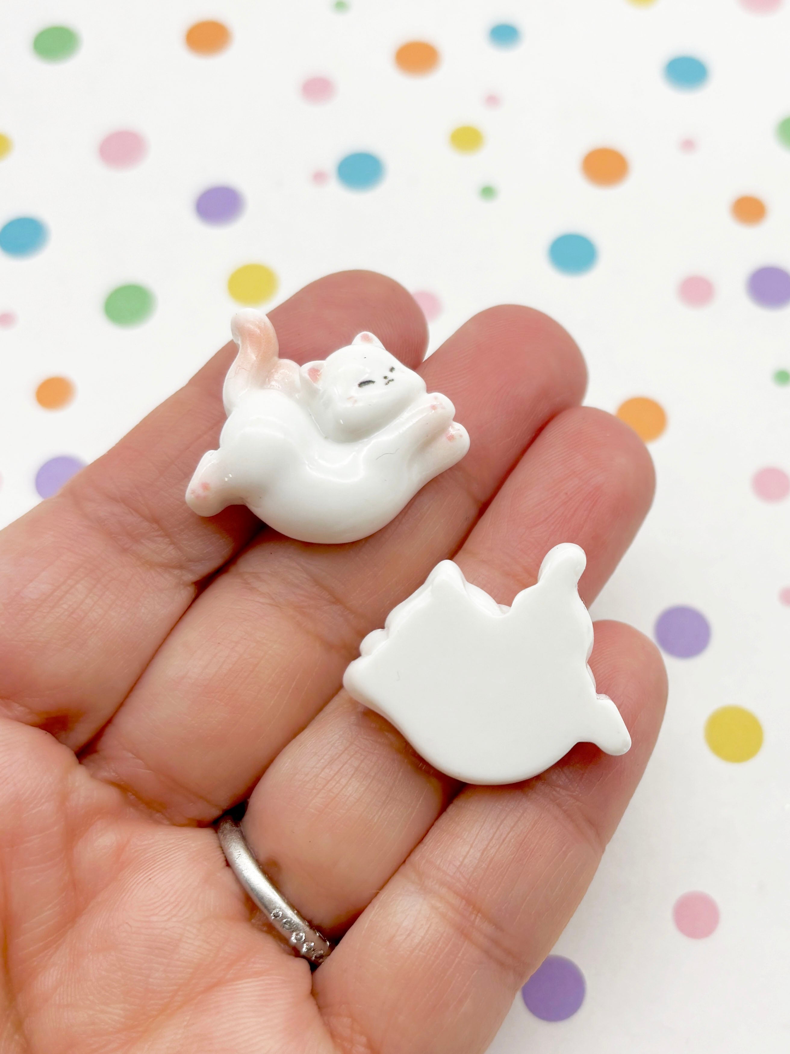 6 Kawaii White Blushing Flat Backed Resin Cat Cabochons, 27mm Flatbacked Acrylic Plastic Kawaii Kitty Kitten Cabs 372a