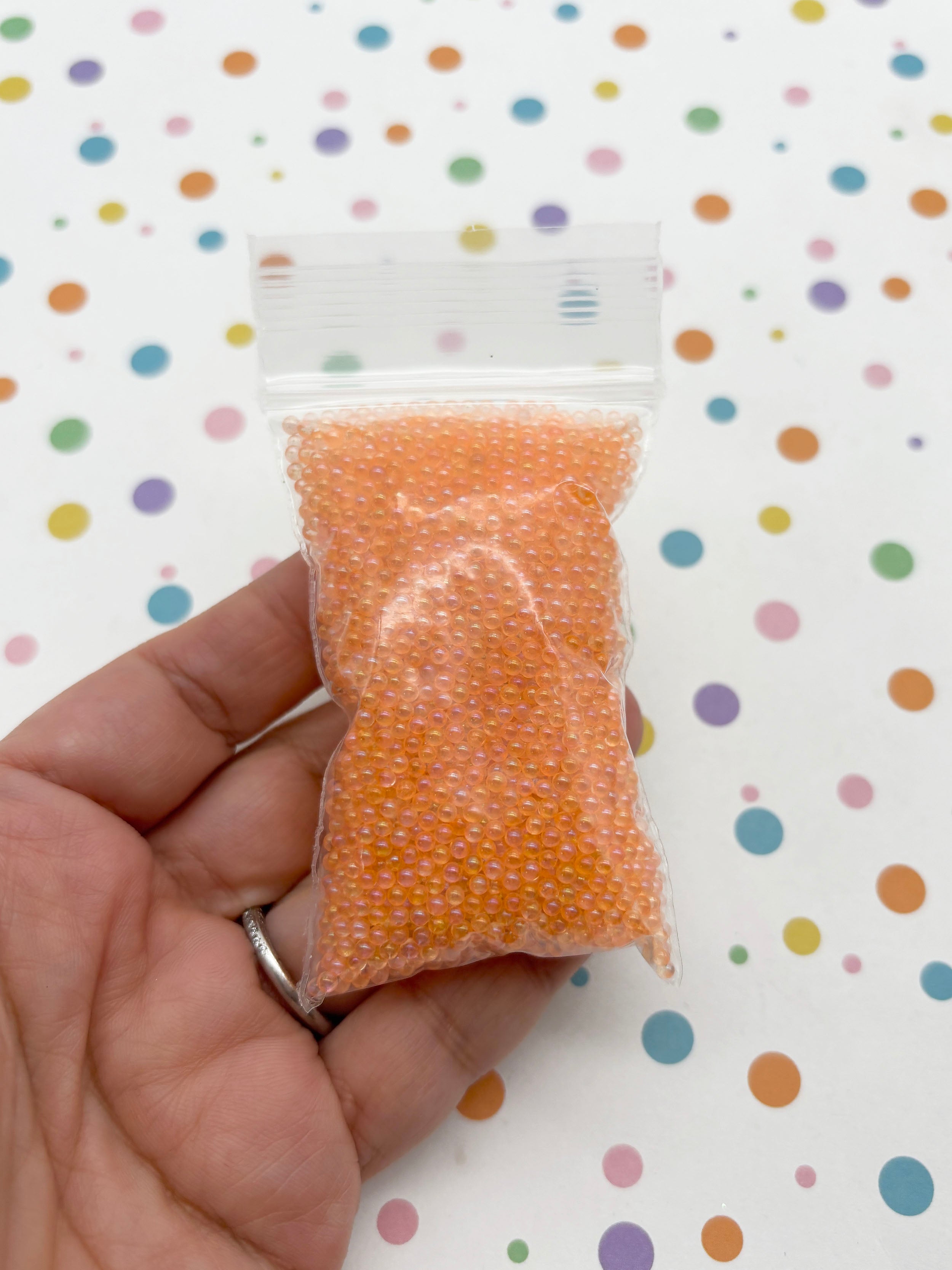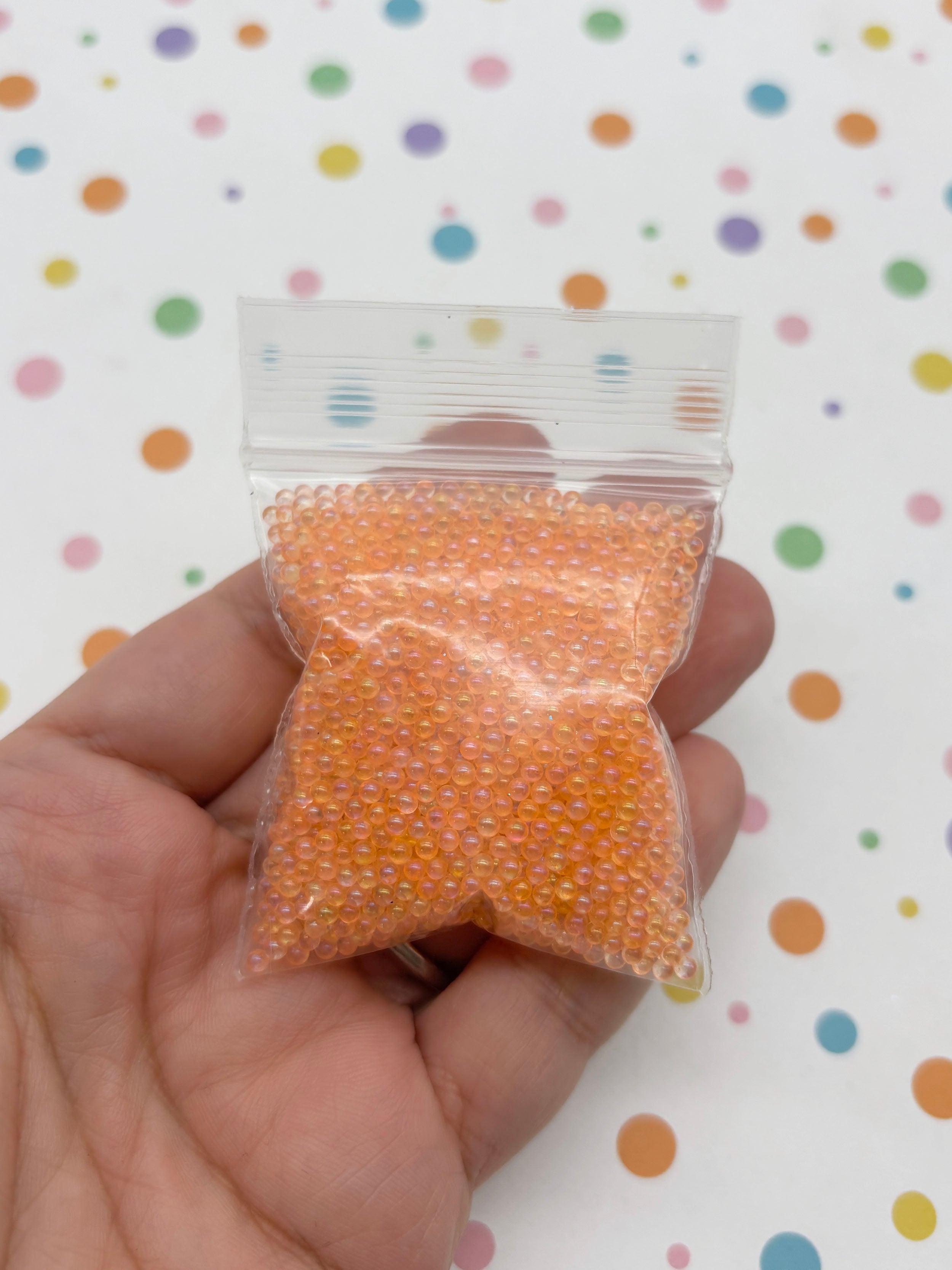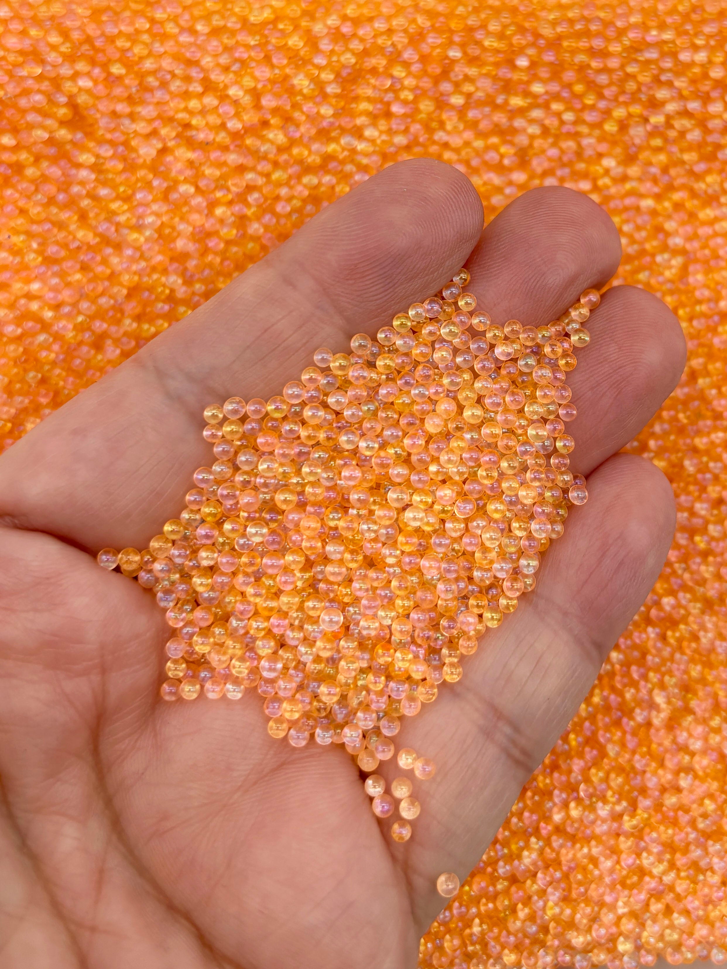 Iridescent Orange Salmon Roe Clear Glass Assorted ROUND Microbeads, 2-2.5mm No Hole Seed Beads Sprinkle Toppings, Pick Your Amount, G182