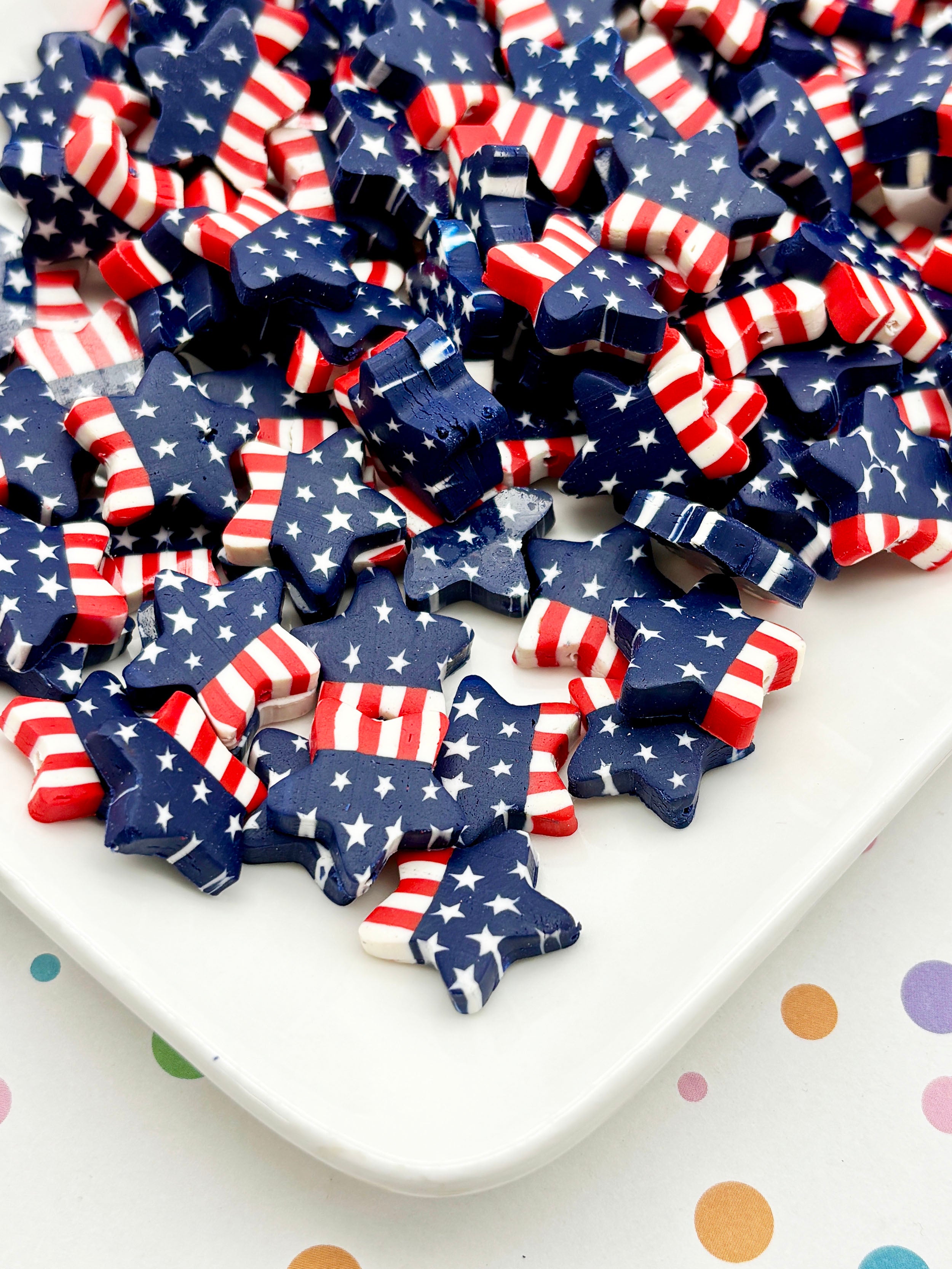 8 Patriotic American Flag Polymer Clay Star Beads, Red White and Blue Americana 4th of July Fimo Beading Supplies 1636a