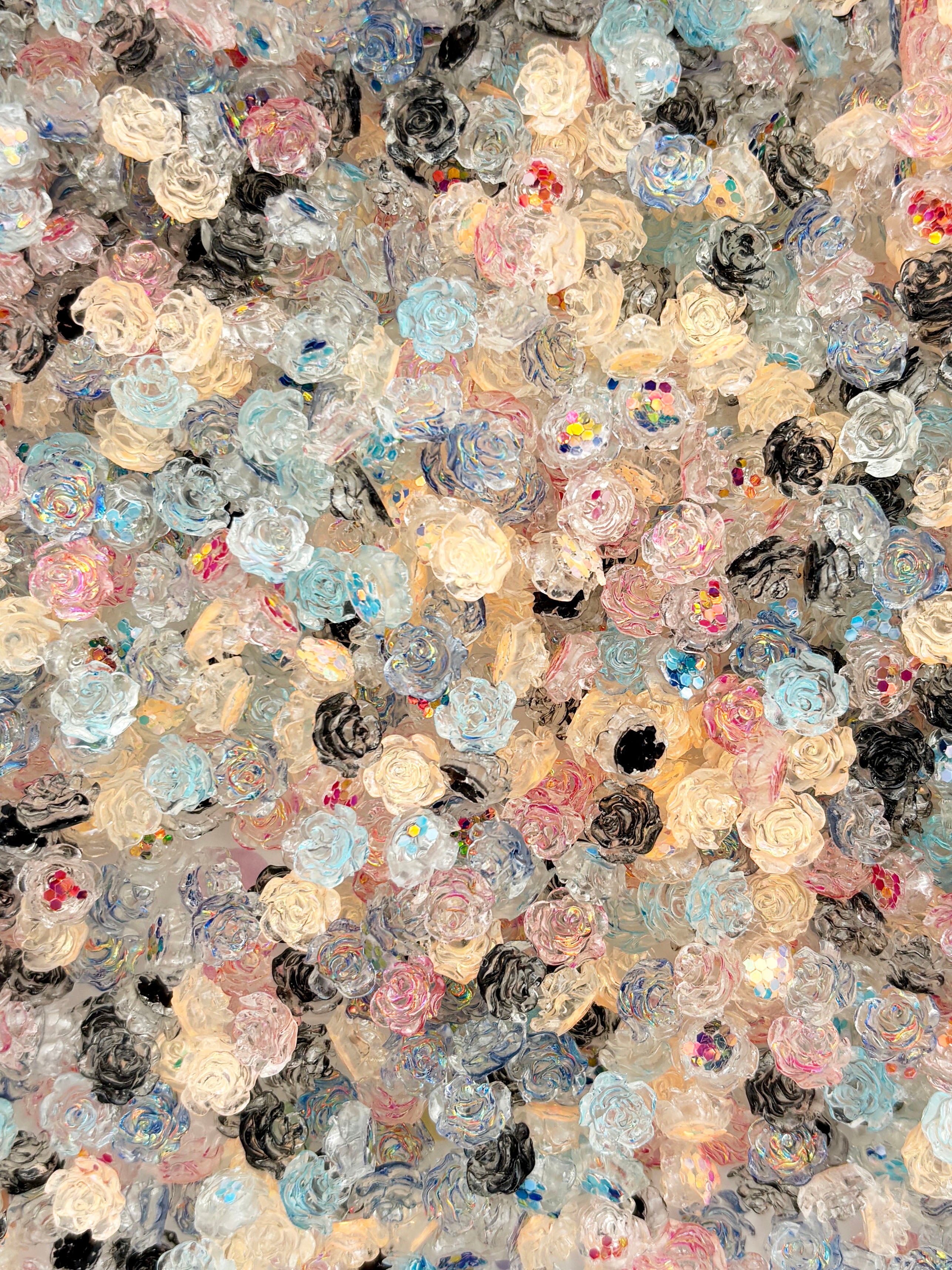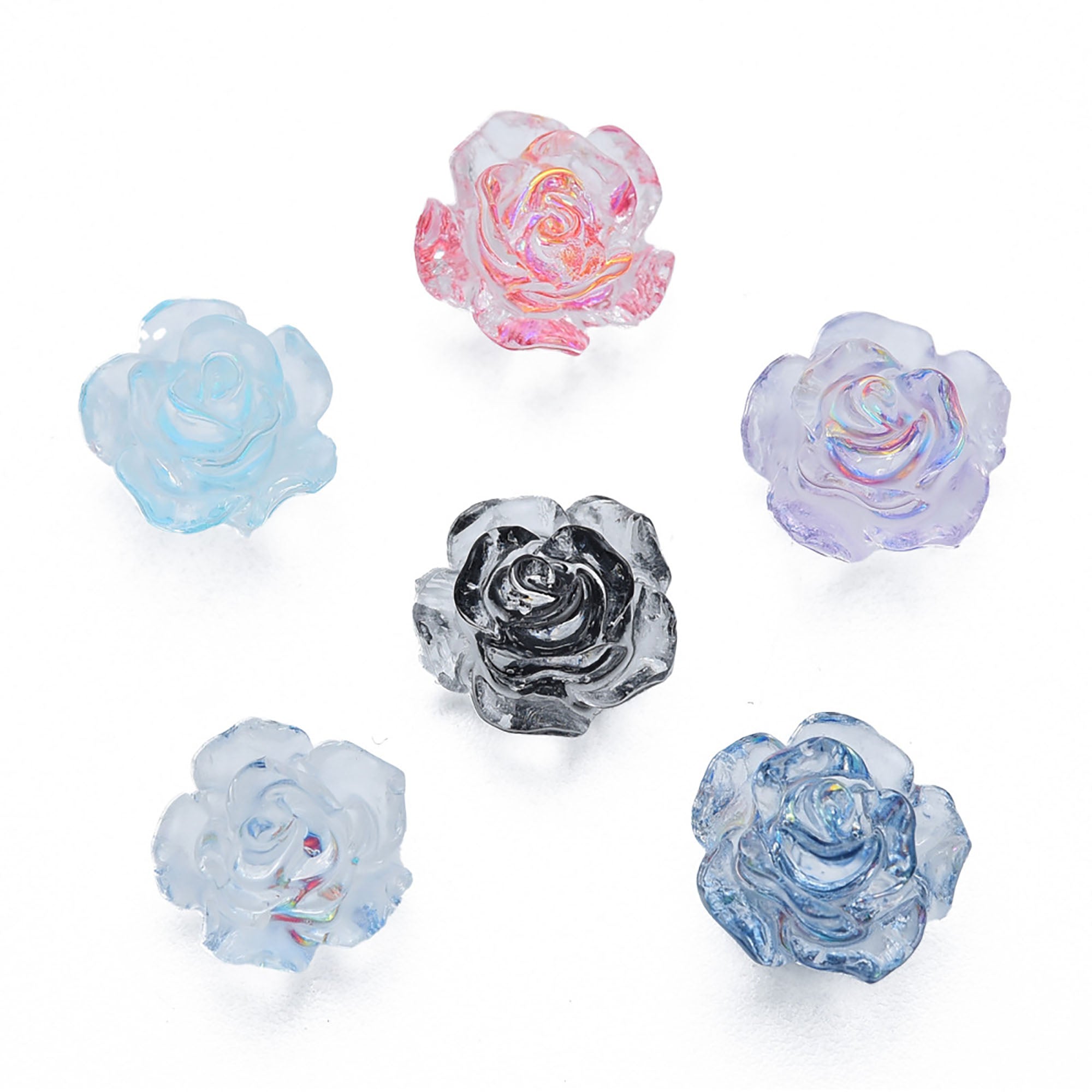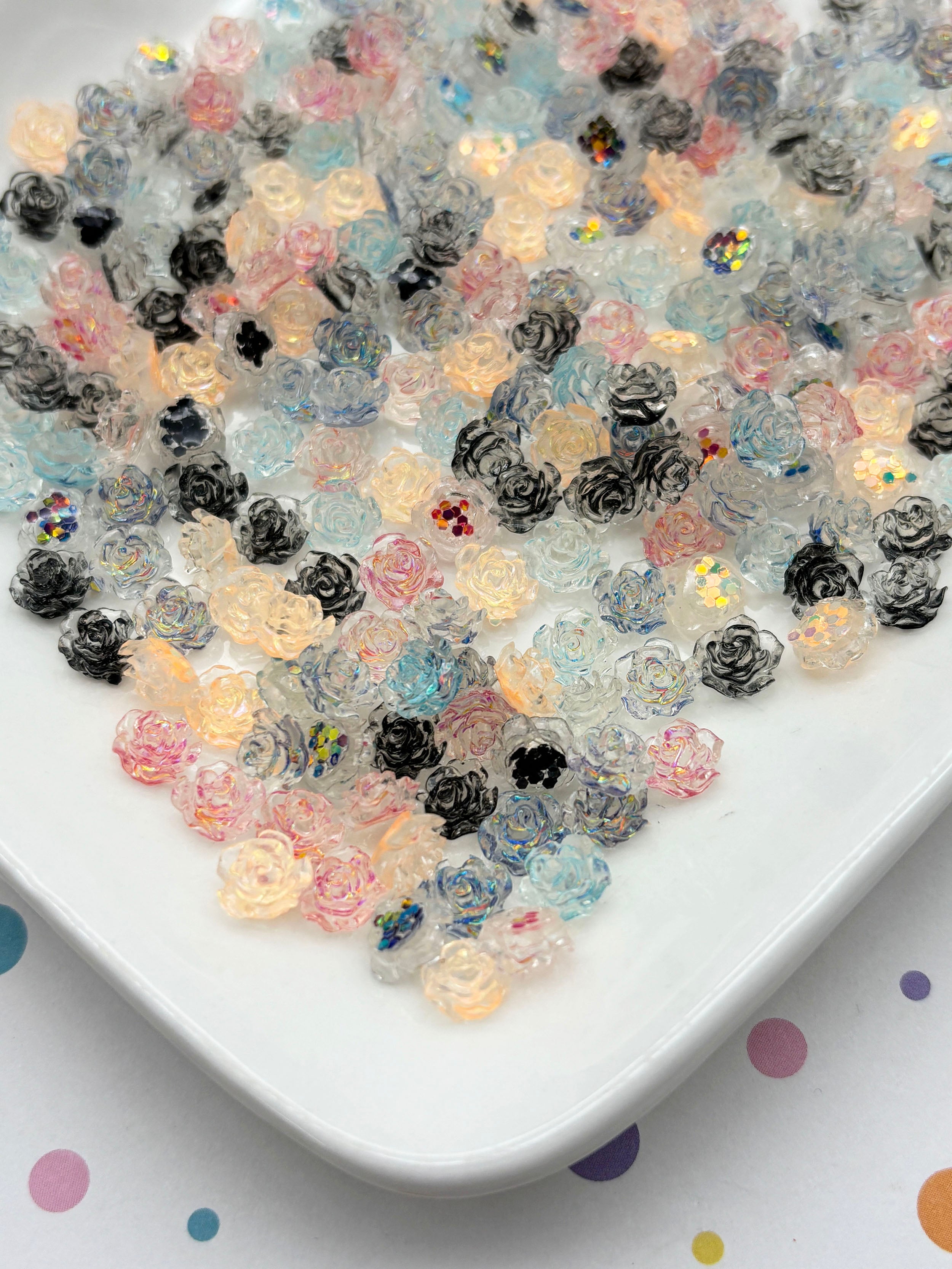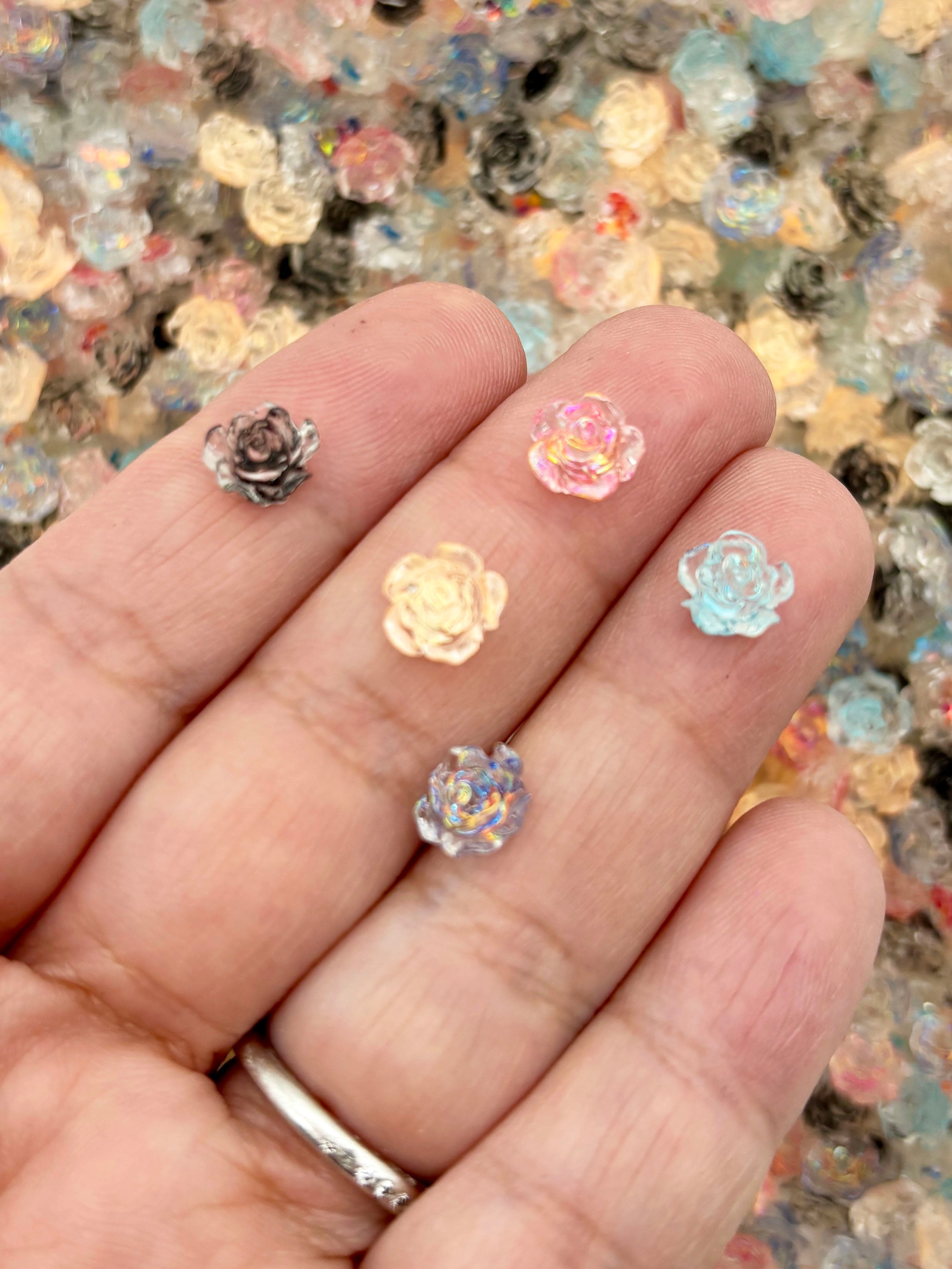 50 Pieces Glittery Multicolor Rose Flower Flatbacked Resin Nail Cabochons, Flat Backed Acrylic Plastic Floral Cabs, L102