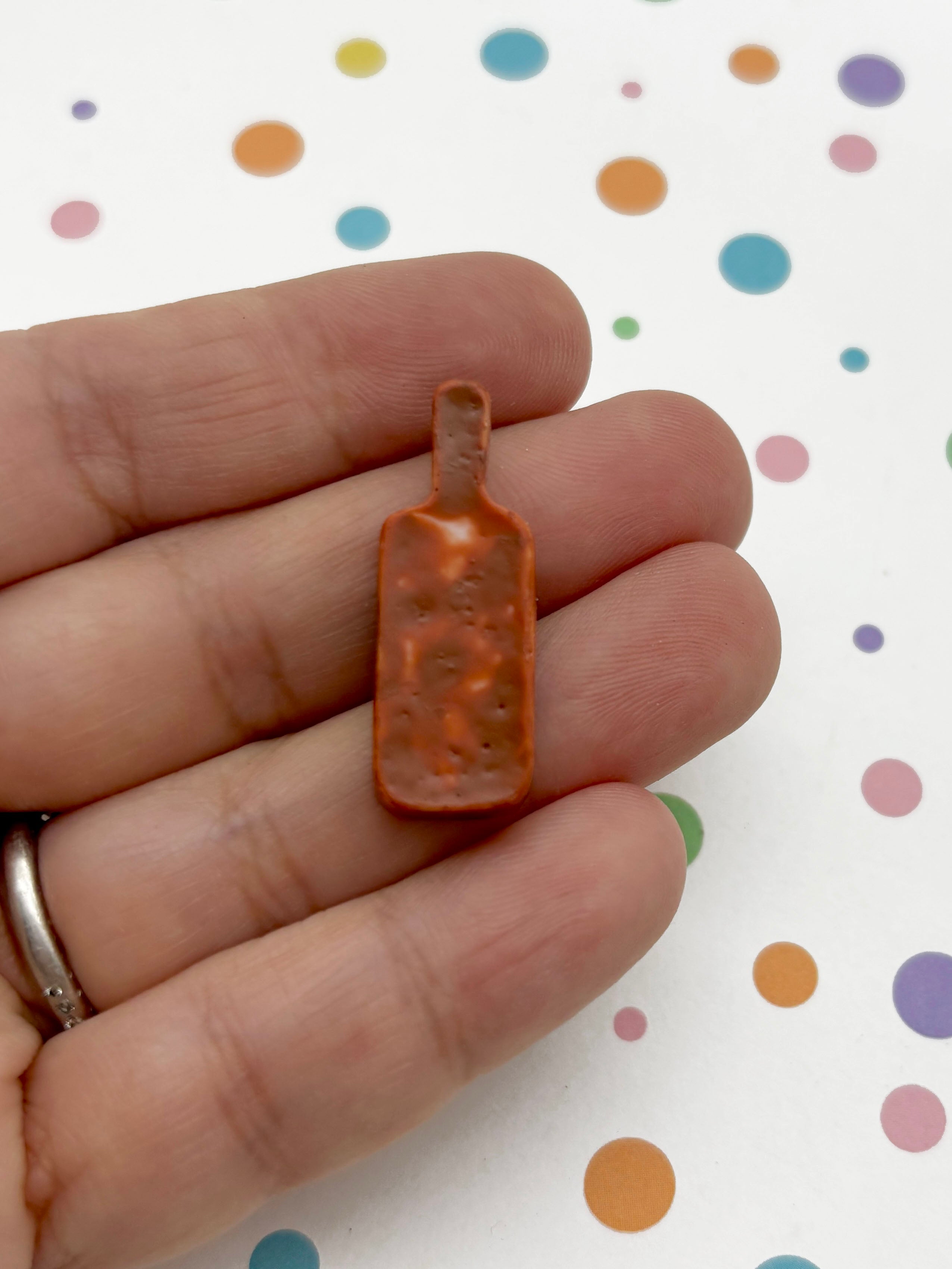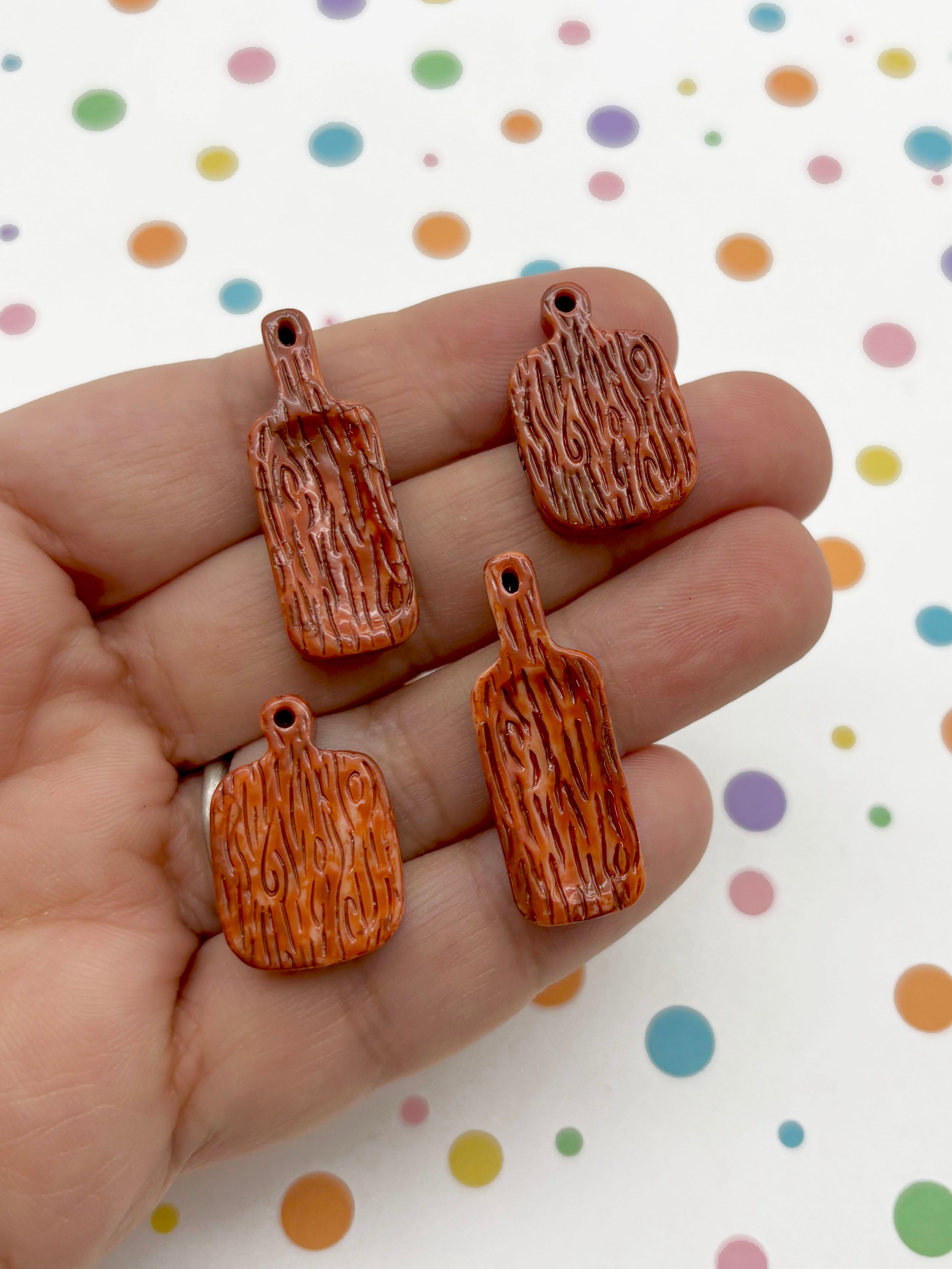 These charming flat-backed resin cabochons resemble miniature cutting boards, adding a delightful touch to your crafting projects. The shorter cutting board measures 15x22mm, while the longer one is 11x30mm, and both pieces are designed with flat backs for easy application. You will receive a set of six pieces, including three of each style.
