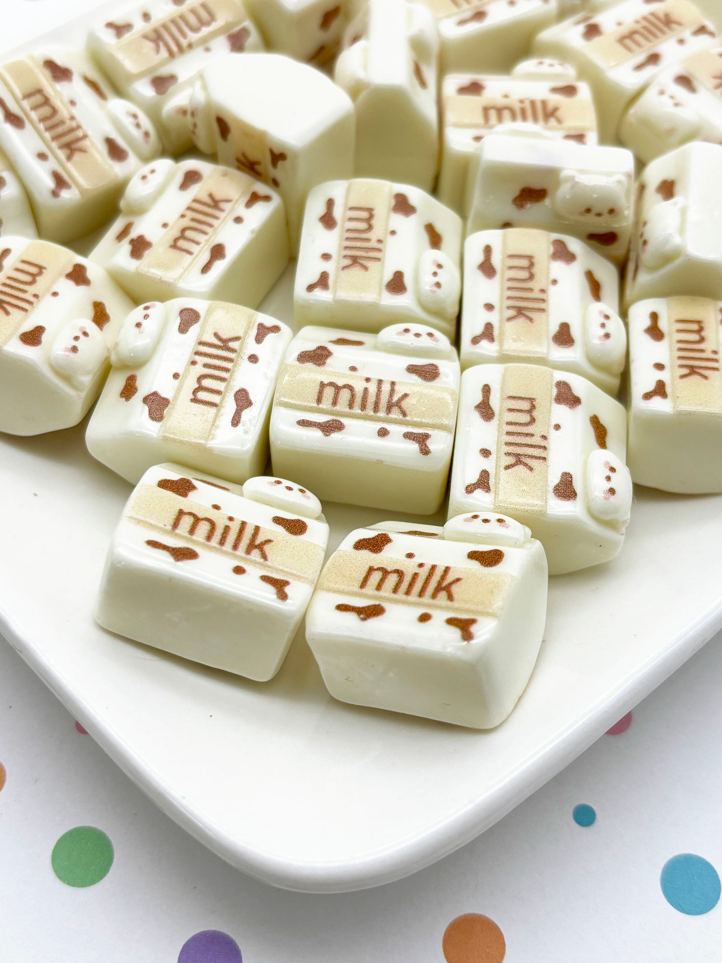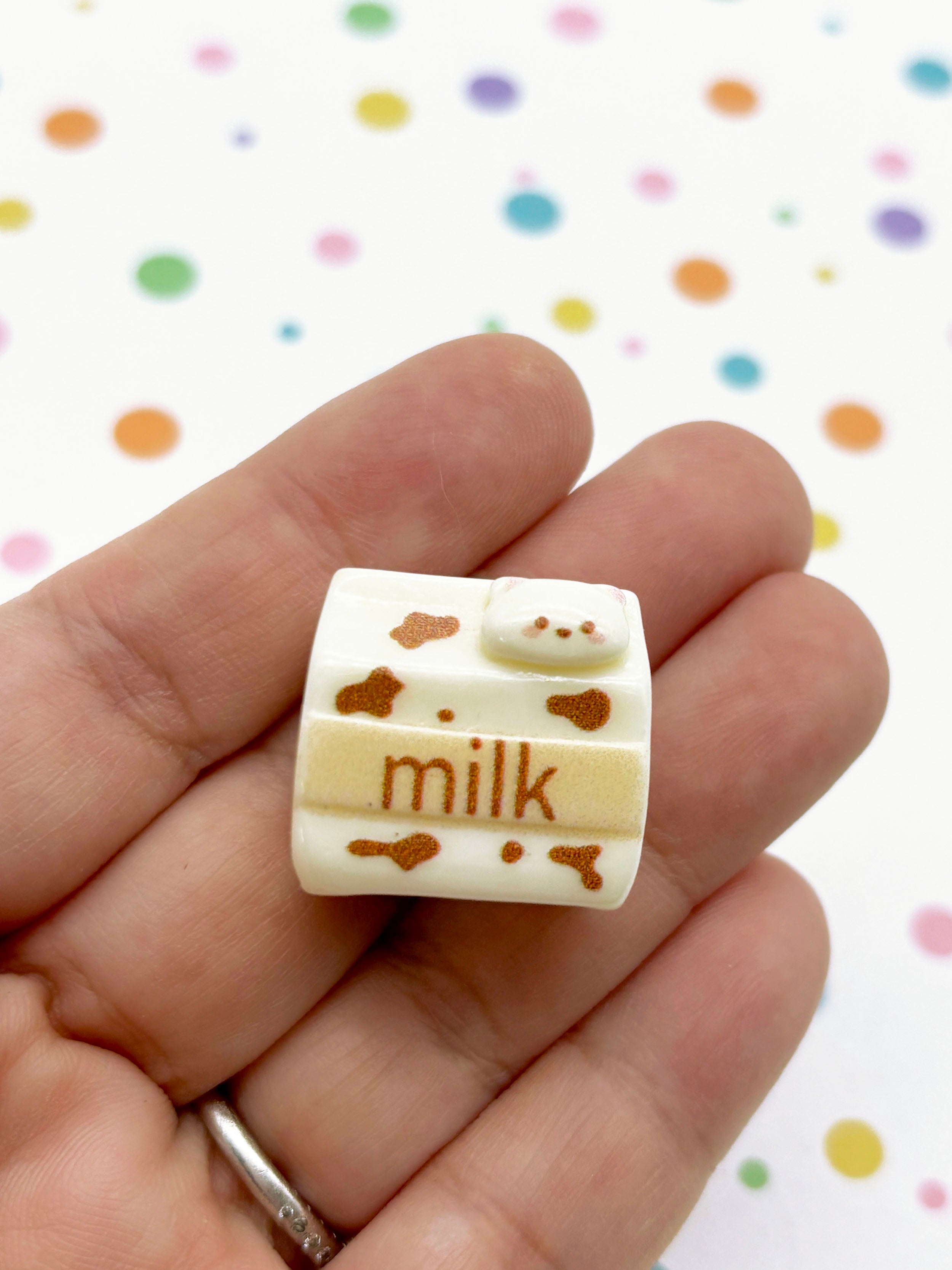 5 White Flat Bottom Resin Milk Carton Cabochons, 3D Acrylic Plastic Dollhouse Milk Box Cabs 107