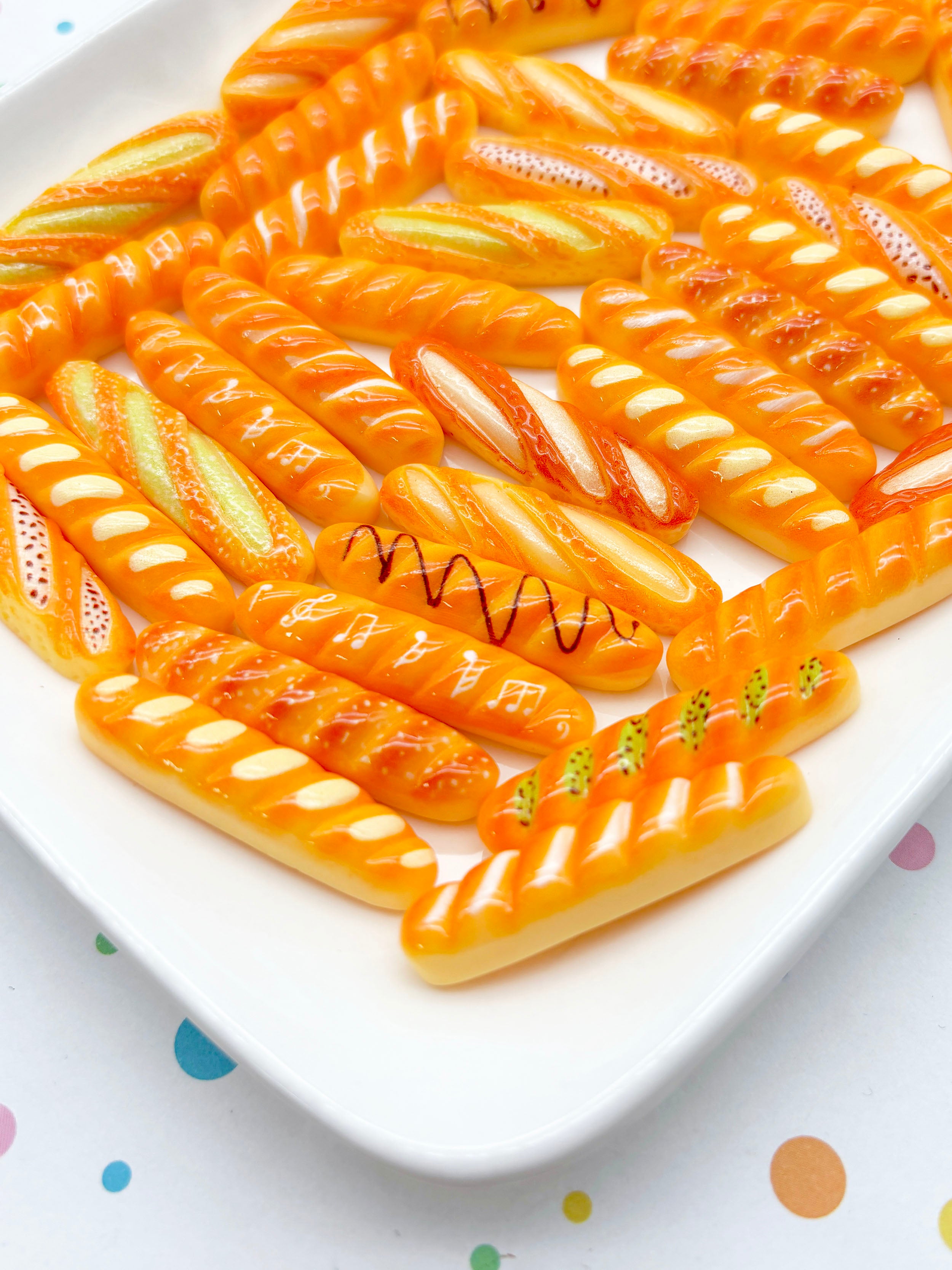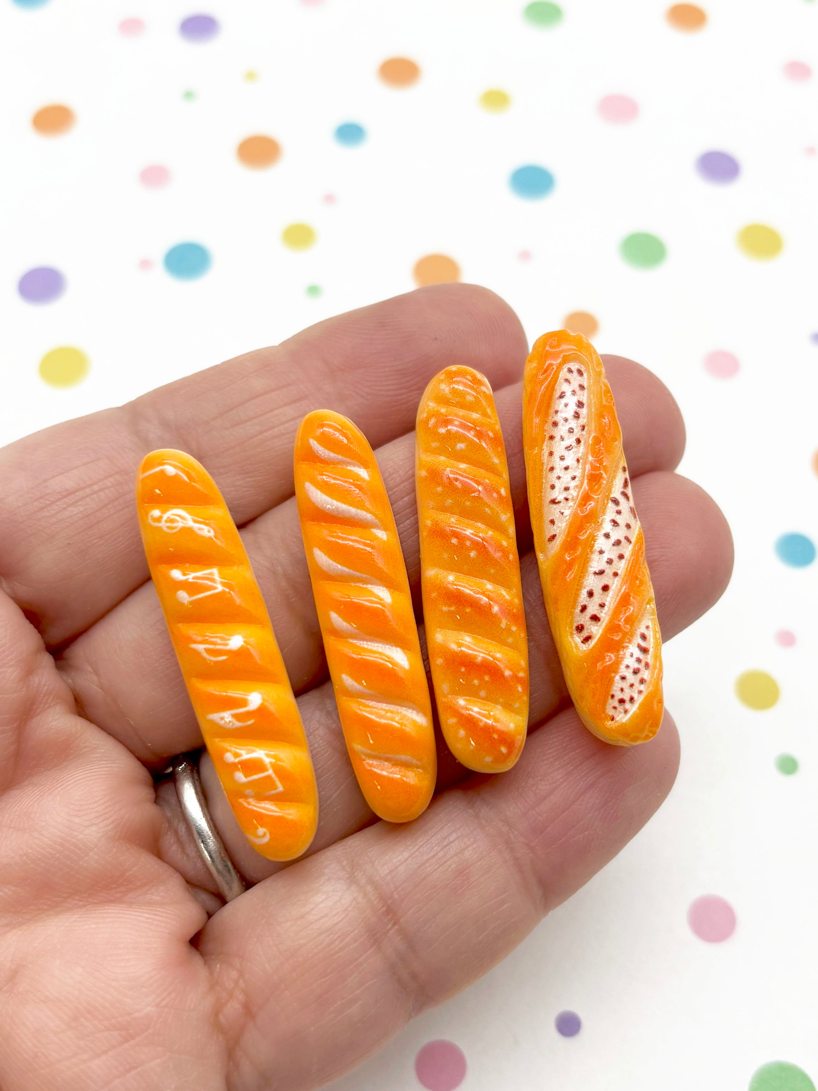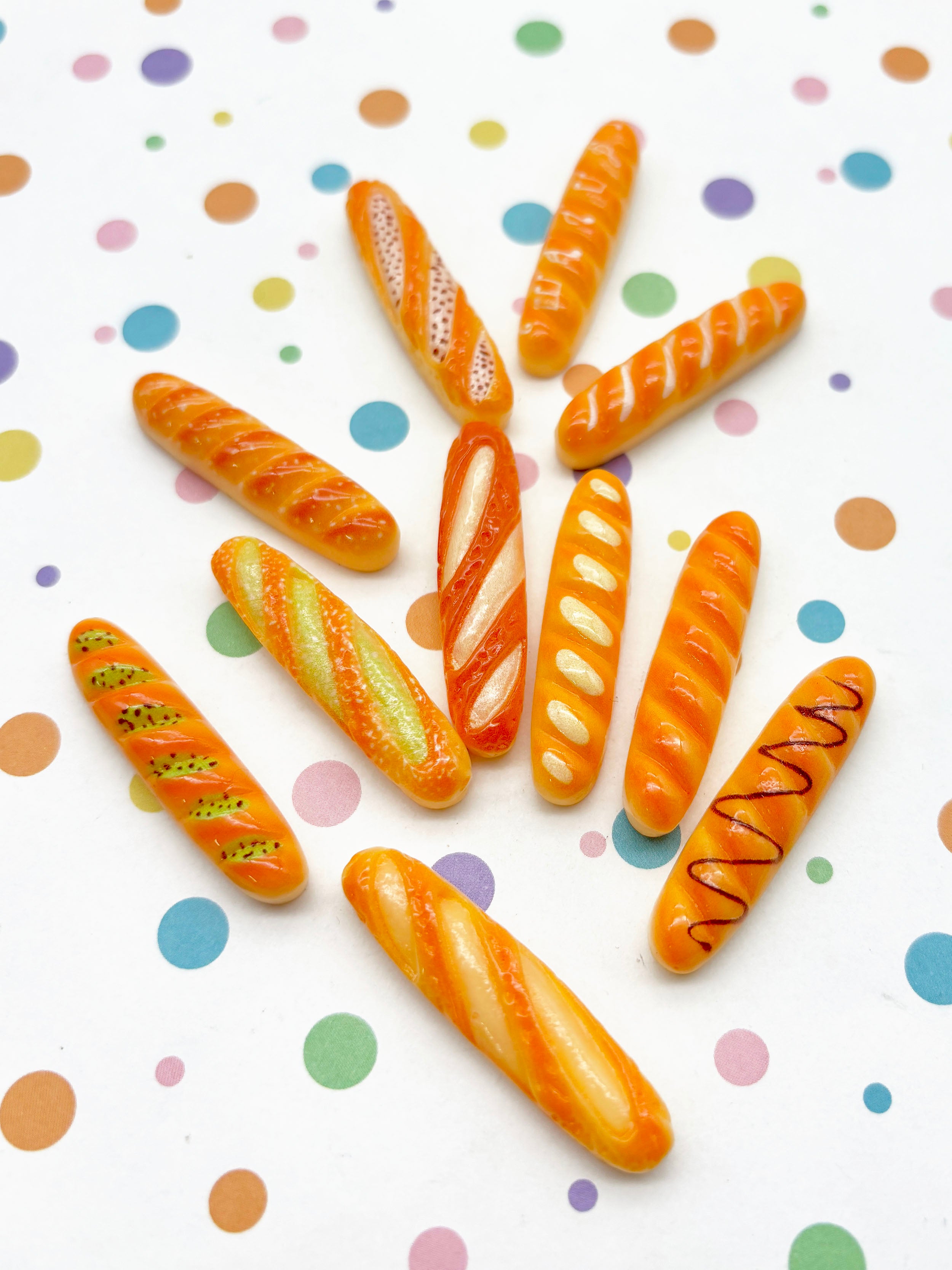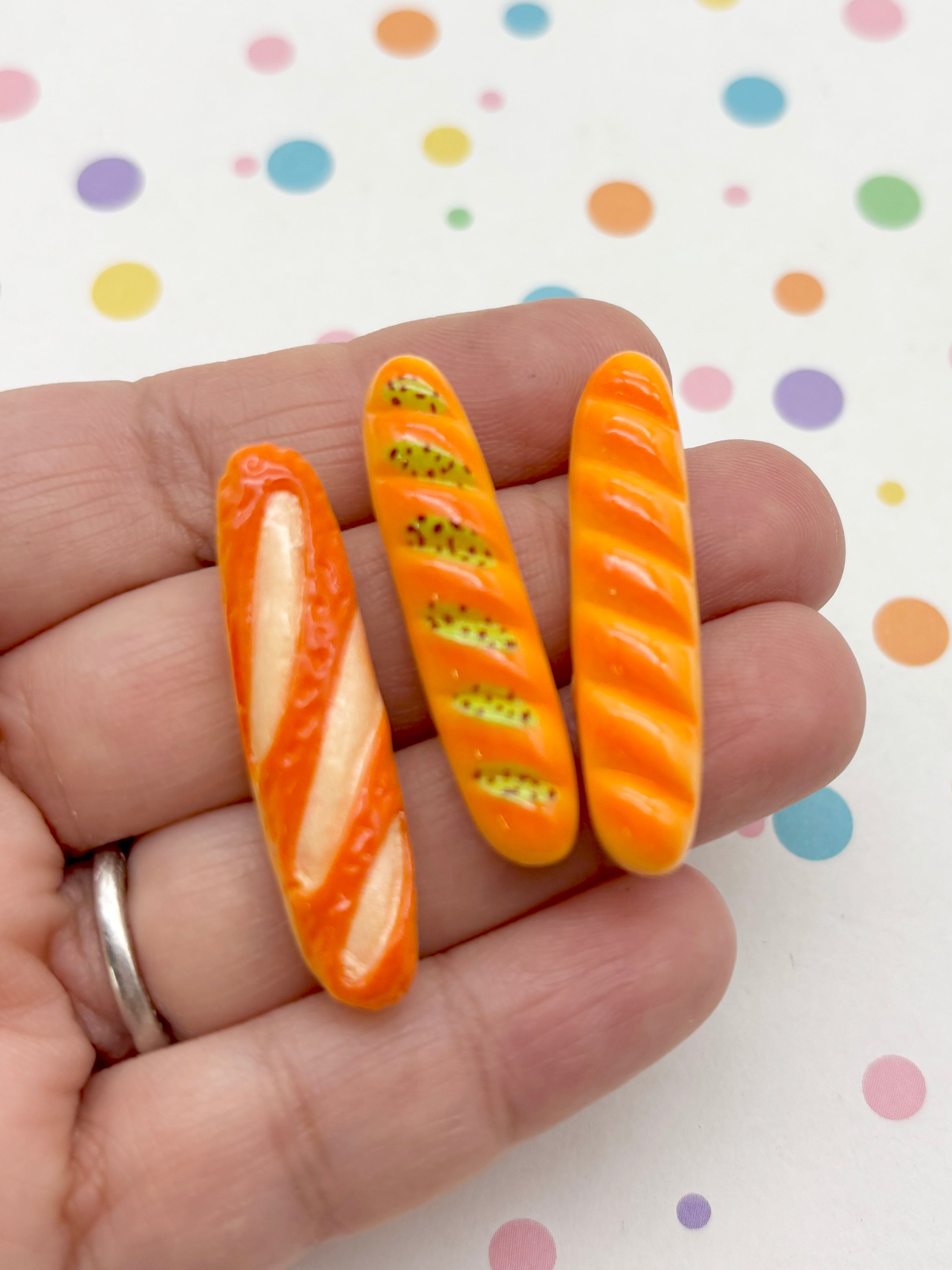 6 Assorted Flatbacked Resin 38mm Baguette Bread Cabochons, Cute Decoden Flat Backed Acrylic Plastic Cabs 1073