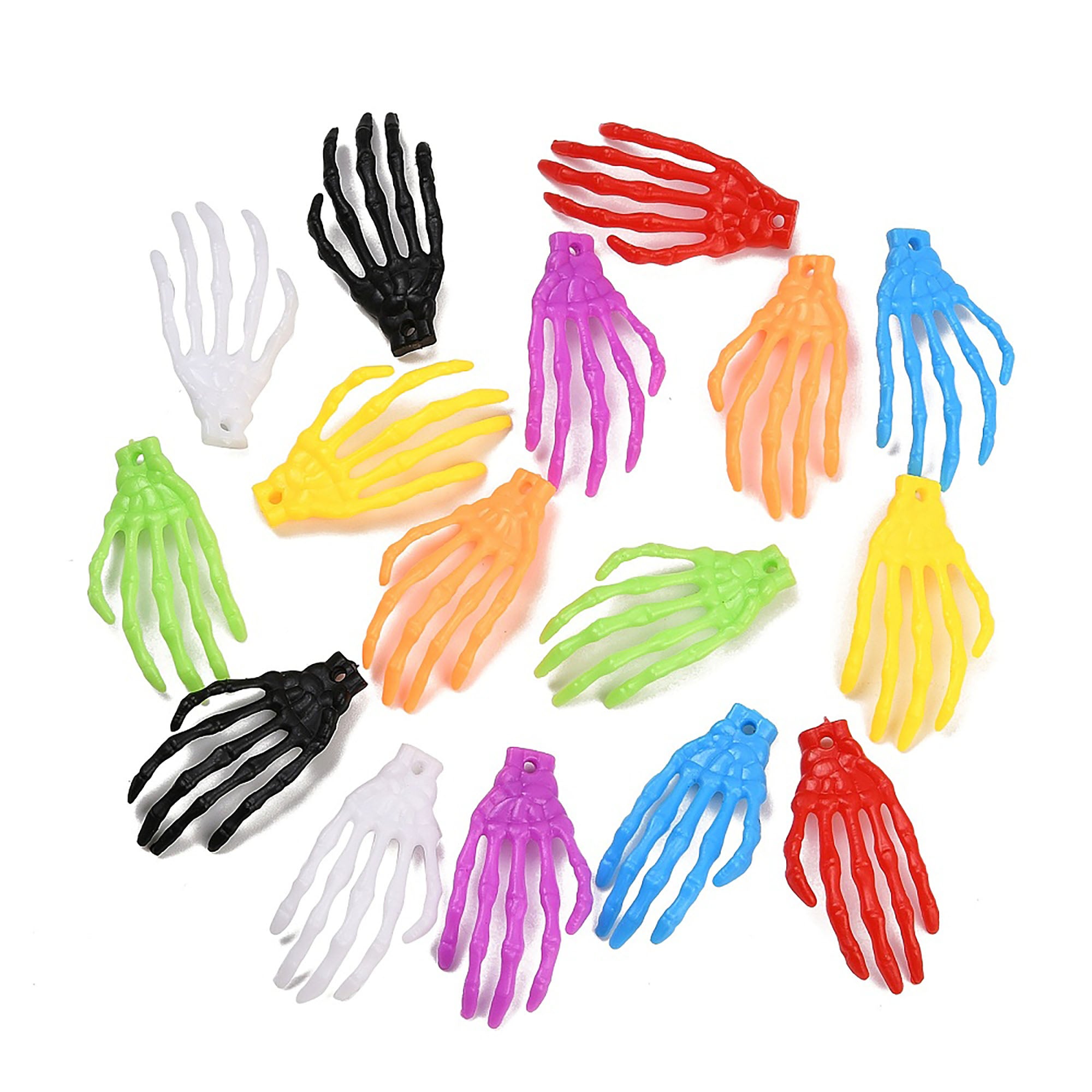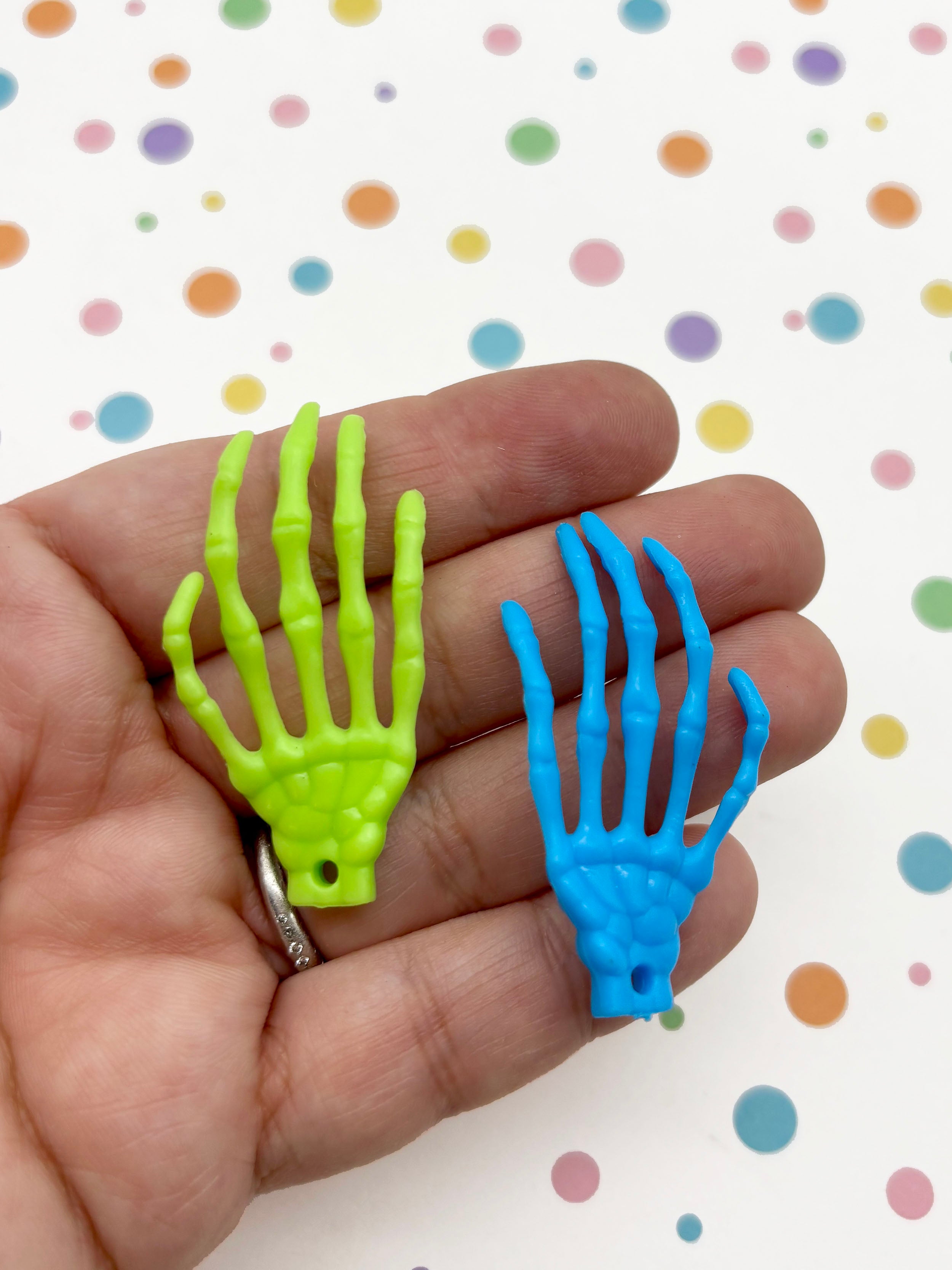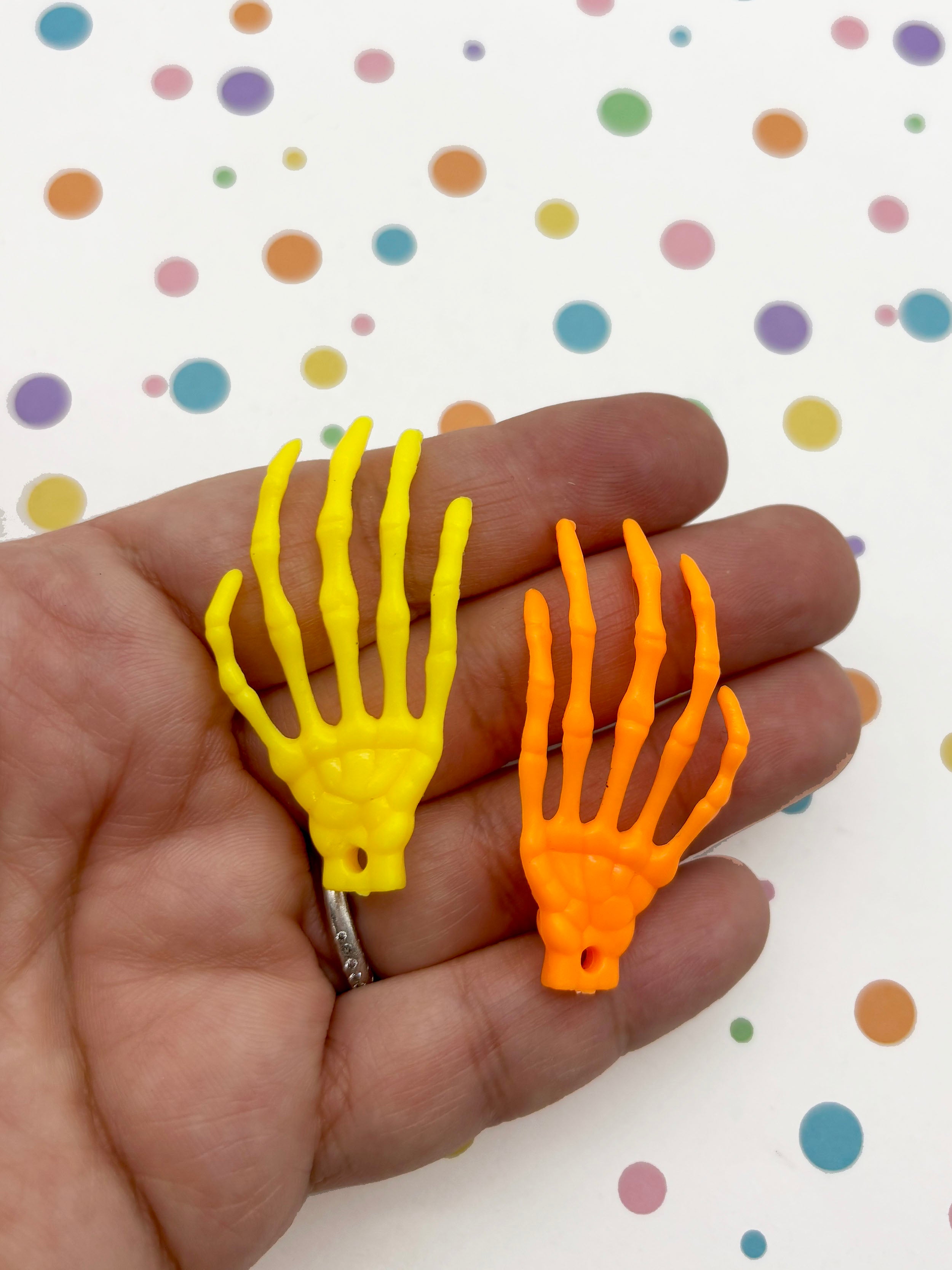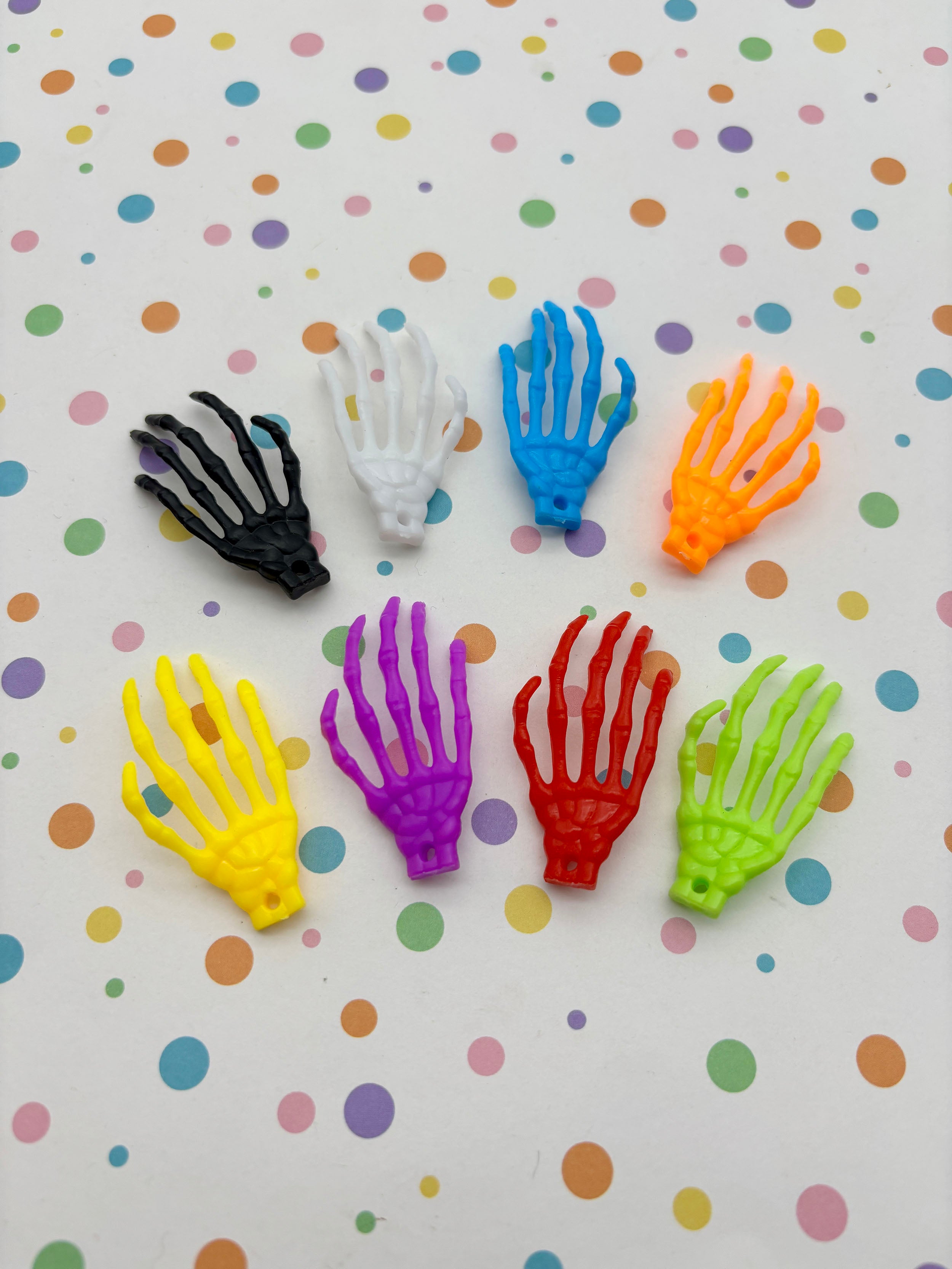 10 Cute Colorful Acrylic Plastic Spooky Skeleton Hand Pendants , Resin 3D Halloween Charms, X24