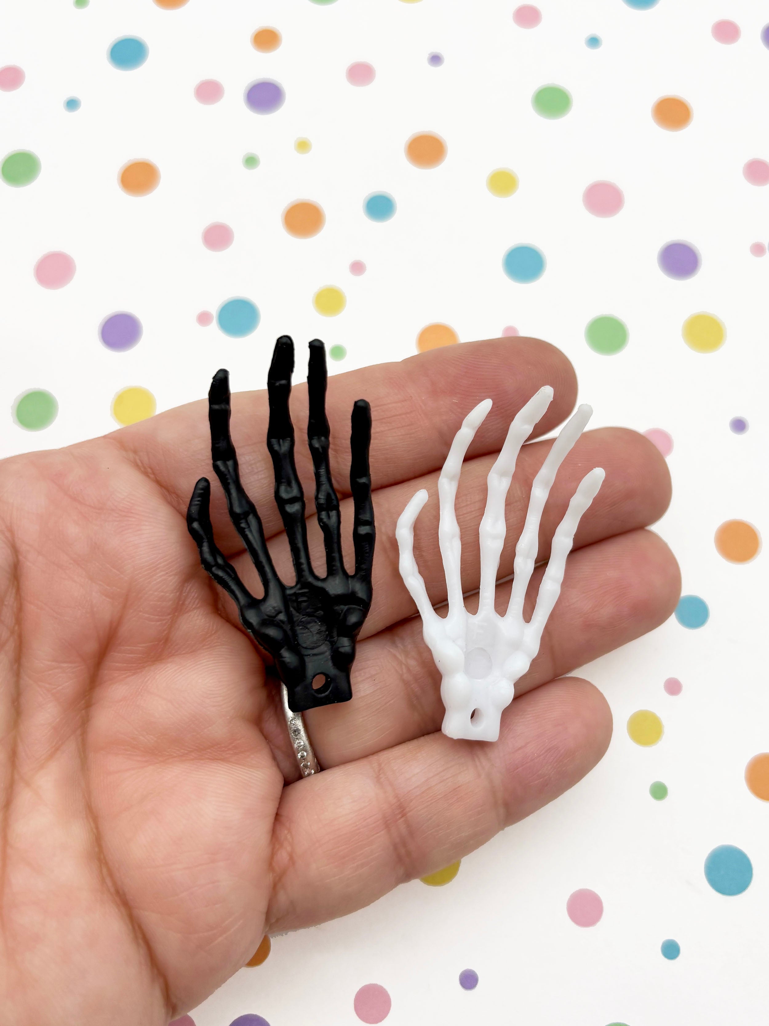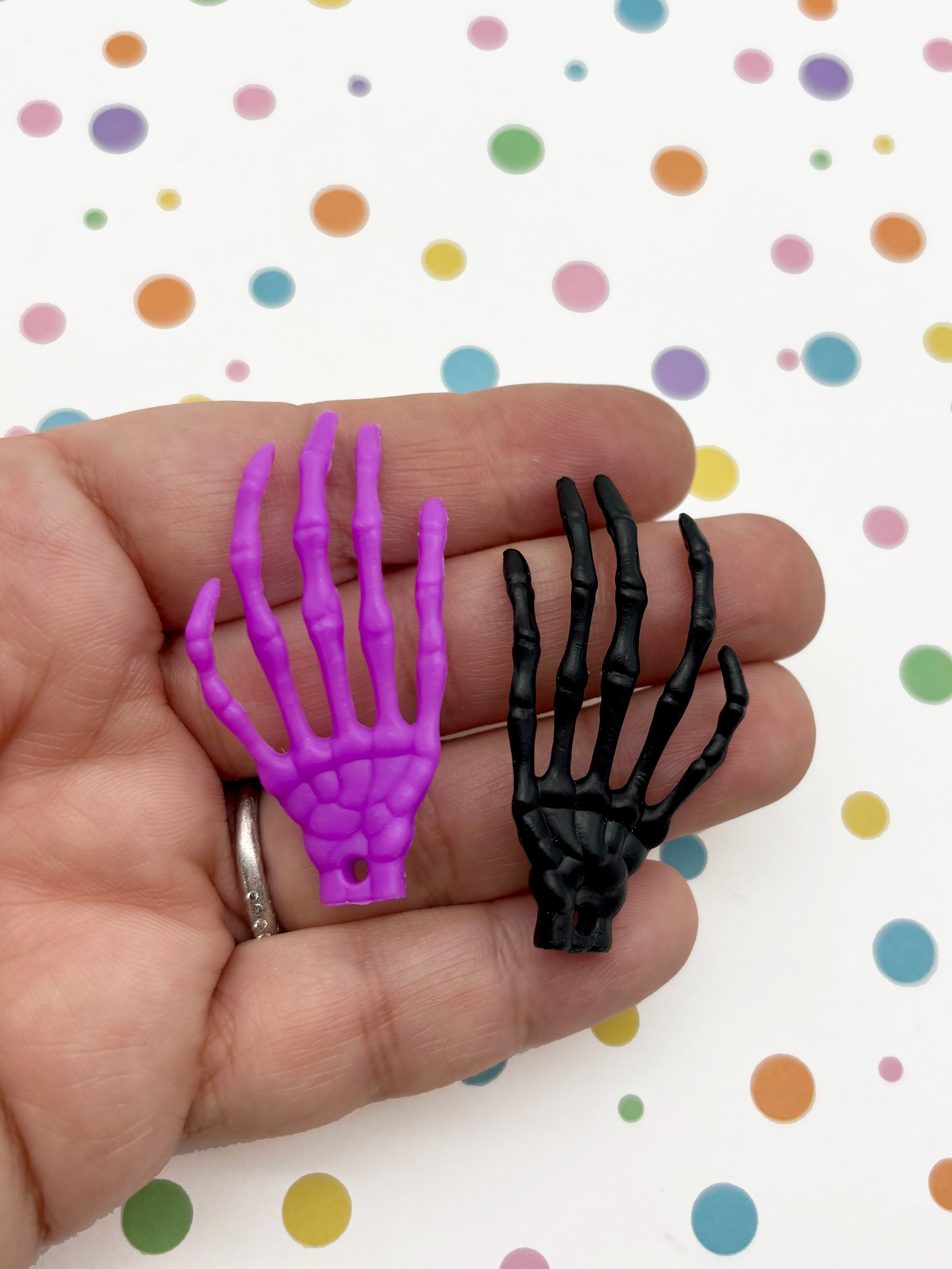These are resin cute spooky skeleton hand cabochons that are perfect for all your spooky Halloween craft projects. These are 45x22 with a 1.8mm hole. You will get 10 pieces. We will send them in pairs!
