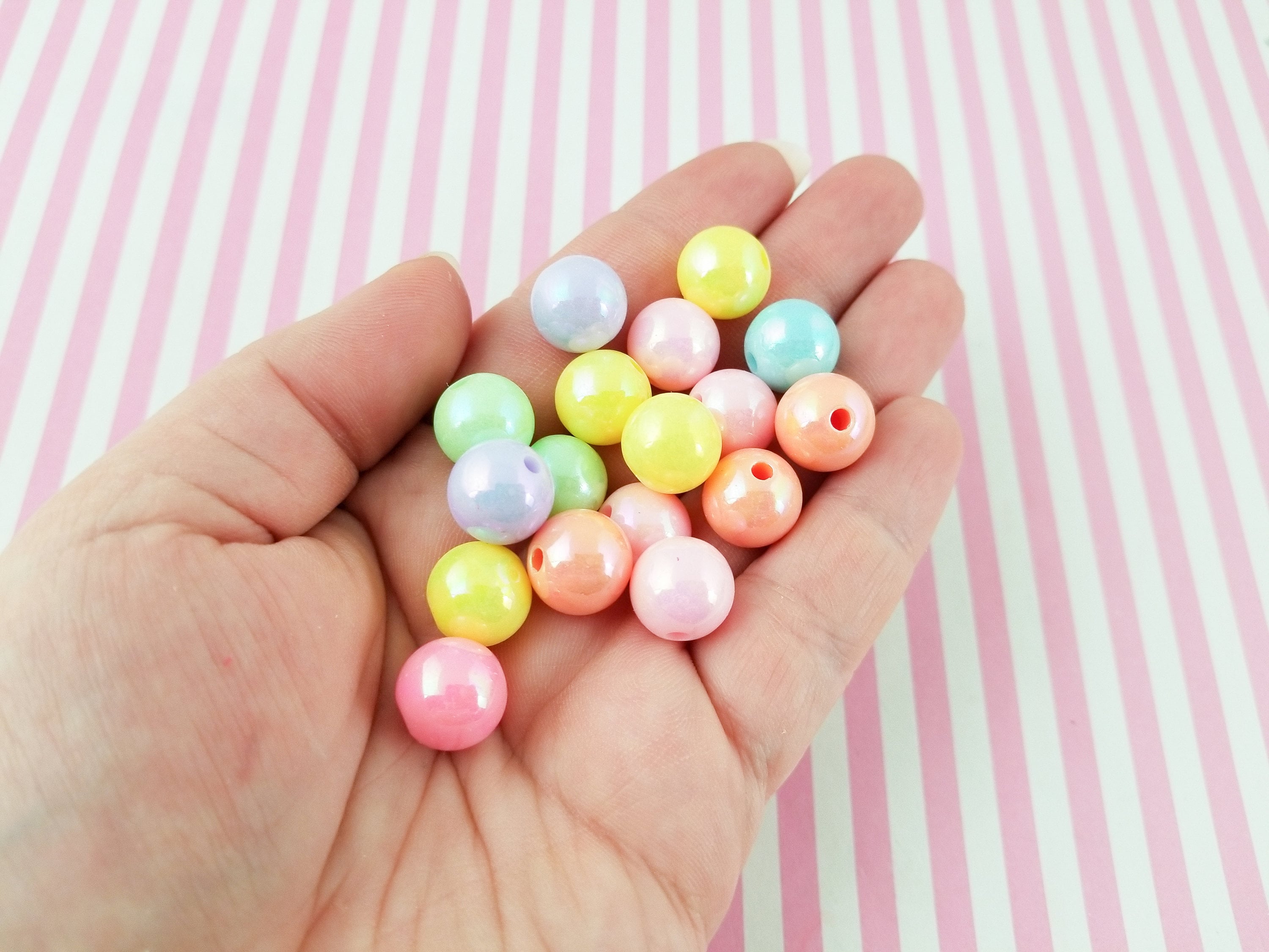 These are 12mm pearly iridescent assorted pastel bubble gum beads. You will get an assortment of colors based on our stock.