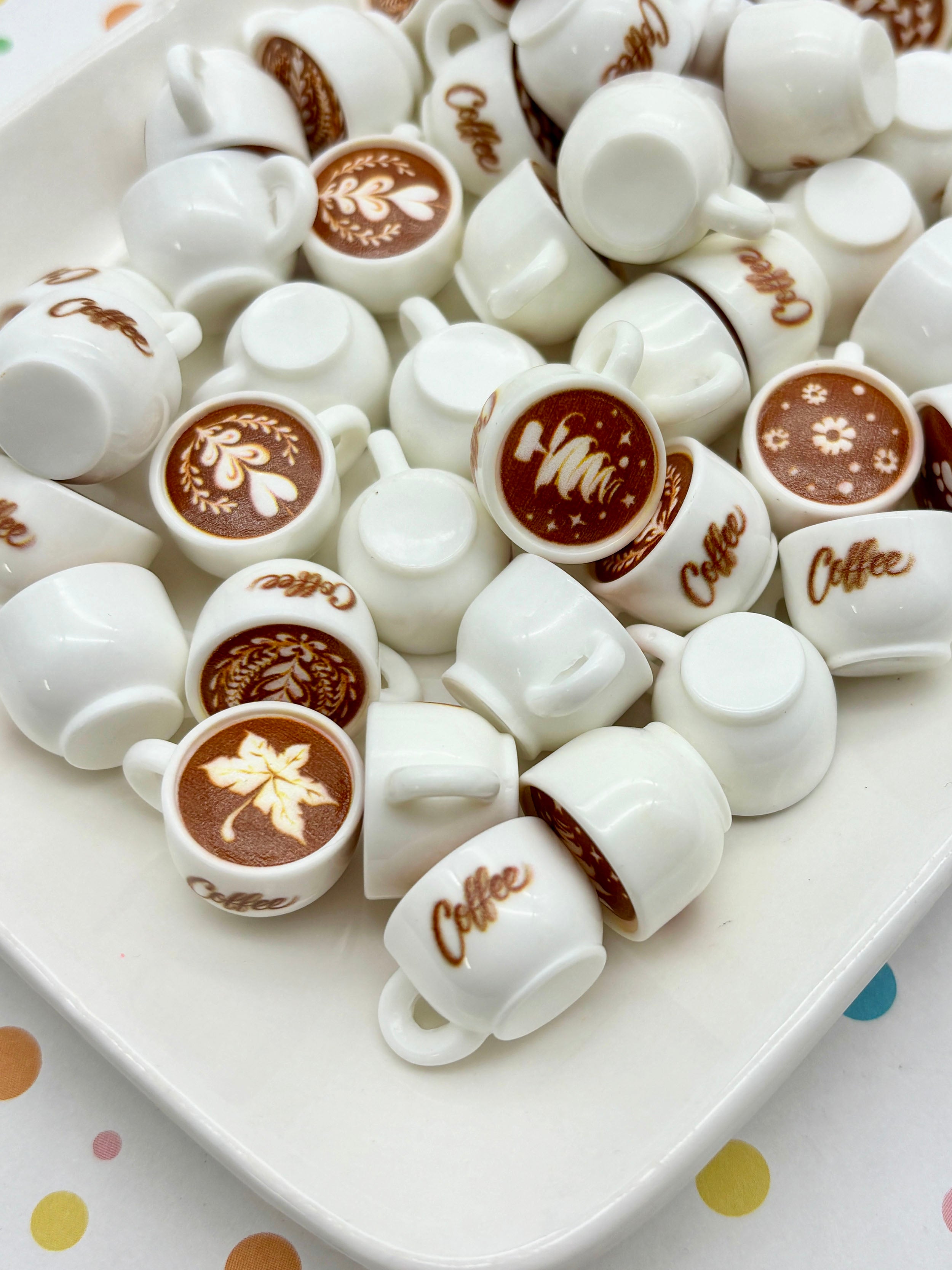 These are really nicely made coffee cup cabochons. They are 13x23x17mm and have a cute designs on the top. They are made out of hard resin and you will get 4 pieces in a mix of designs.