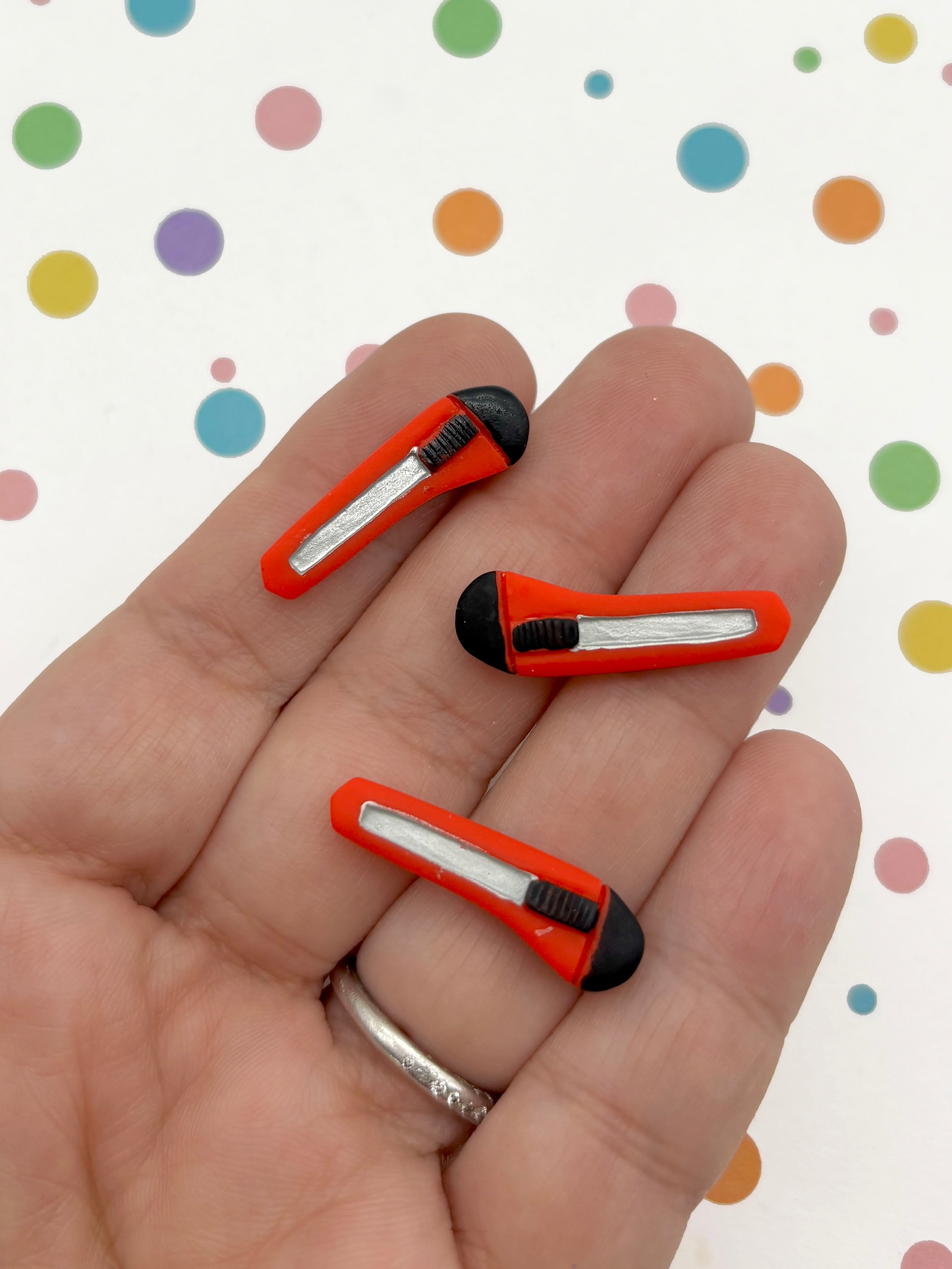 These are adorable tool cabochons. They are 26x8mm long and they would look awesome used in jewelry or as miniatures. These tool cabochons are made out of flat backed resin and you will get 5 pieces.
