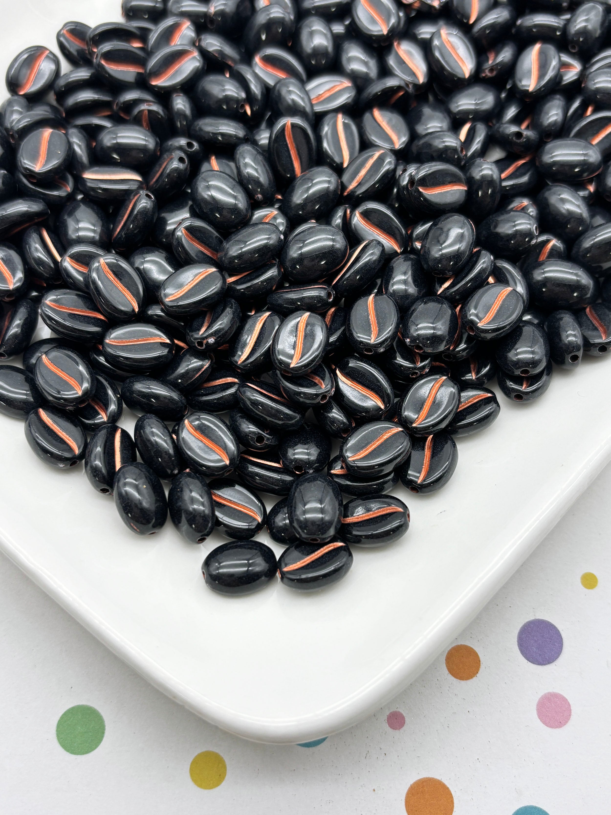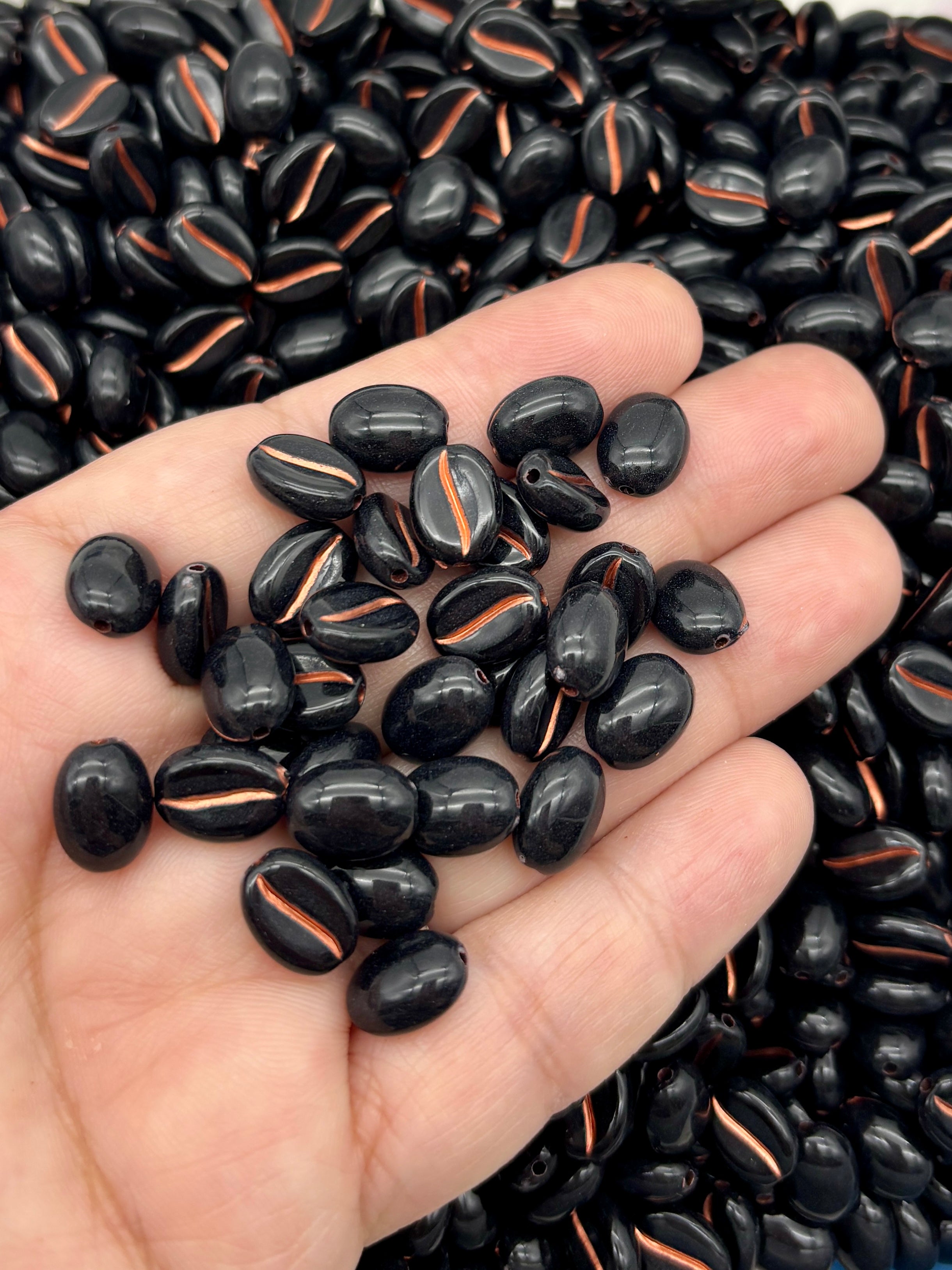 50 Dark Expresso Acrylic Plastic Coffee Beans, Black and Gold Resin Beading Supplies C186