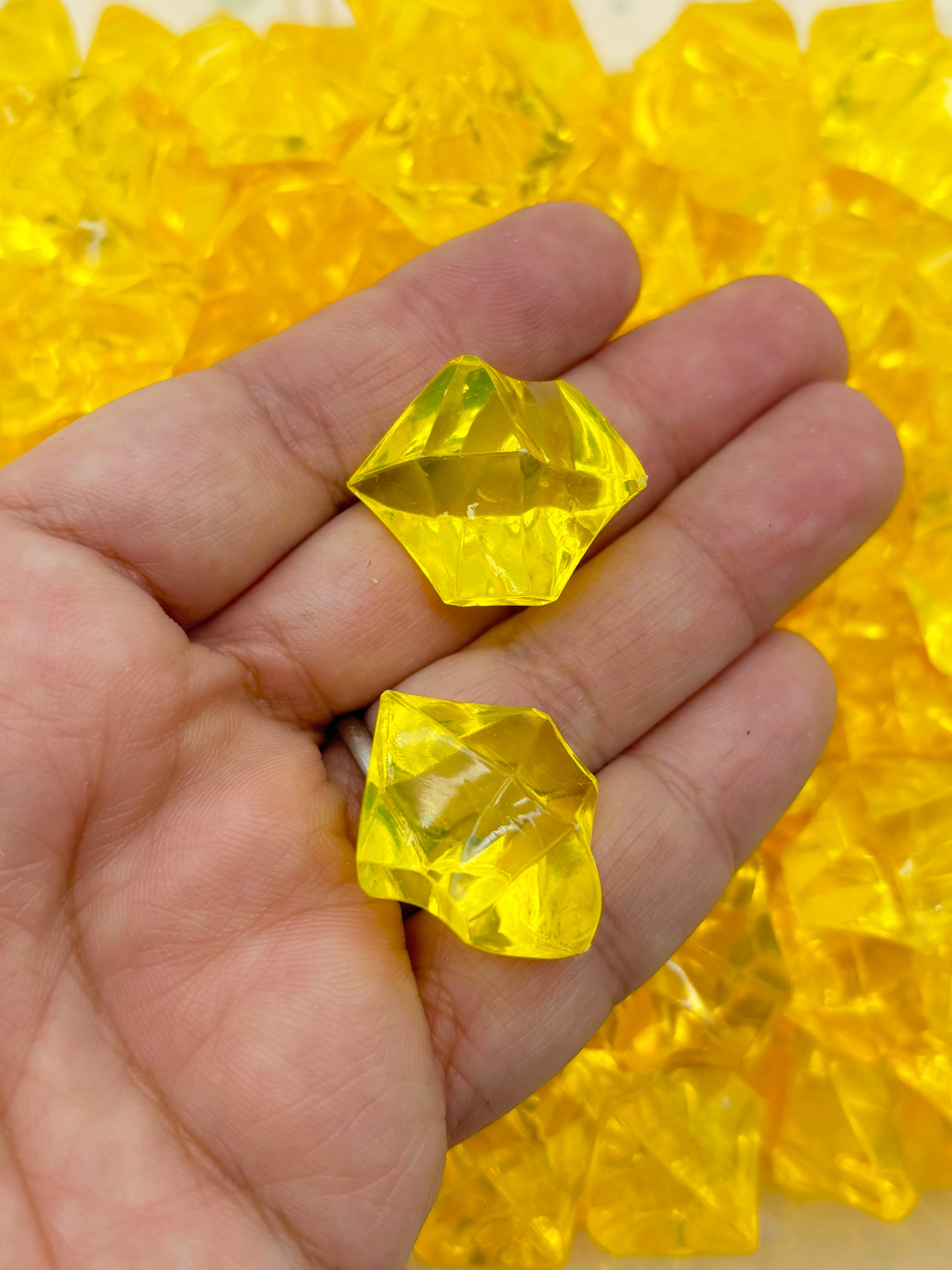 50g LARGE Transparent Yellow Acrylic Gemstone Chunks, Resin Gem Stones, Faux Plastic Diamonds, 20+ Pieces CHK 12