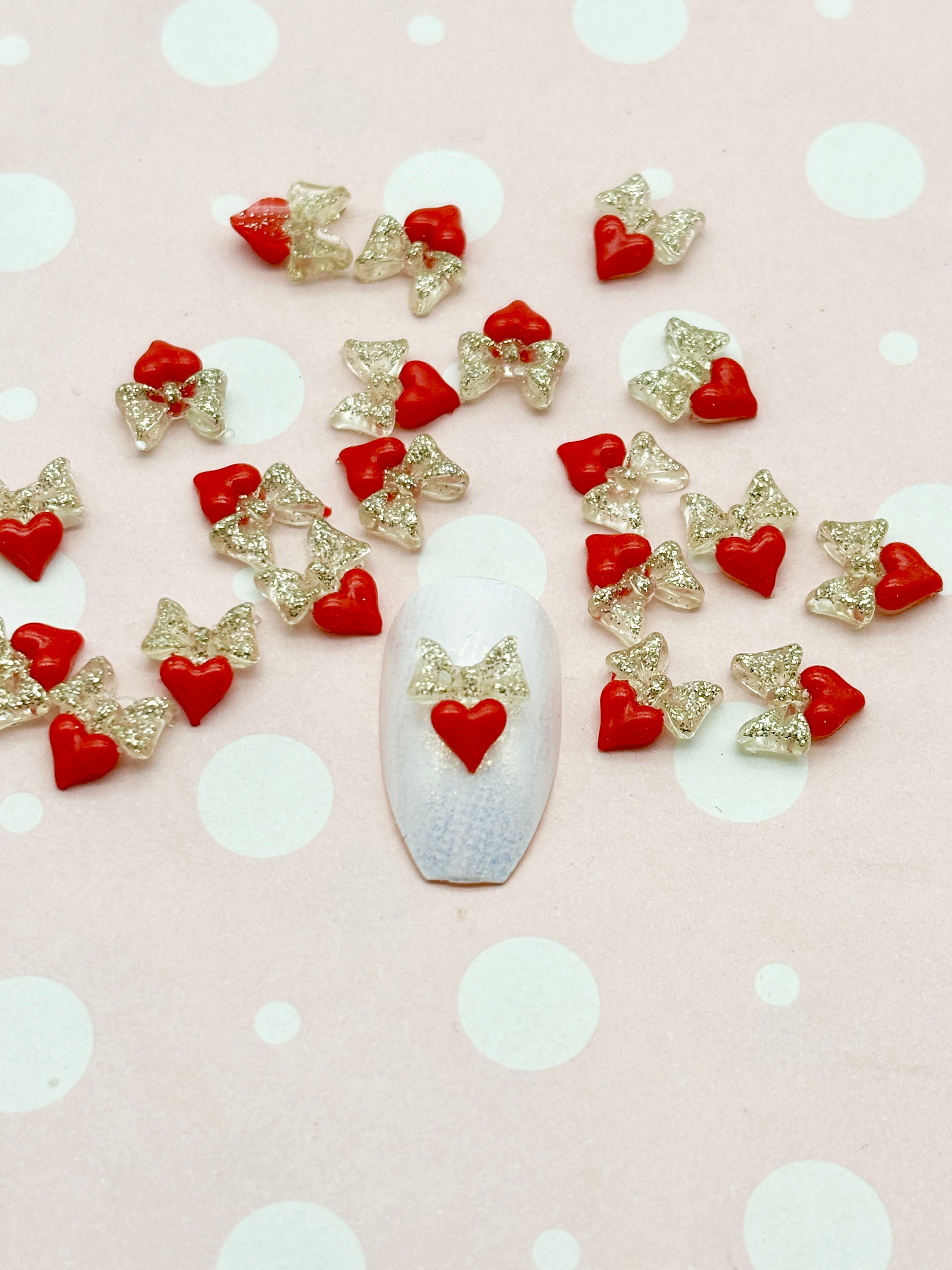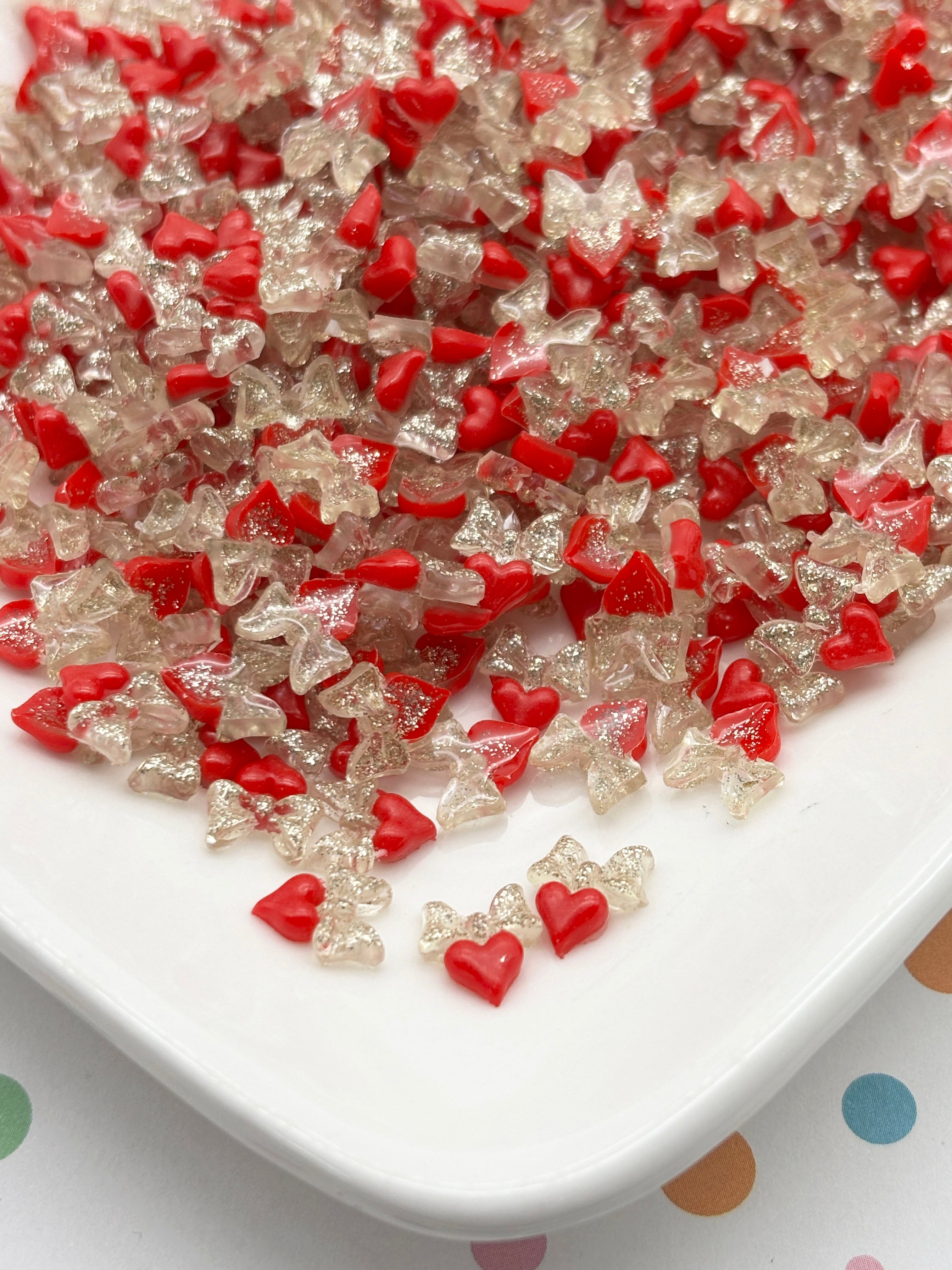 These tiny 9.5x8.5x2.5mm glitter resin heart tiny nail embellishment cabs are super cute.