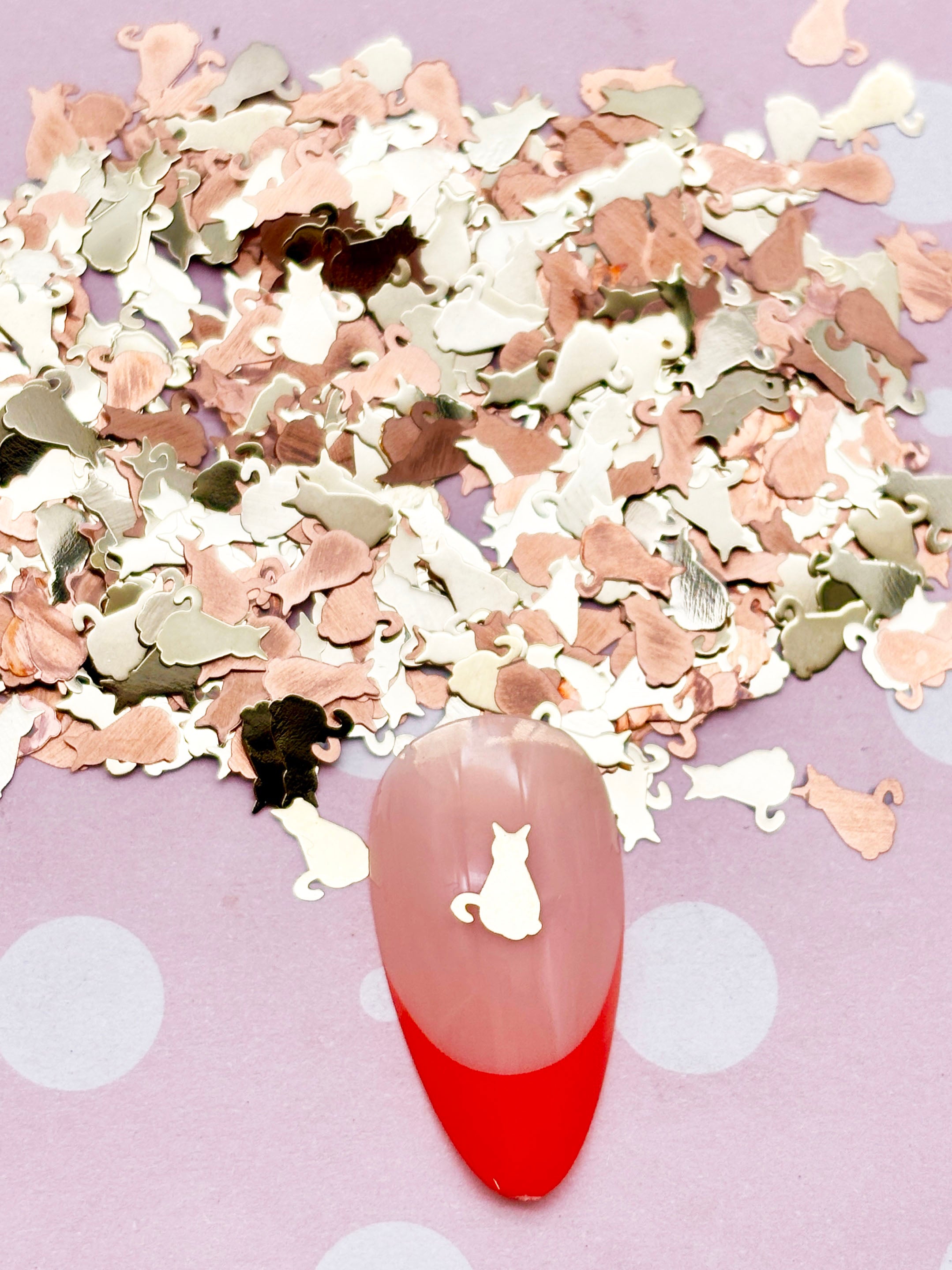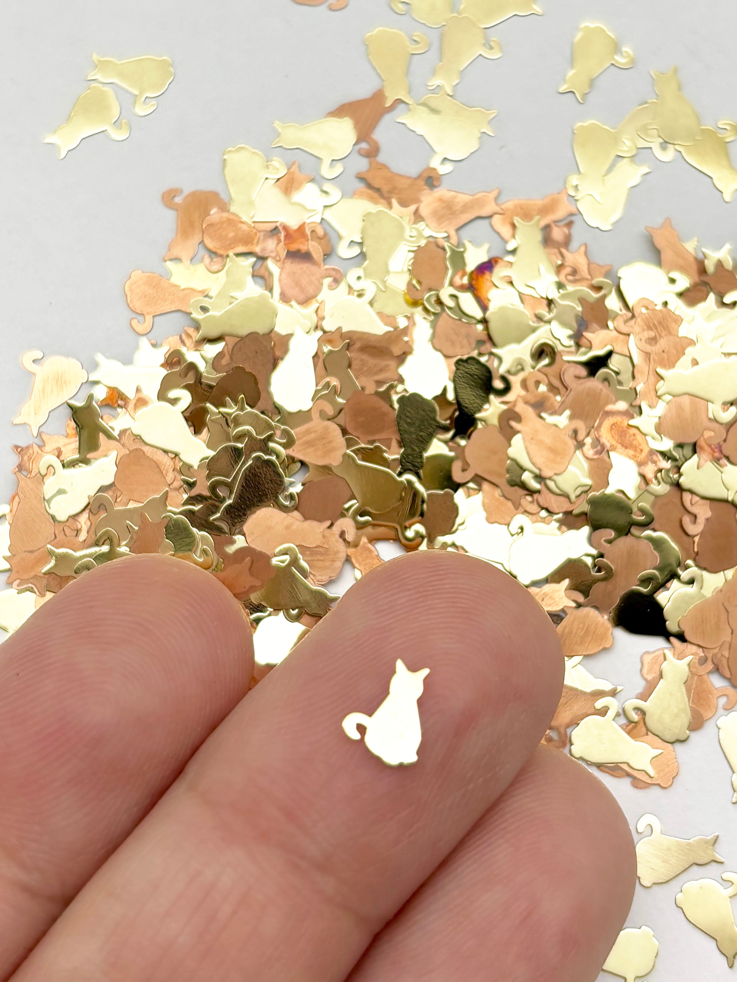 50 Tiny 6mm Gold Toned Metal Cat Cabochons, Kitten Cat Cute Kawaii Nail Cabs, Charm Resin Supplies, Resin 1480