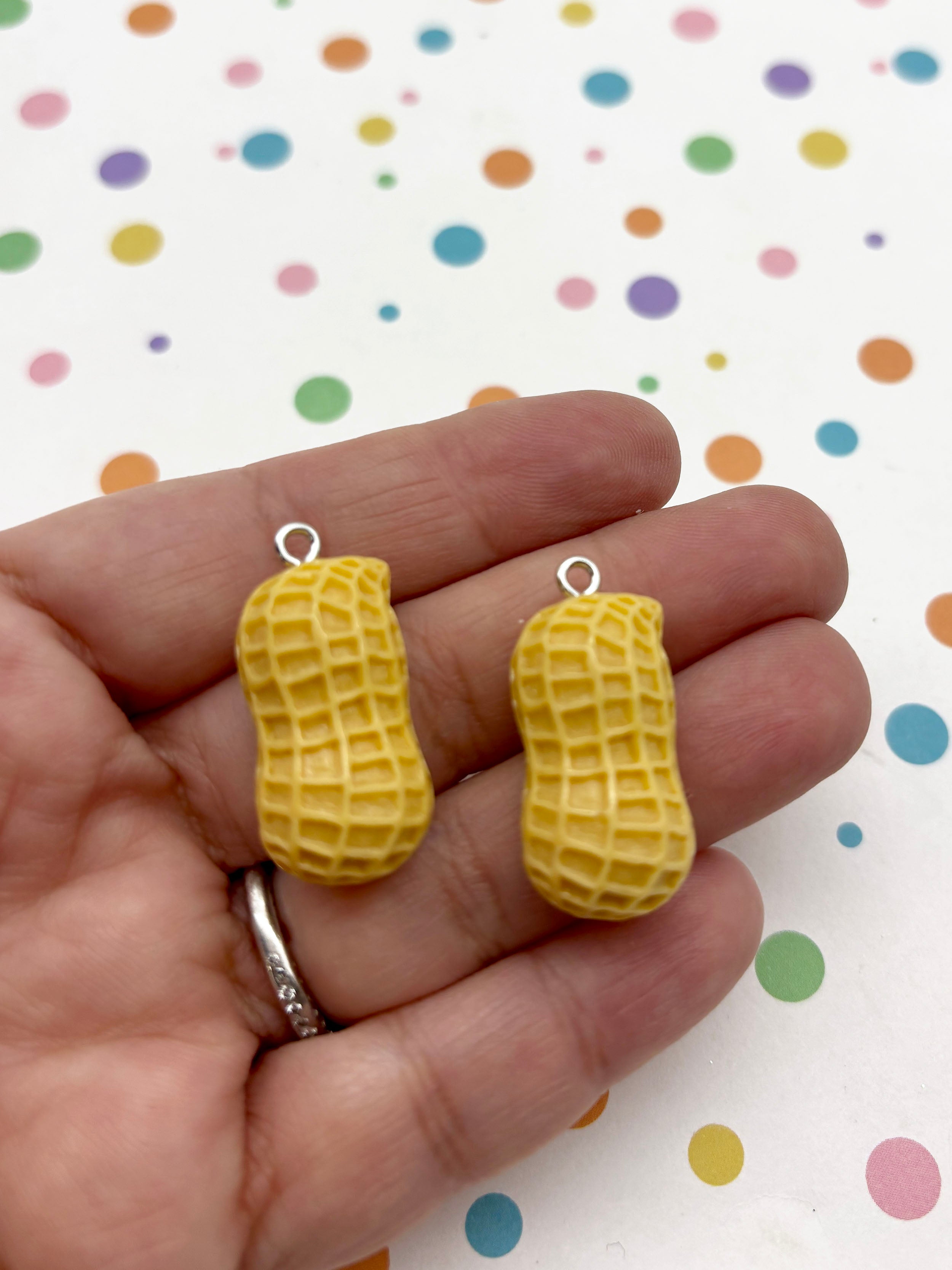 These are realistic peanut charms. They are made out of hard resin and they have a satin finish. They would be perfect to dress up a fake dessert or phone cases. I have tons of other tiny fruits and nuts available in my shop for making miniature deserts.