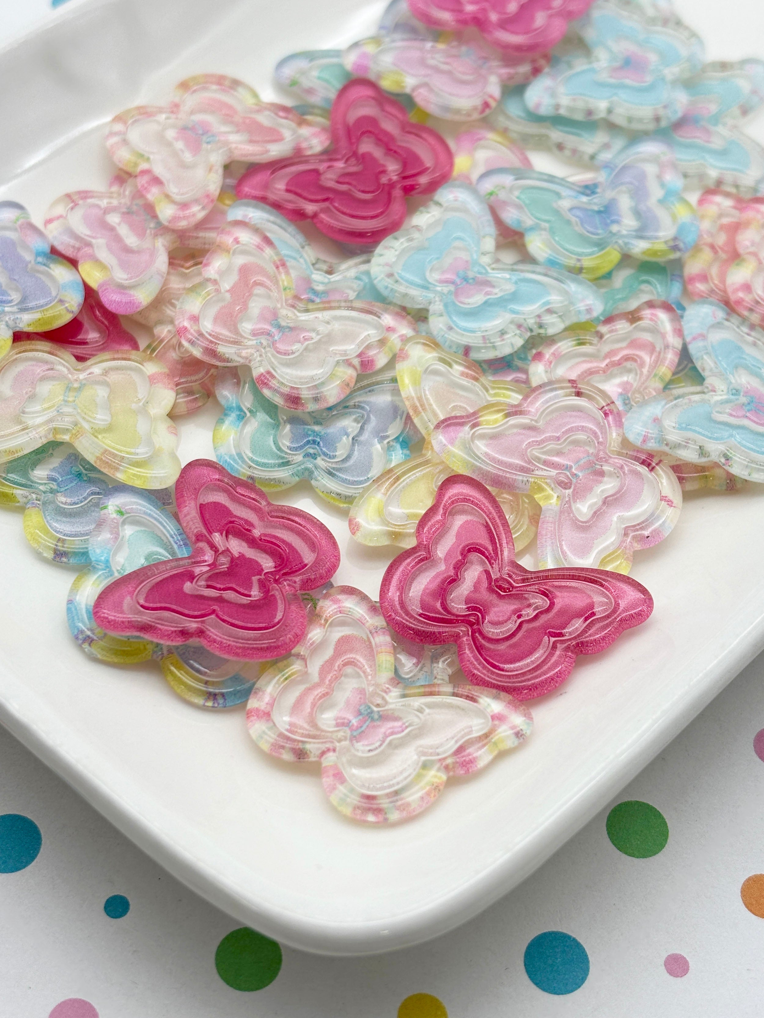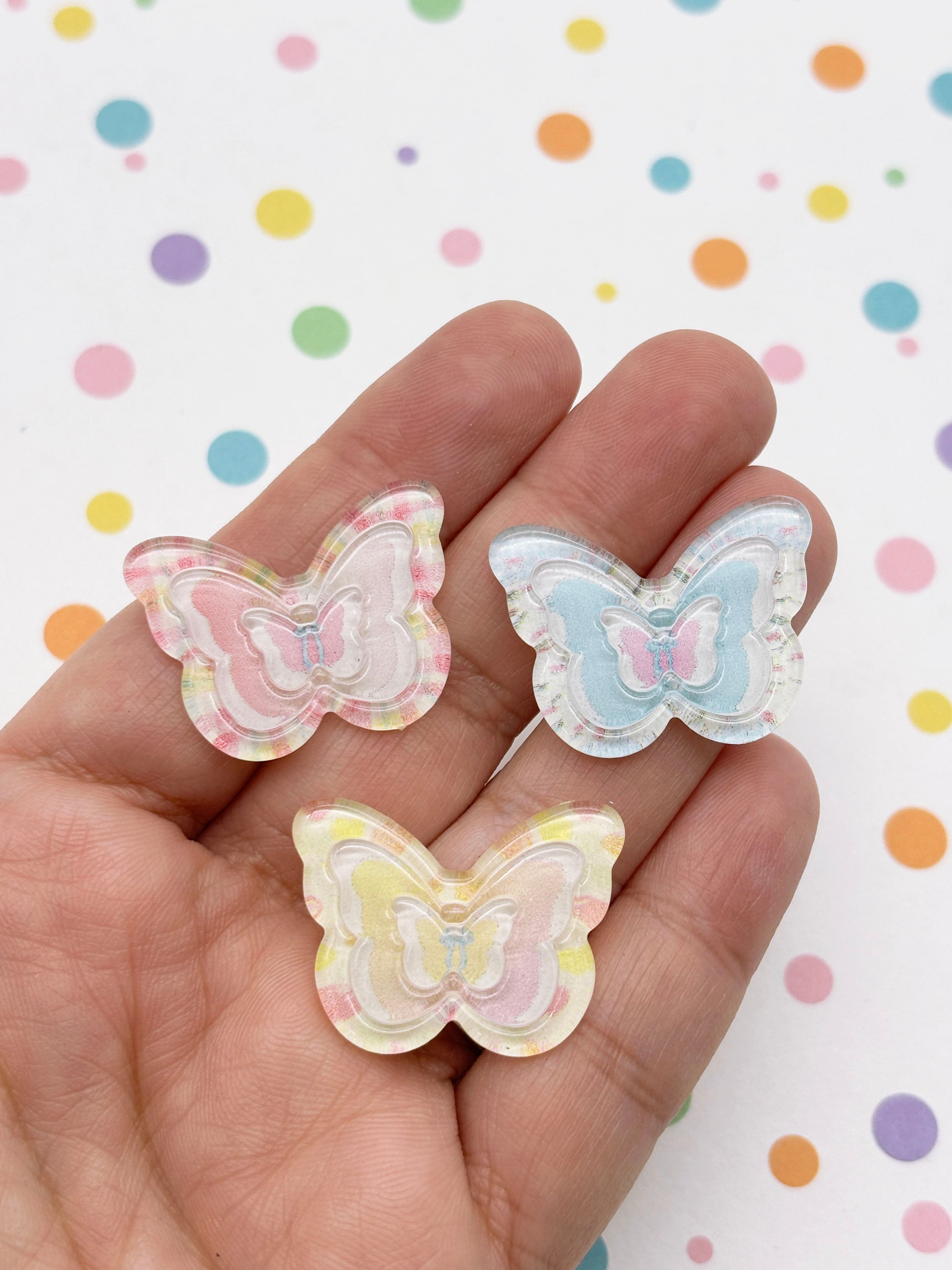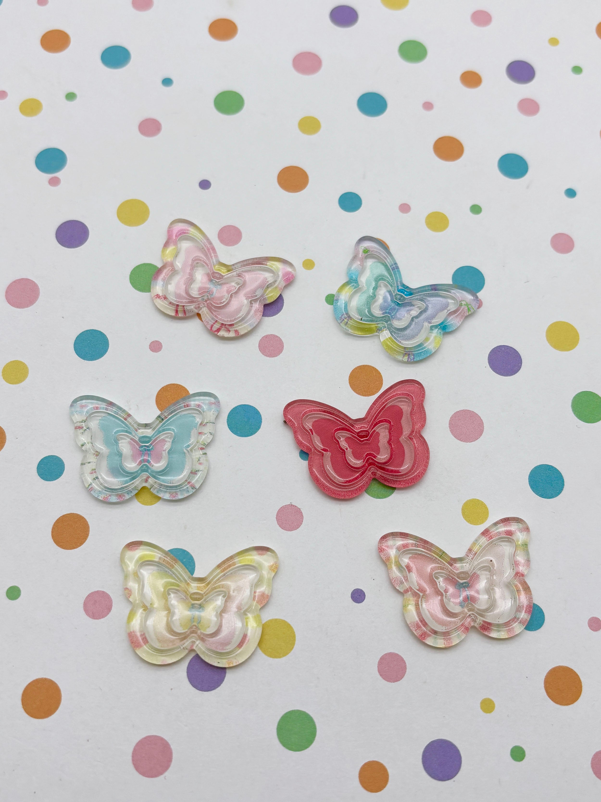 Pastel 6 Multicolor Flatbacked Resin Butterfly Cabochons, Flat Backed Acrylic Plastic Butterflies, Cute Cabs 982