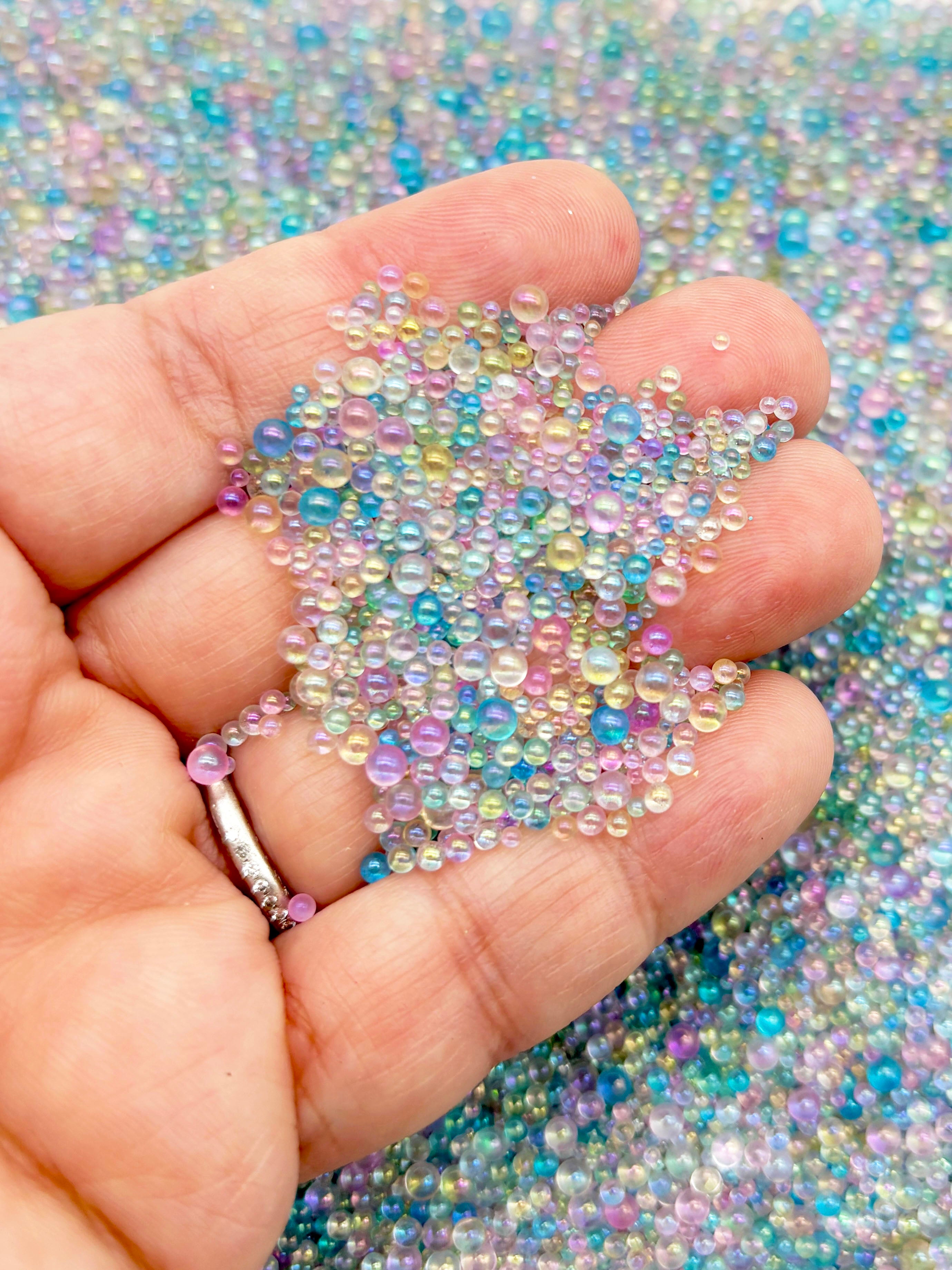 Iridescent Cotton Candy Clear Glass Assorted ROUND Microbeads, .5-3mm No Hole Seed Beads Sprinkle Toppings, Pick Your Amount, G152