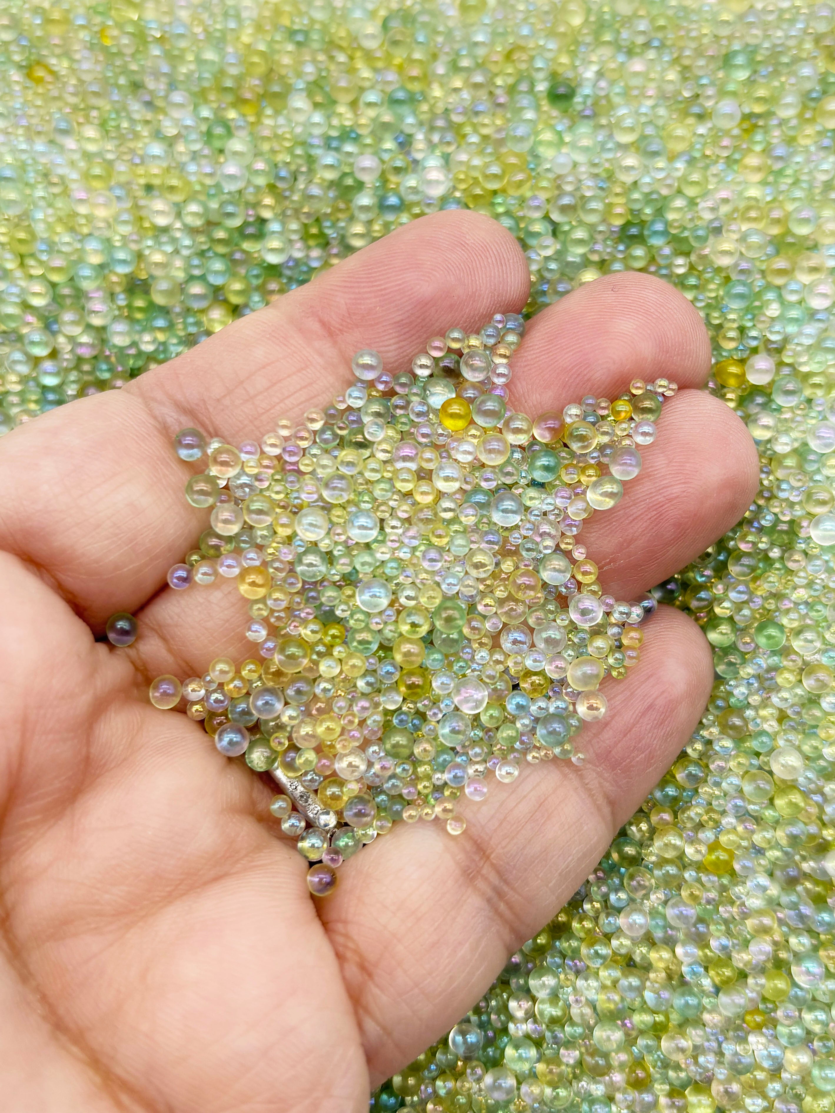 Shades Of Green Glass Assorted ROUND Microbeads, .5-3mm No Hole Seed Beads Sprinkle Toppings, Pick Your Amount G119