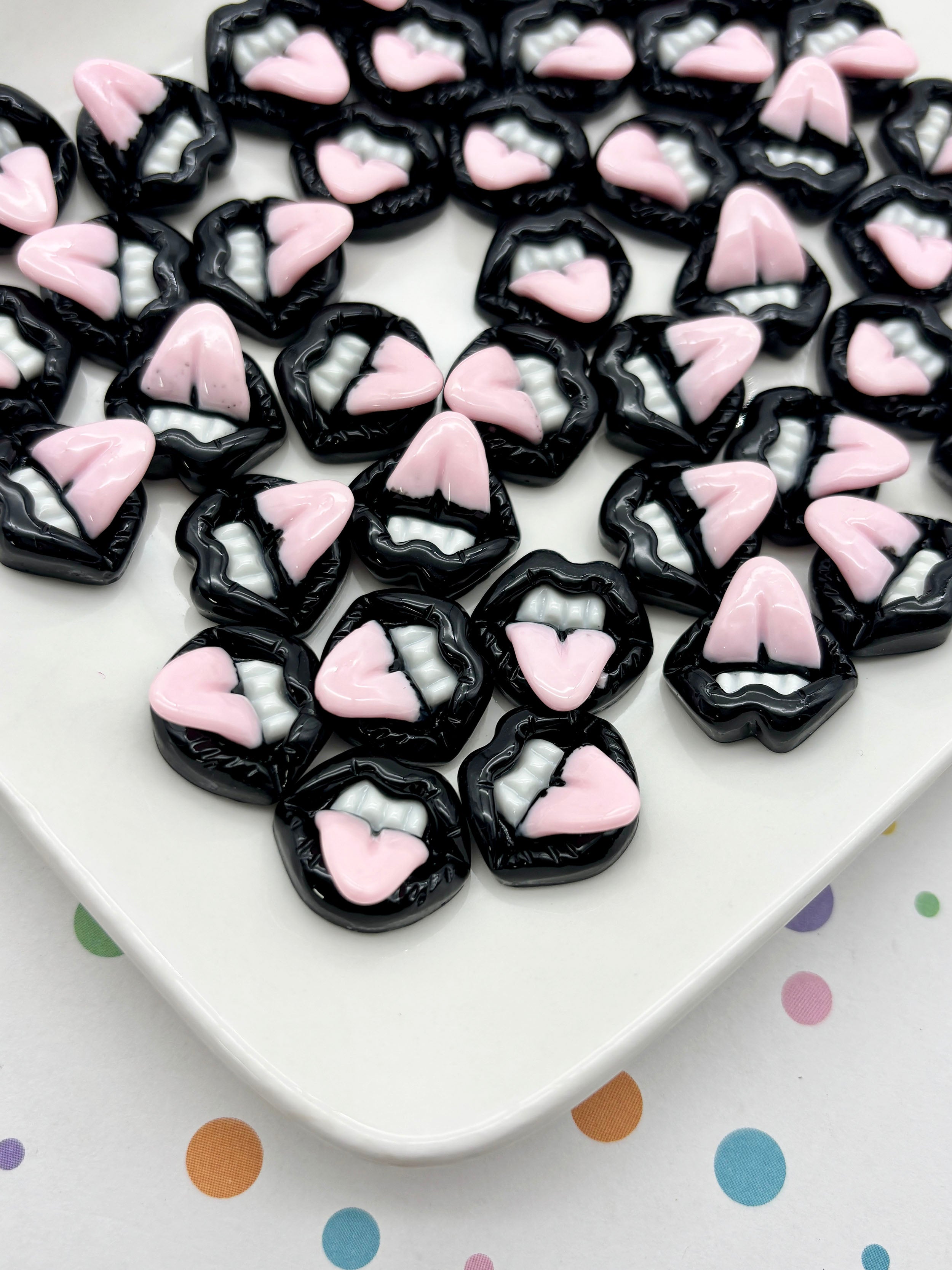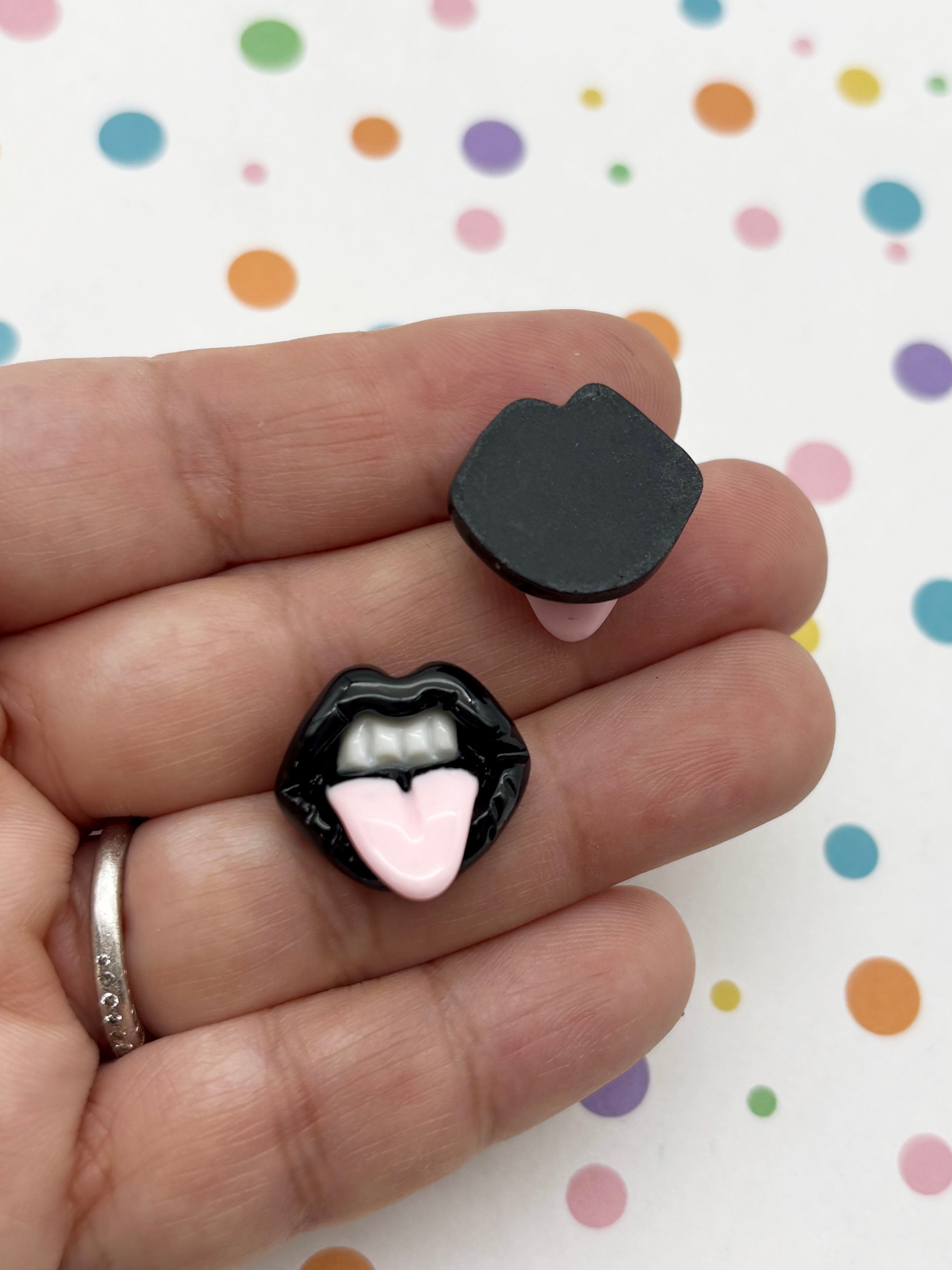 These are flatbacked black lip cabochons are super cute. They are perfect to make hair clips, jewelry and cell phone decorations. You will get 10 pieces.