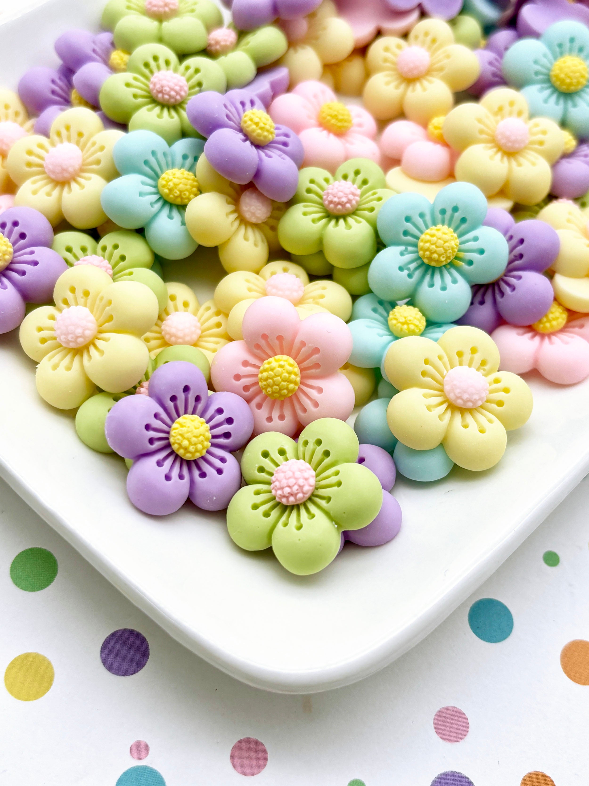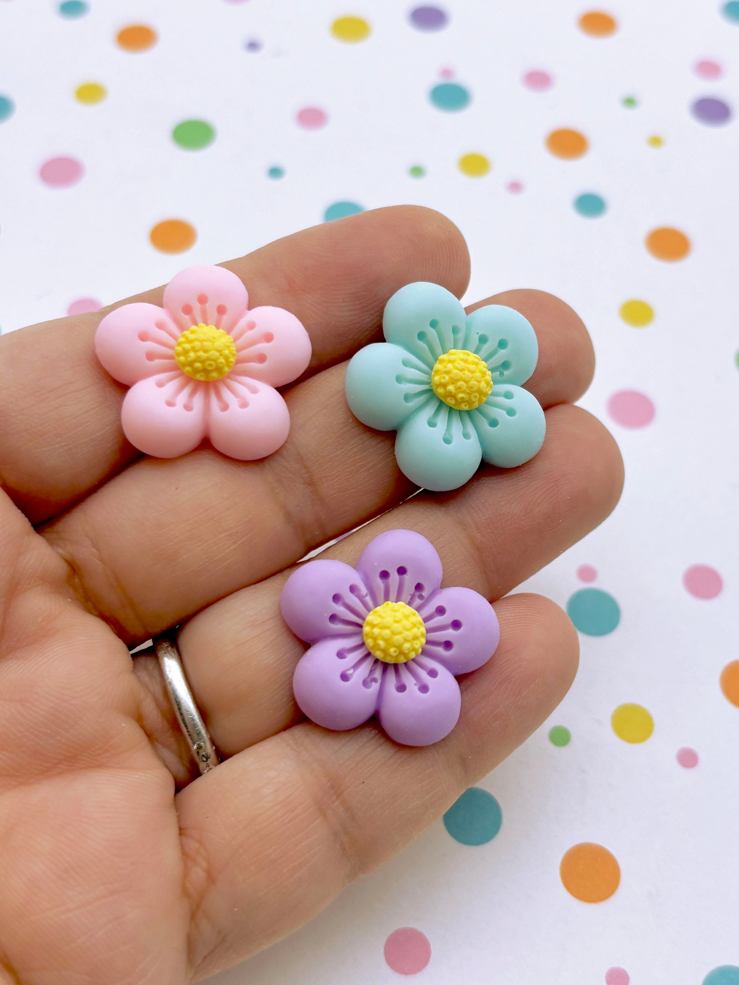 10 Pastel Flatbacked Acrylic Plastic Cherry Blossom Flower Cabochons, 22mm Flat Backed Resin Sakura Floral Cabs, 328b