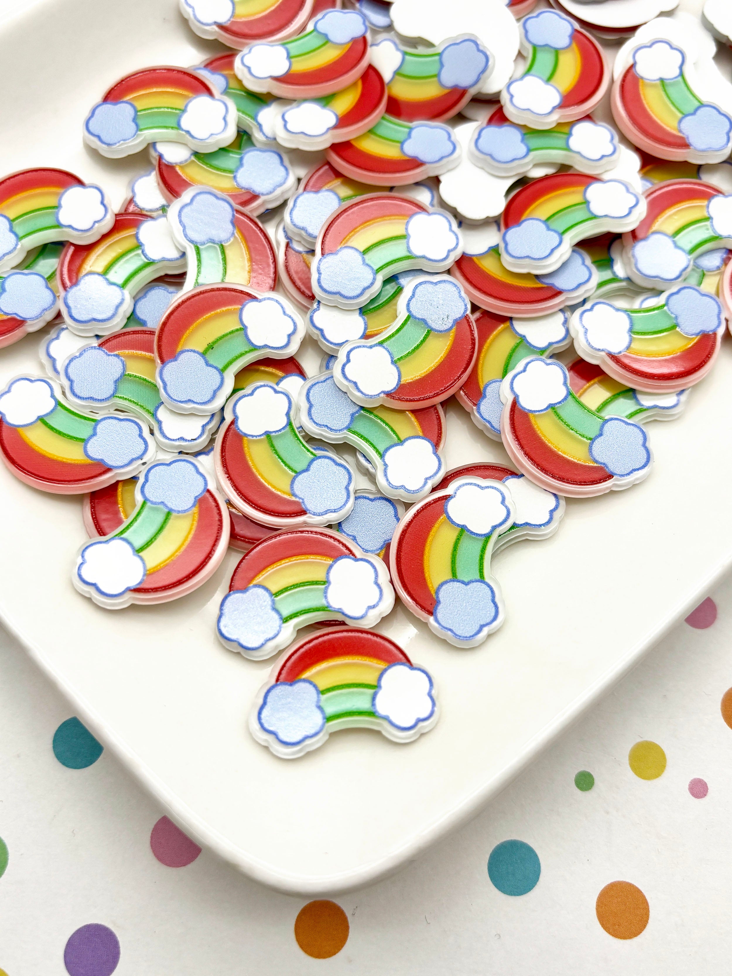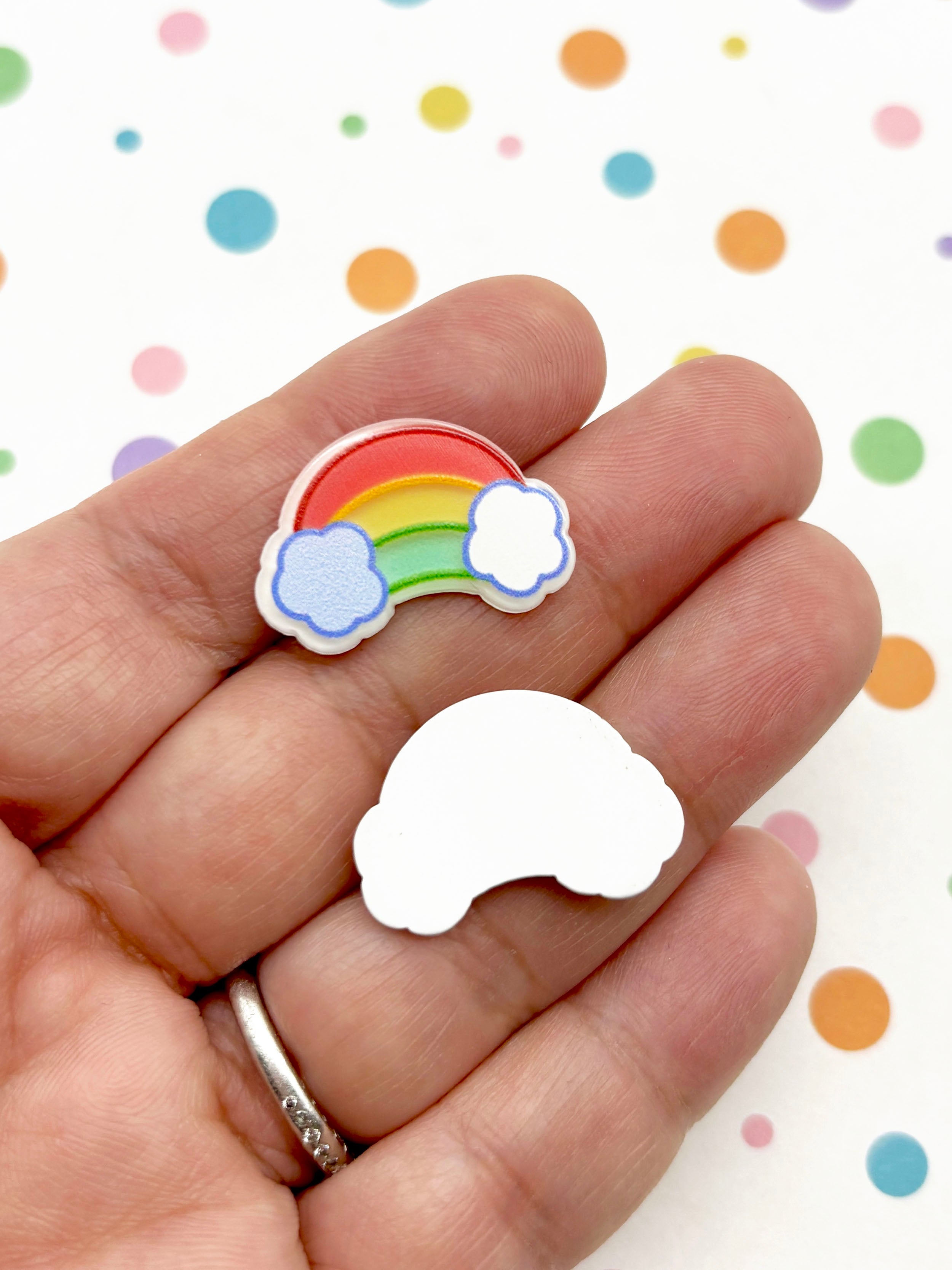 These rainbow cloud cabochons are just adorable! They are cute and colorful and are perfect for jewelry, phone cases, and all sorts of other crafty goodness!