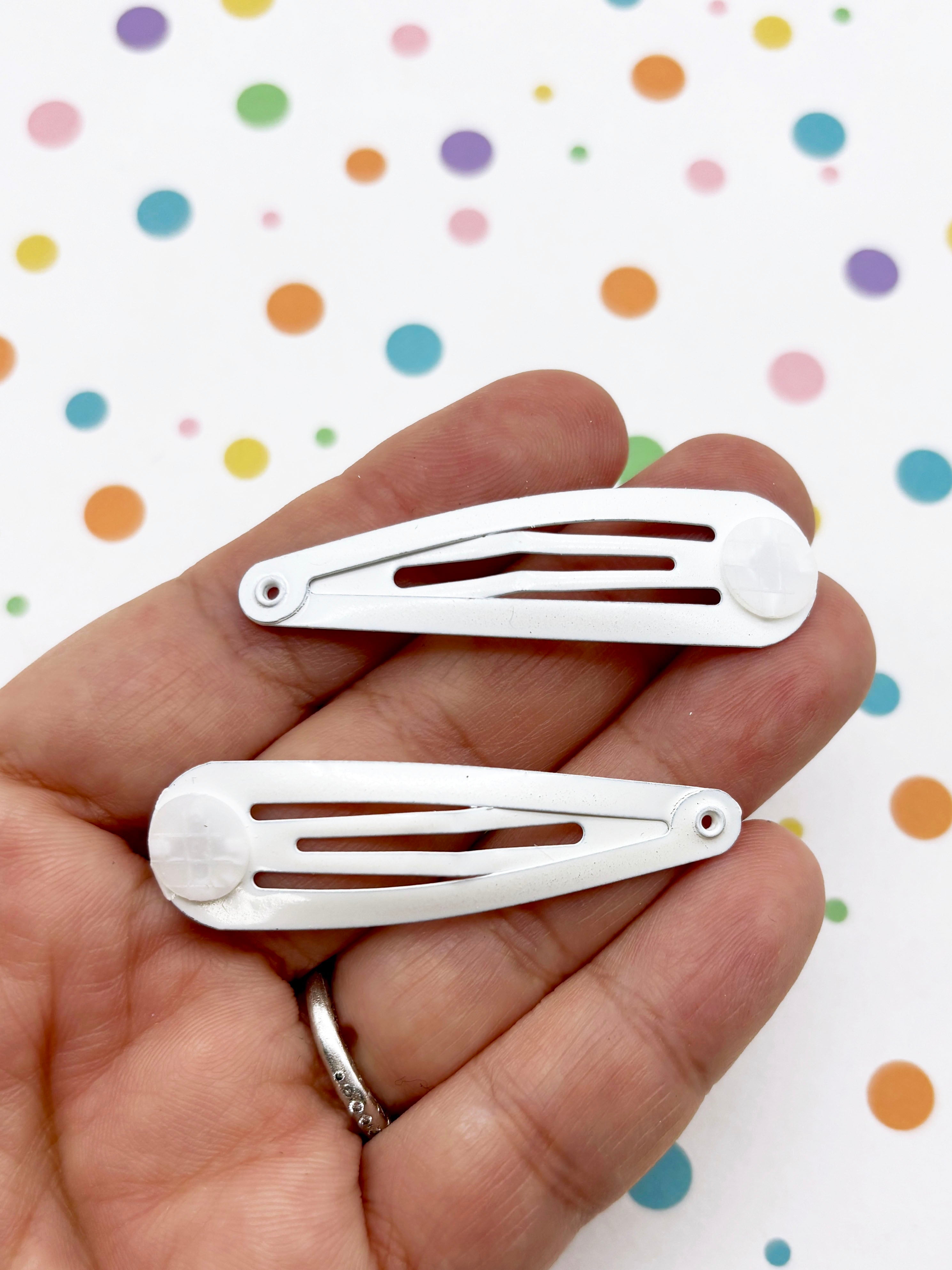 10 White Snap Hair Clip Barrettes With a Glue On Pad C189