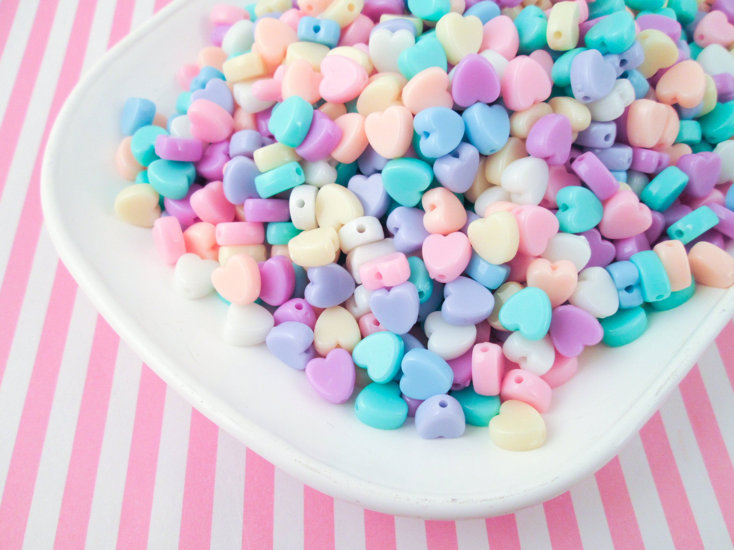 These cute heart beads come in a mix of pastel colors. They are perfect for children's jewelry or your fairy kei creations! They are 9x8mm with a 1mm hole.