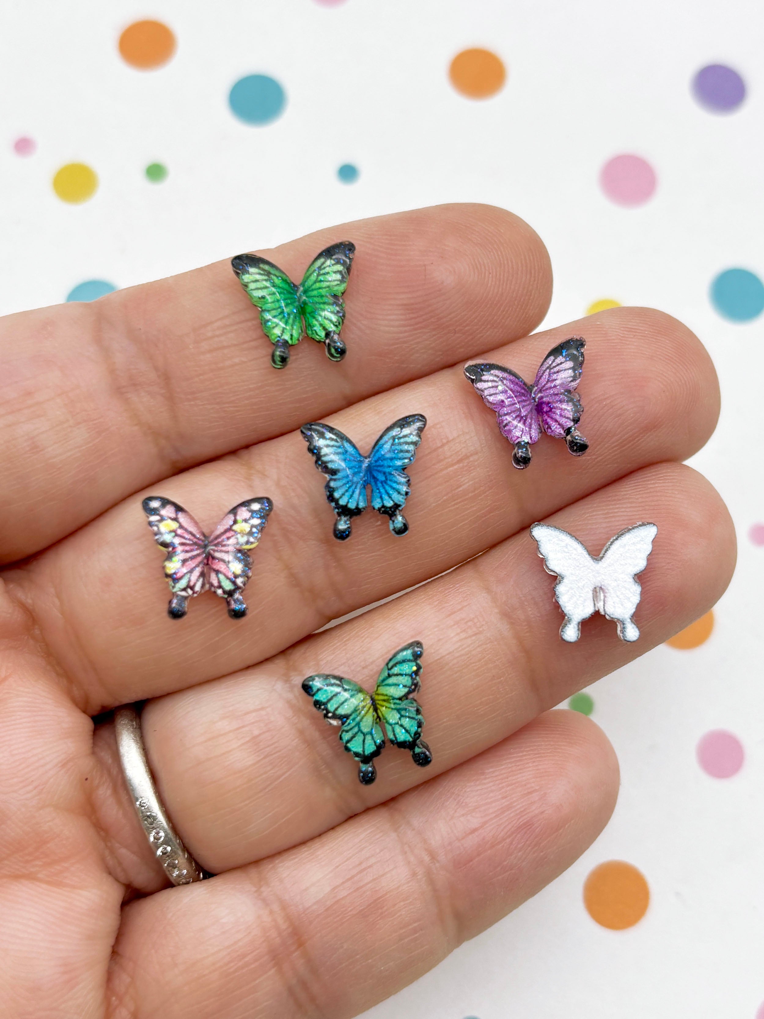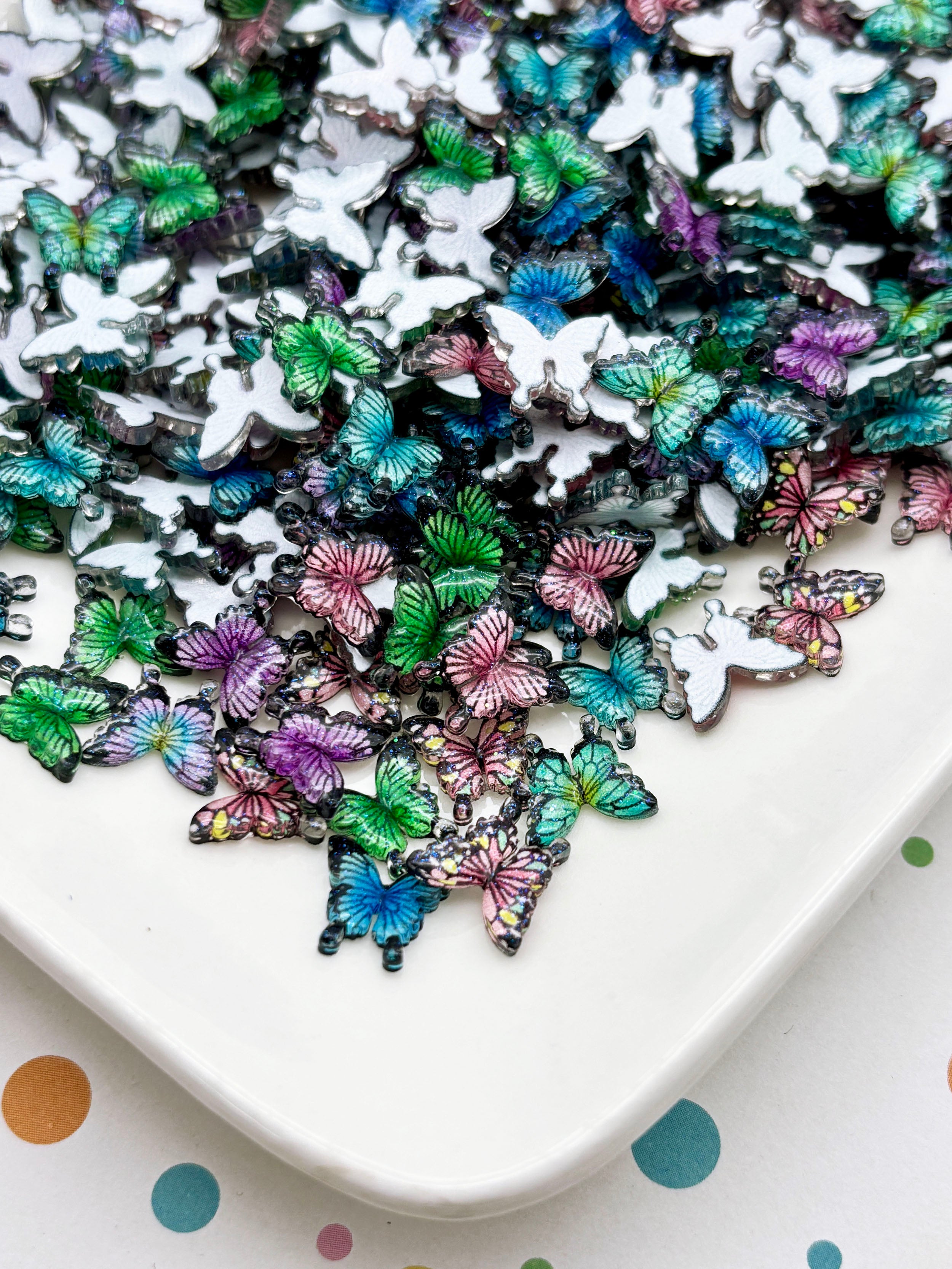 25 Multicolor Flatbacked Resin Nail Butterfly Cabochons, Tiny Flat Backed Acrylic Plastic Butterfly Bug Cabs, L180