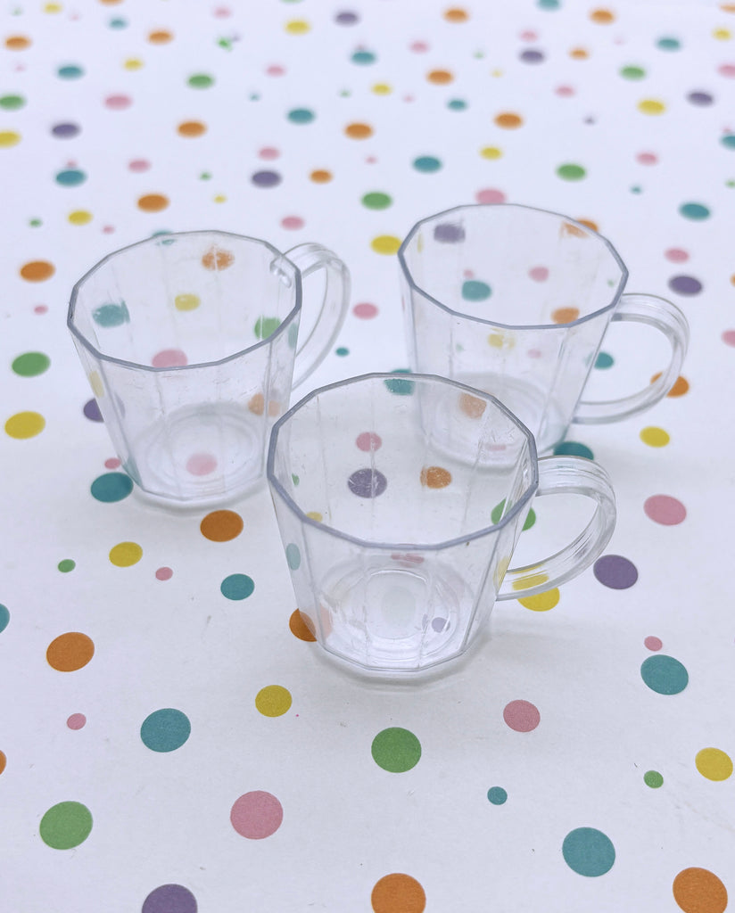 3 Clear Acrylic Plastic Miniature Dollhouse Tea Cups, Resin DIY Teacup Charms for Decoden, Fake Bake Food, and Doll Props X16