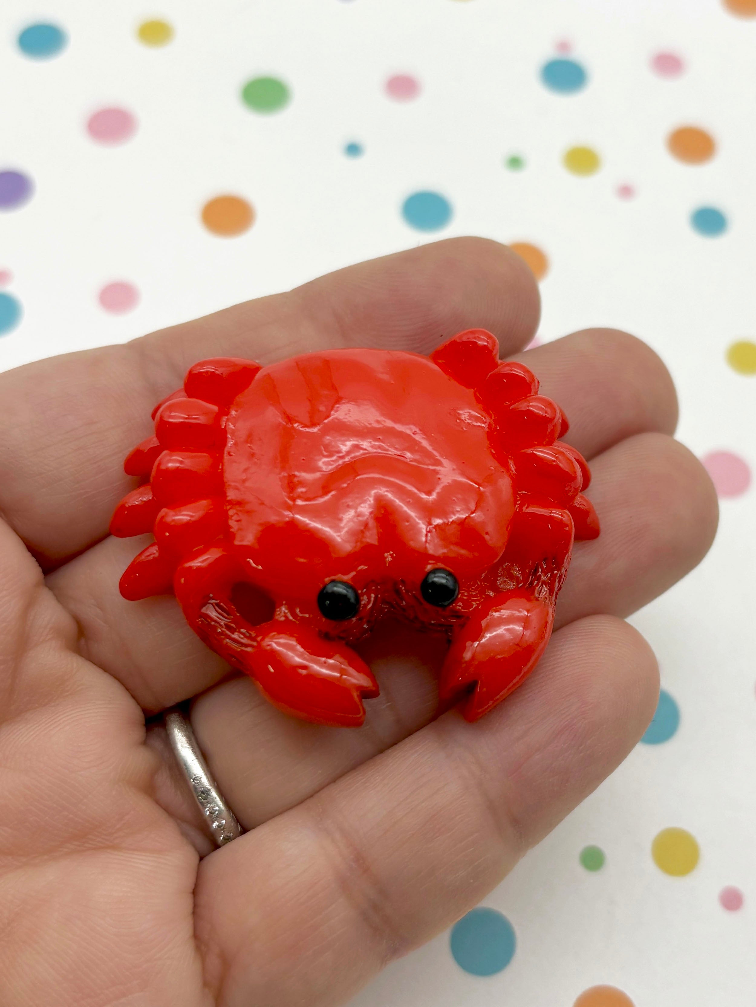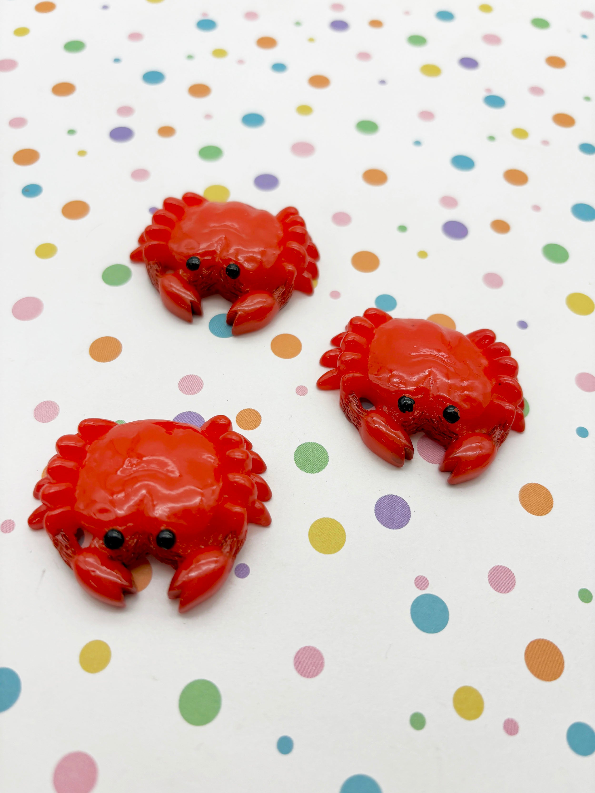 3 Huge Flat Backed Red Crab Cabochon, Flatbacked Acrylic Plastic Nautical Cute Kawaii Ocean Cabs, 702