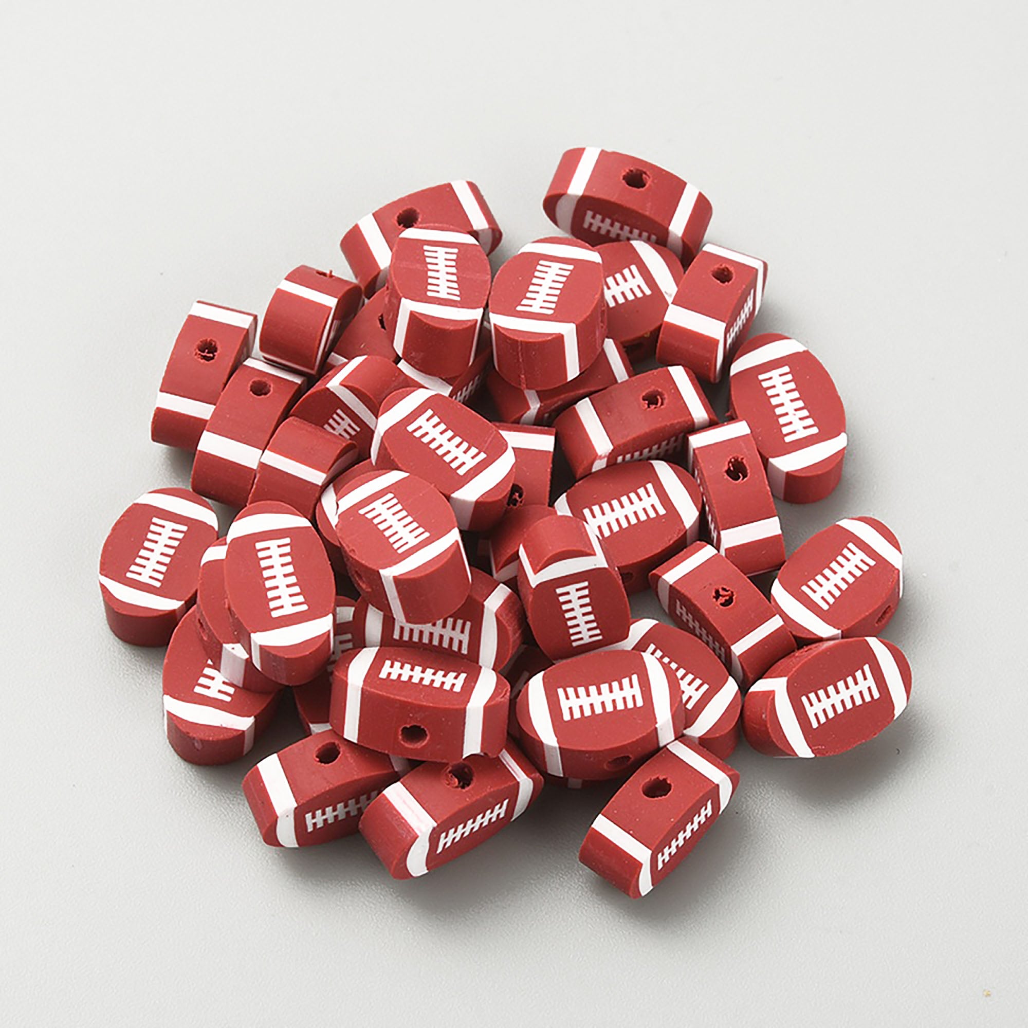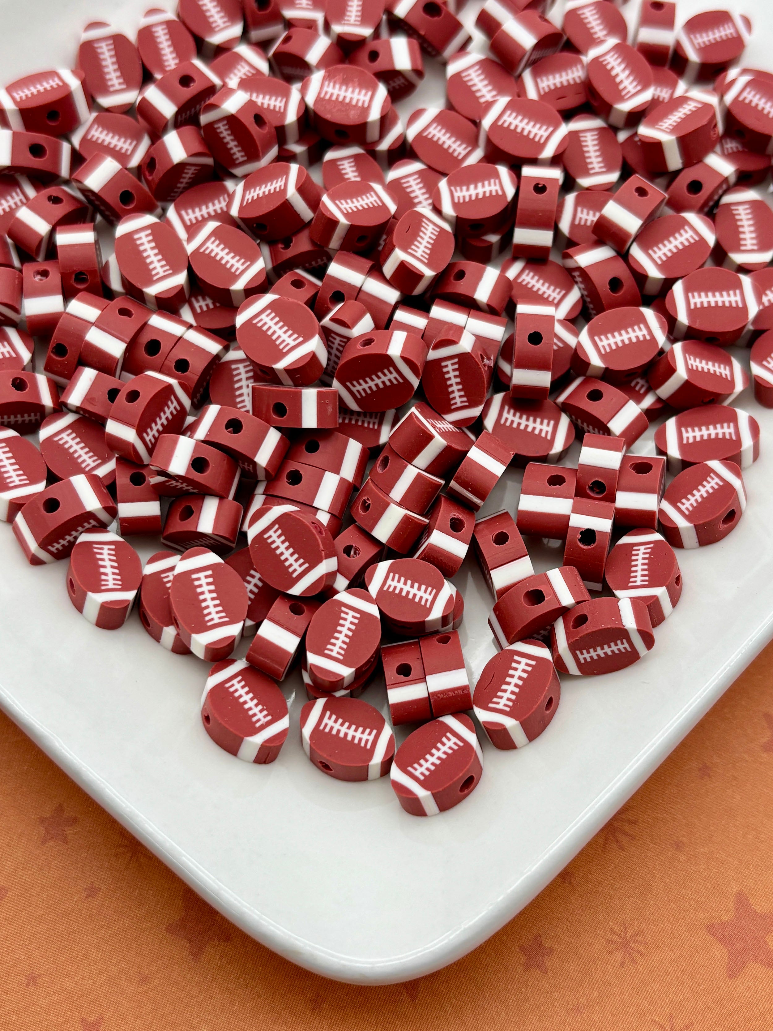 These are already baked polymer clay football beads. You will get 35 beads.
