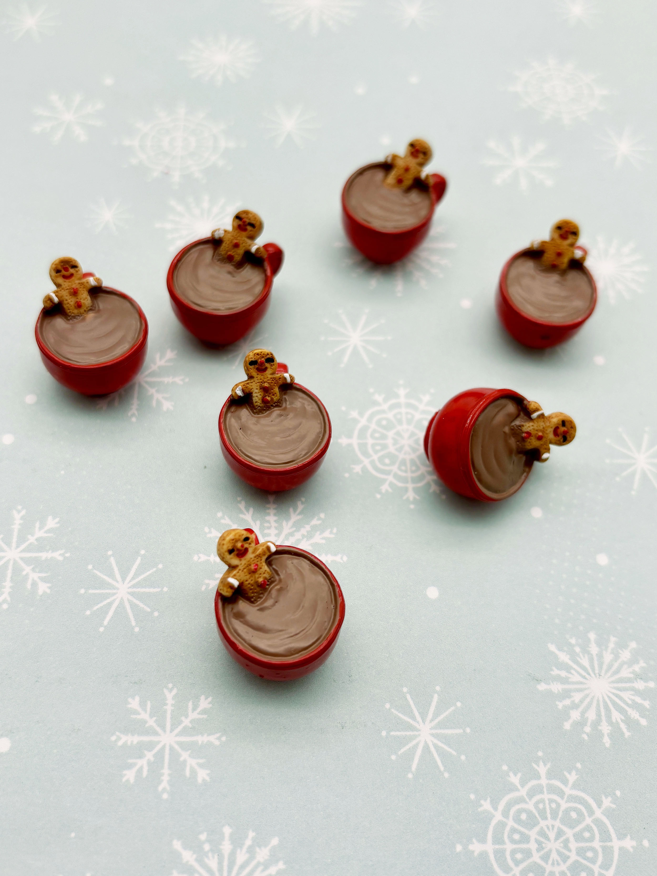 4 Cute Resin Gingerbread Men in Hot Chocolate Mug Christmas Cabochons, Cute Acrylic Plastic 3D Flat Bottom Hot Cocoa Xmas Holiday Cabs, 968