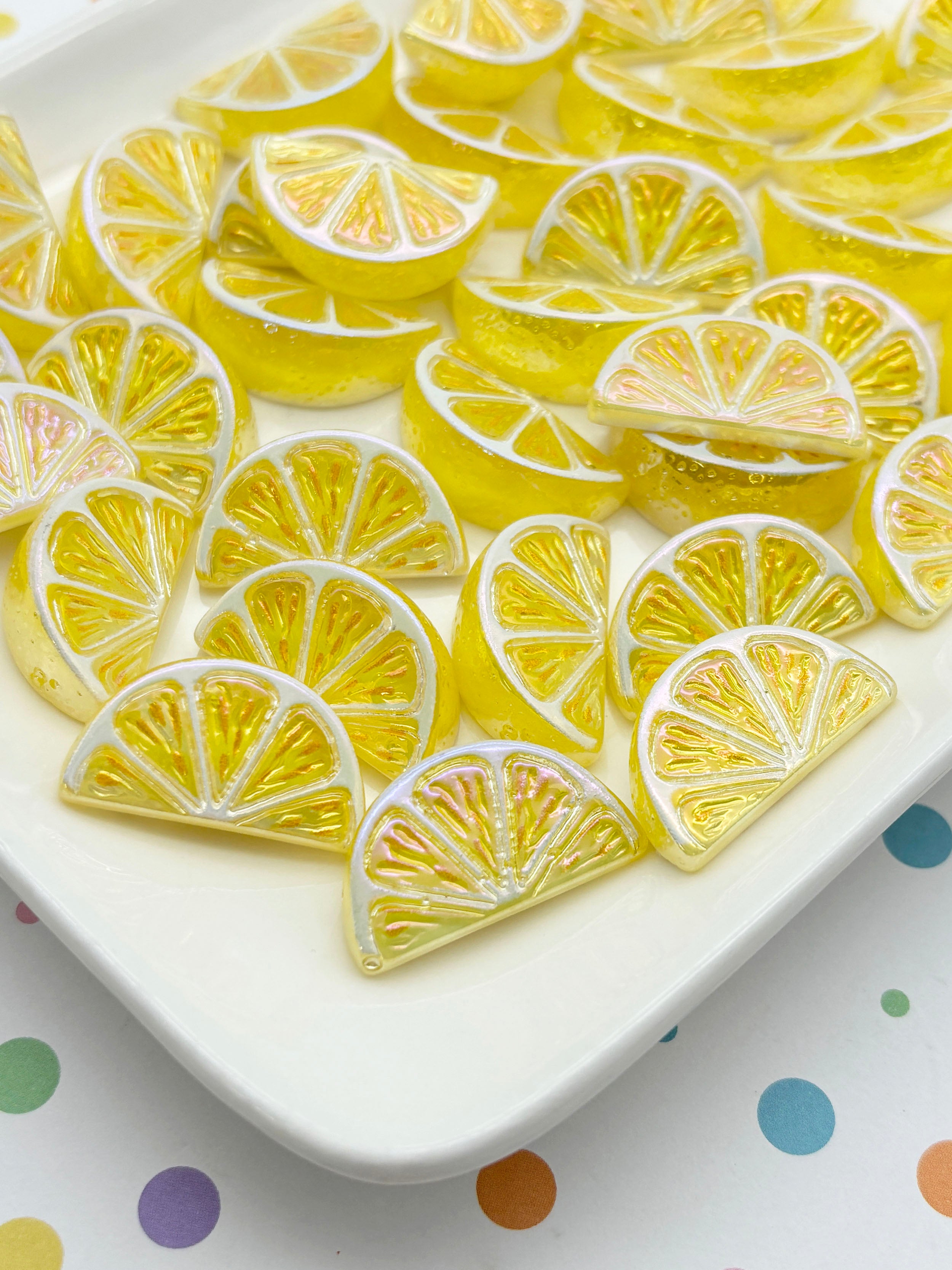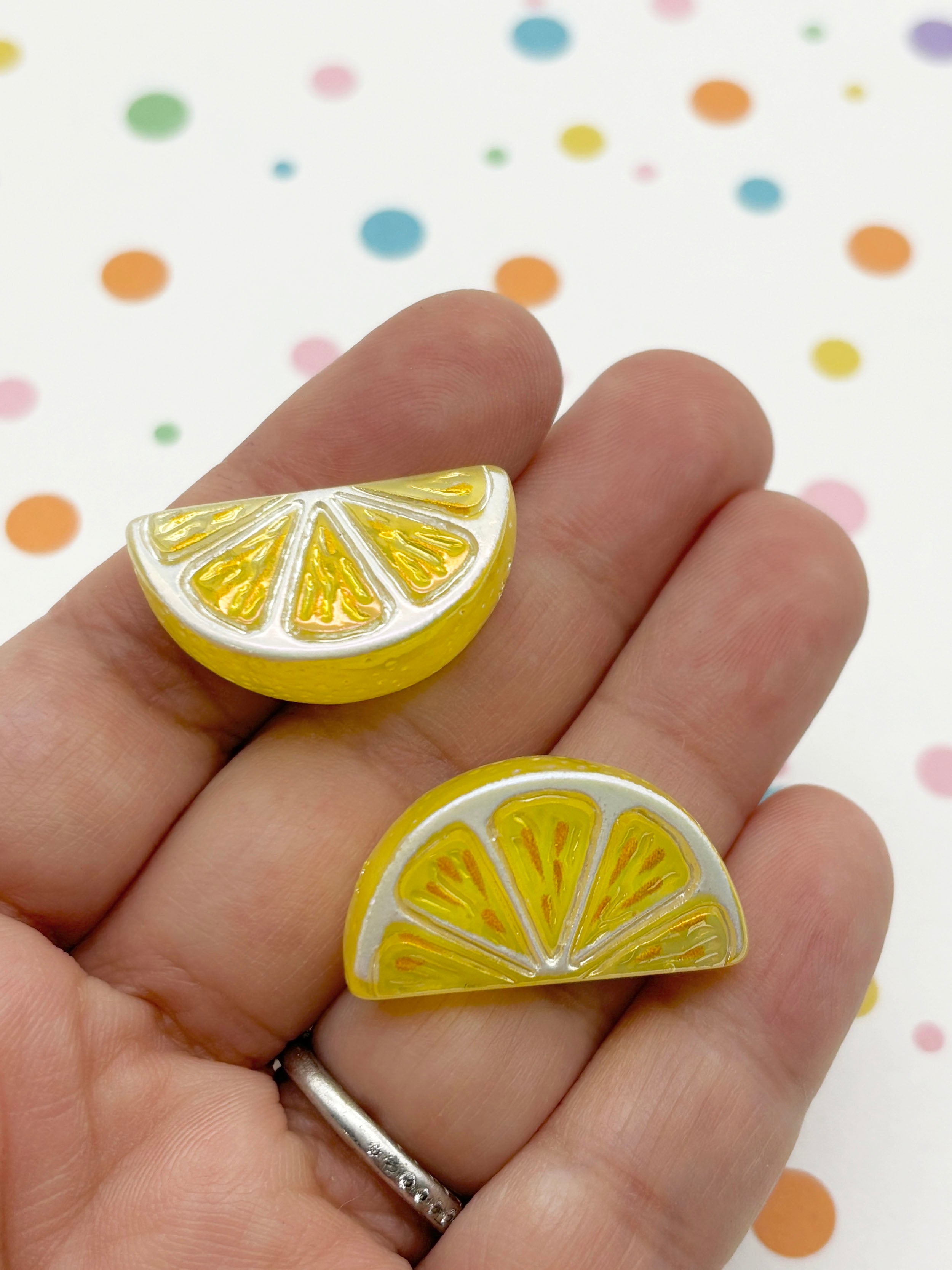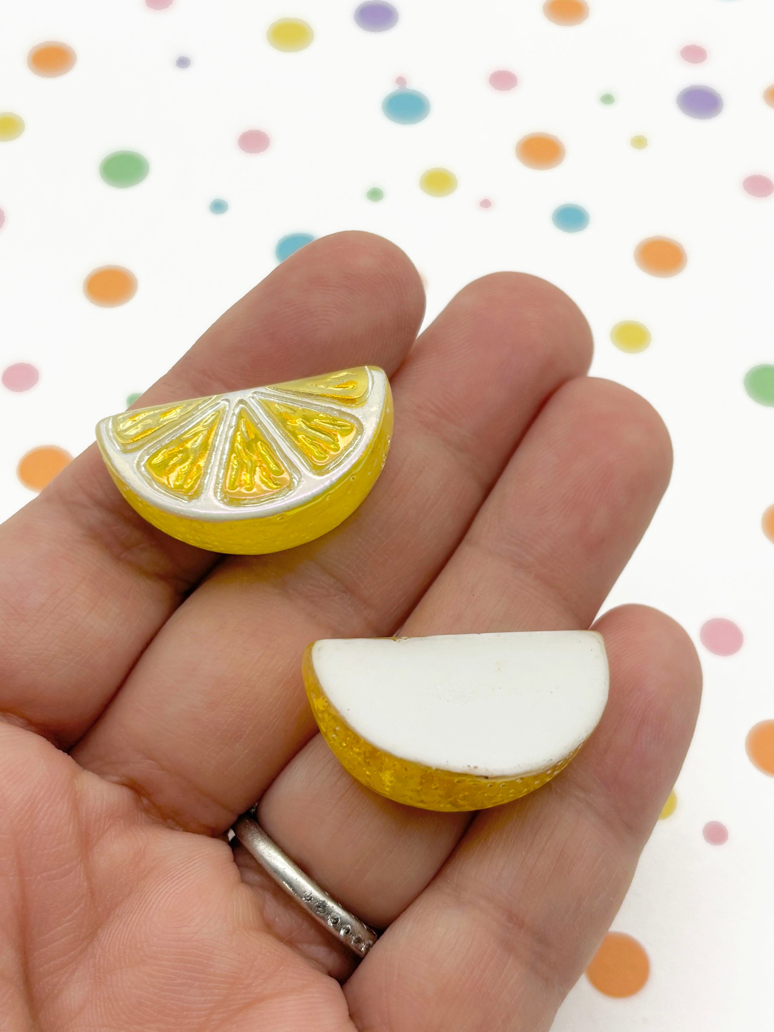 4 Flatbacked Resin Lemon Cabochons, Flat Backed Acrylic Plastic Fruit Slice Citrus Cabs 1193 is backordered and will ship as soon as it is back in stock.