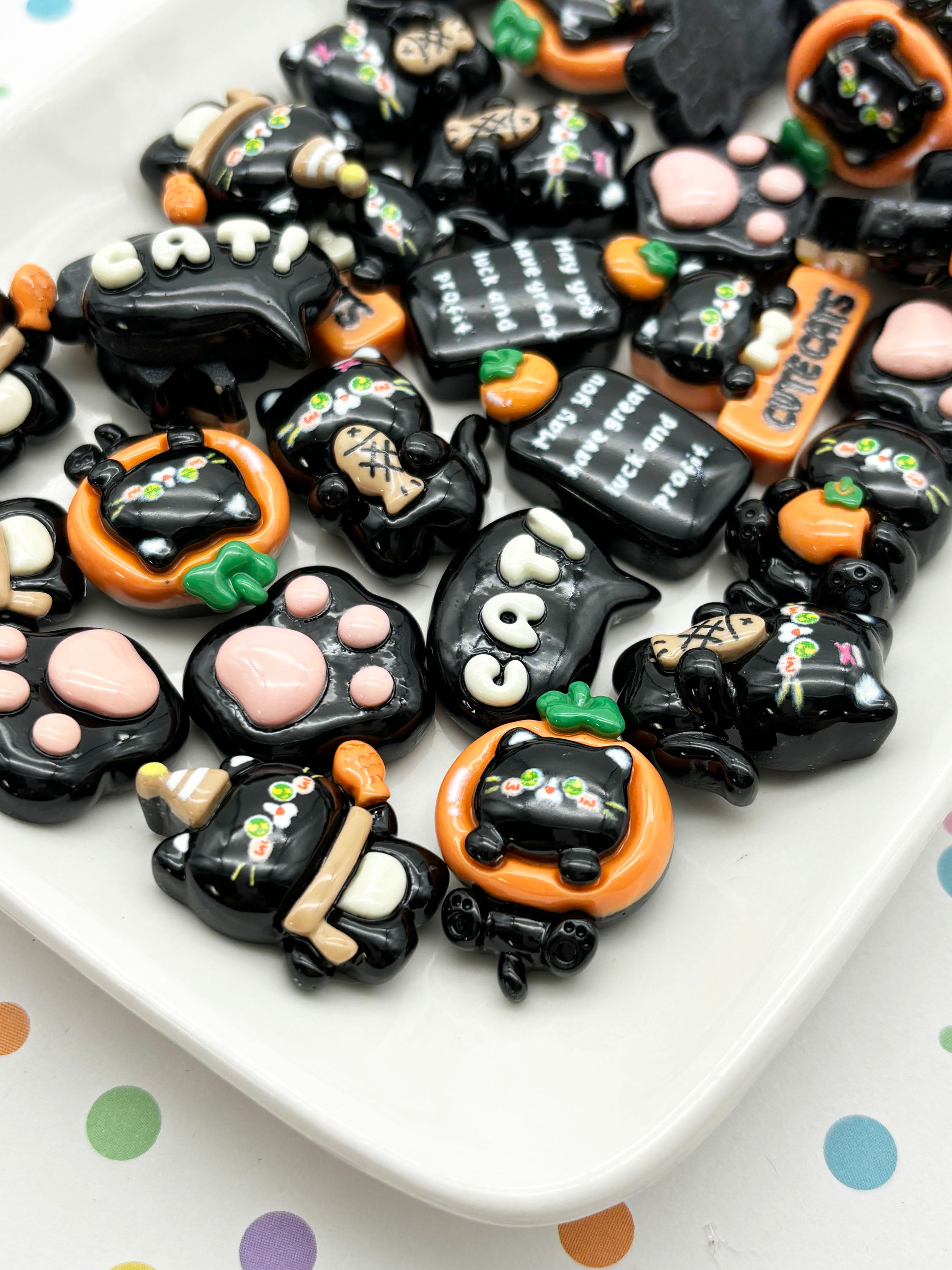 5 Cute Black Assorted Kawaii Black Kitty Cat Flatbacked Resin Cabochons, Flat Backed Acrylic Plastic Kitten Cabs, Great for Jewelry Slime, Decoden etc, 1623a
