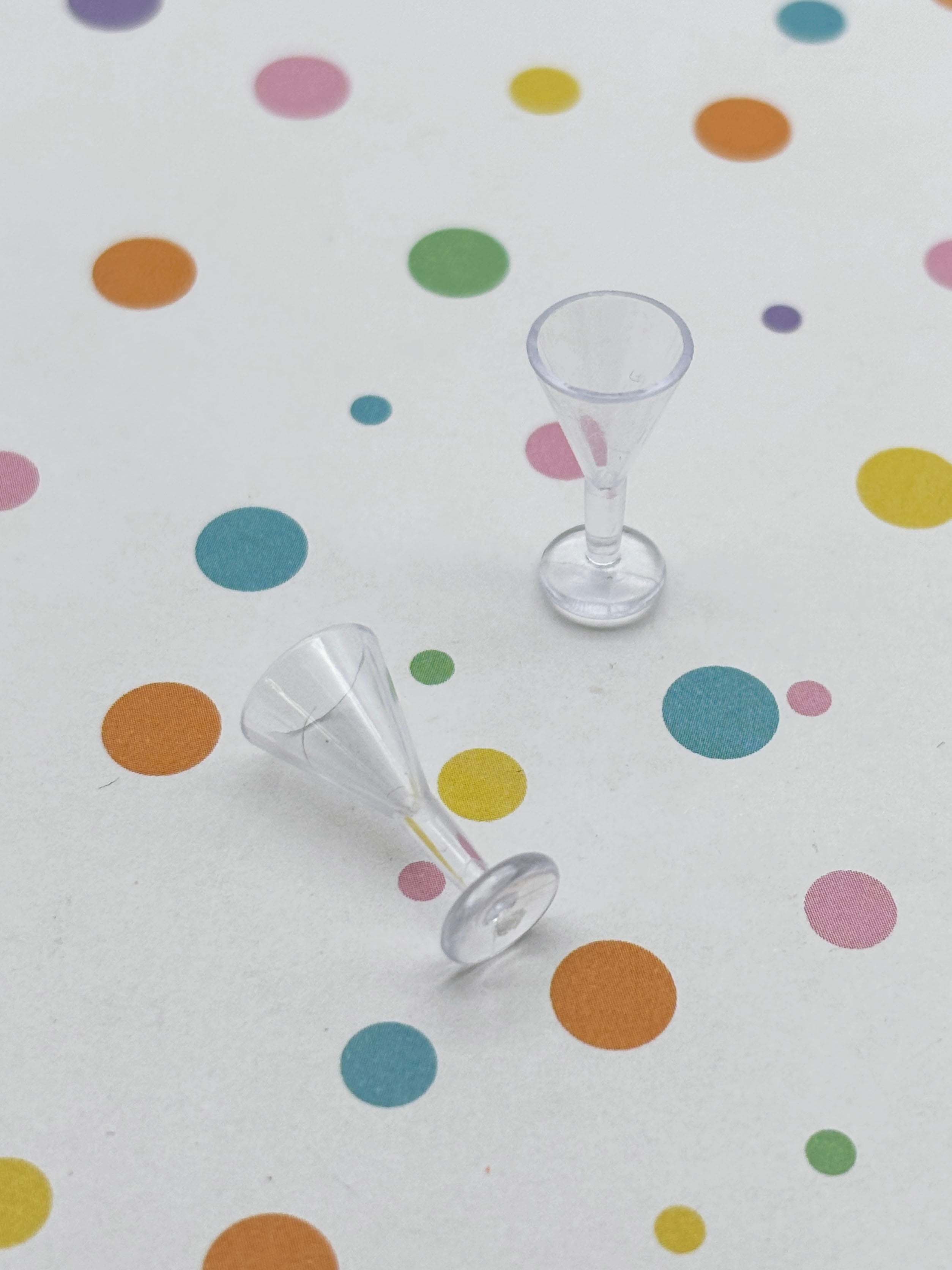 These small clear plastic wine cordial glasses are super cute and really nicely made. These can be used for making decoden desert charms, doll house props, fake food etc… Please note, these are charms and they have a tiny hole near the top so you can attach them to a jump ring to make these into jewelry.