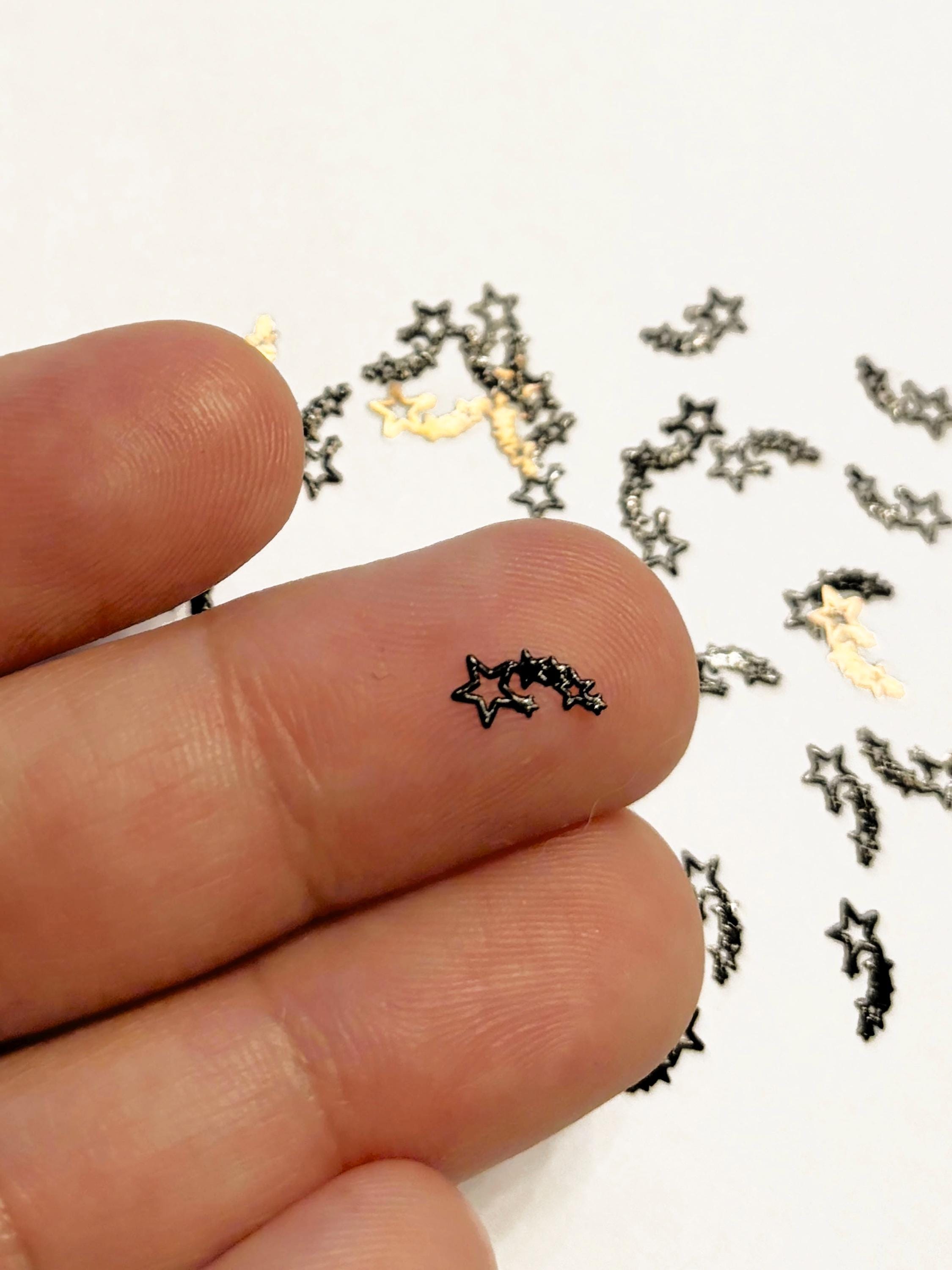 50 Pieces or Bulk Order of 800-1000pcs Tiny 6mm Black Star Cluster Cabochons, Cute Kawaii Nail Decoration Cabs, Charm Resin Supplies 1455