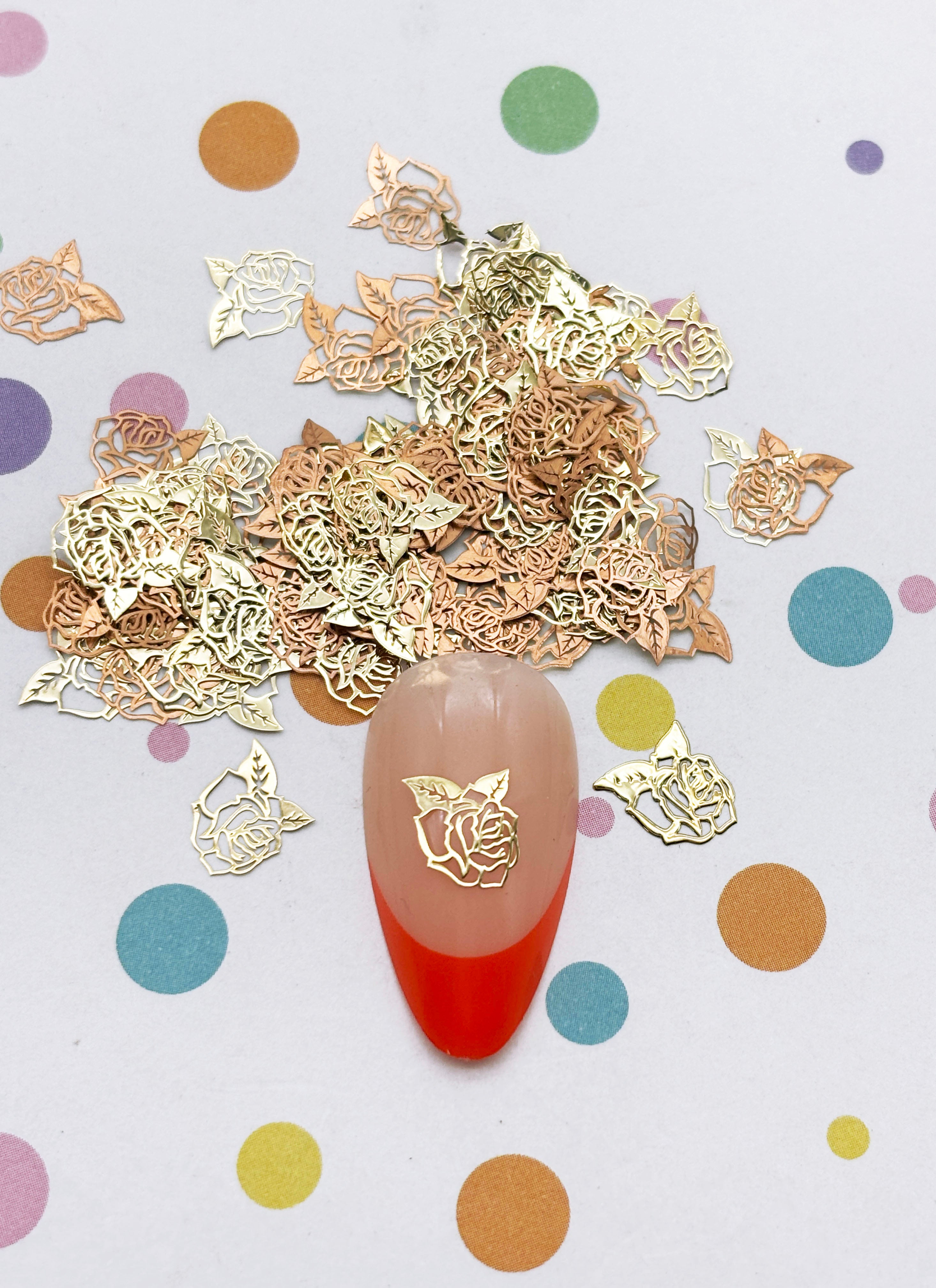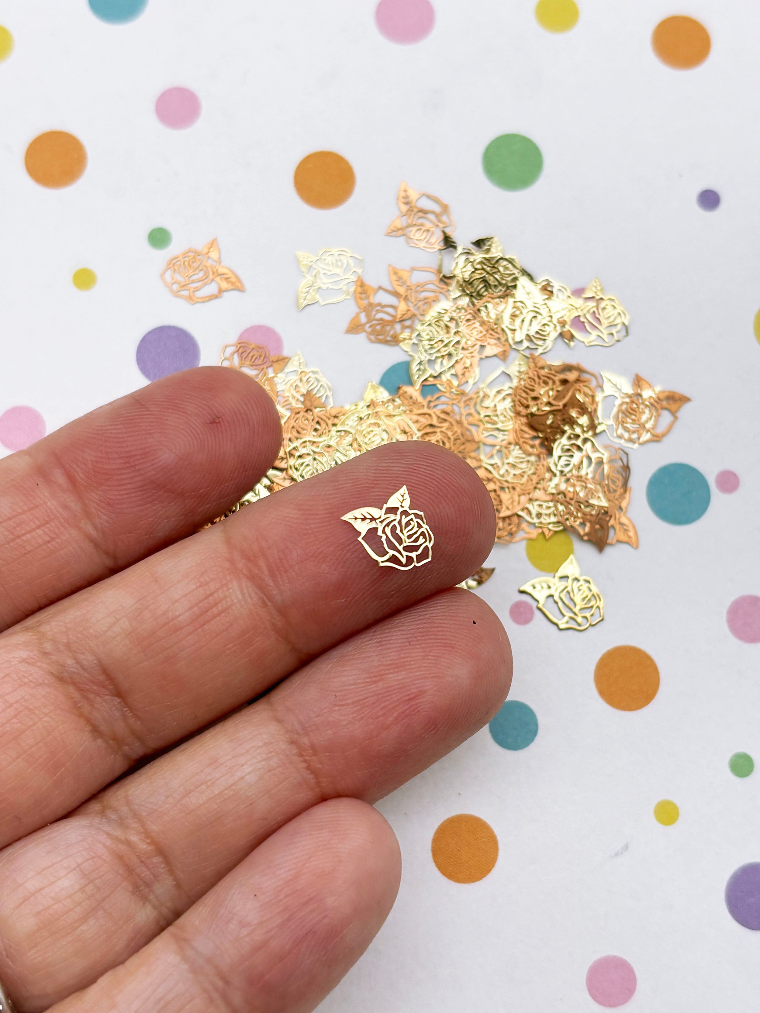 50 Tiny 10mm Gold Toned Metallic Rose Flower Cabochons, Cute Kawaii Nail Cabs, Charm Resin Supplies 1715