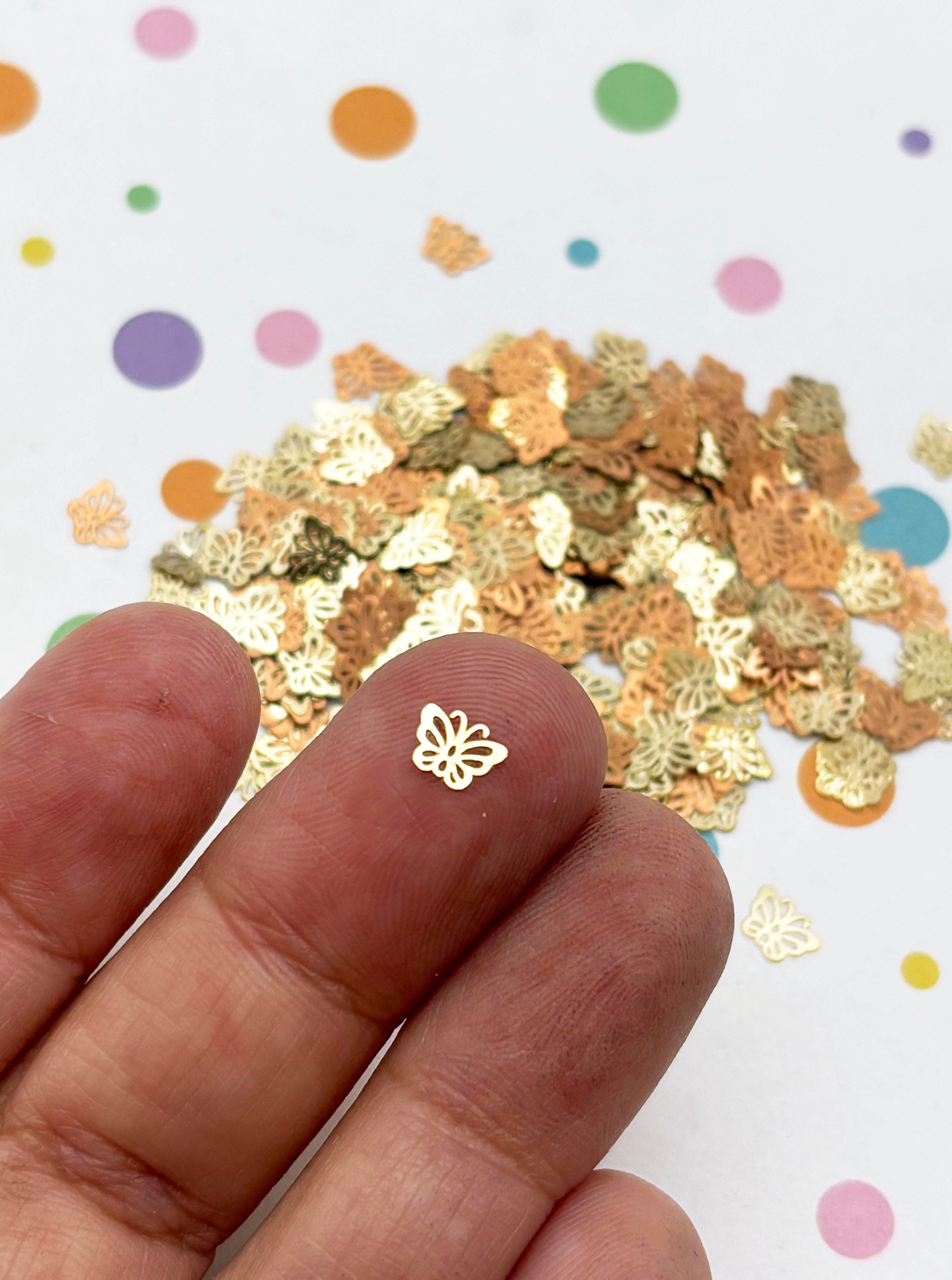 50 Tiny 6mm Gold Toned Metallic Butterfly Cabochons, Cute Kawaii Nail Butterfly Cabs, Charm Resin Supplies, Resin add-on 1794