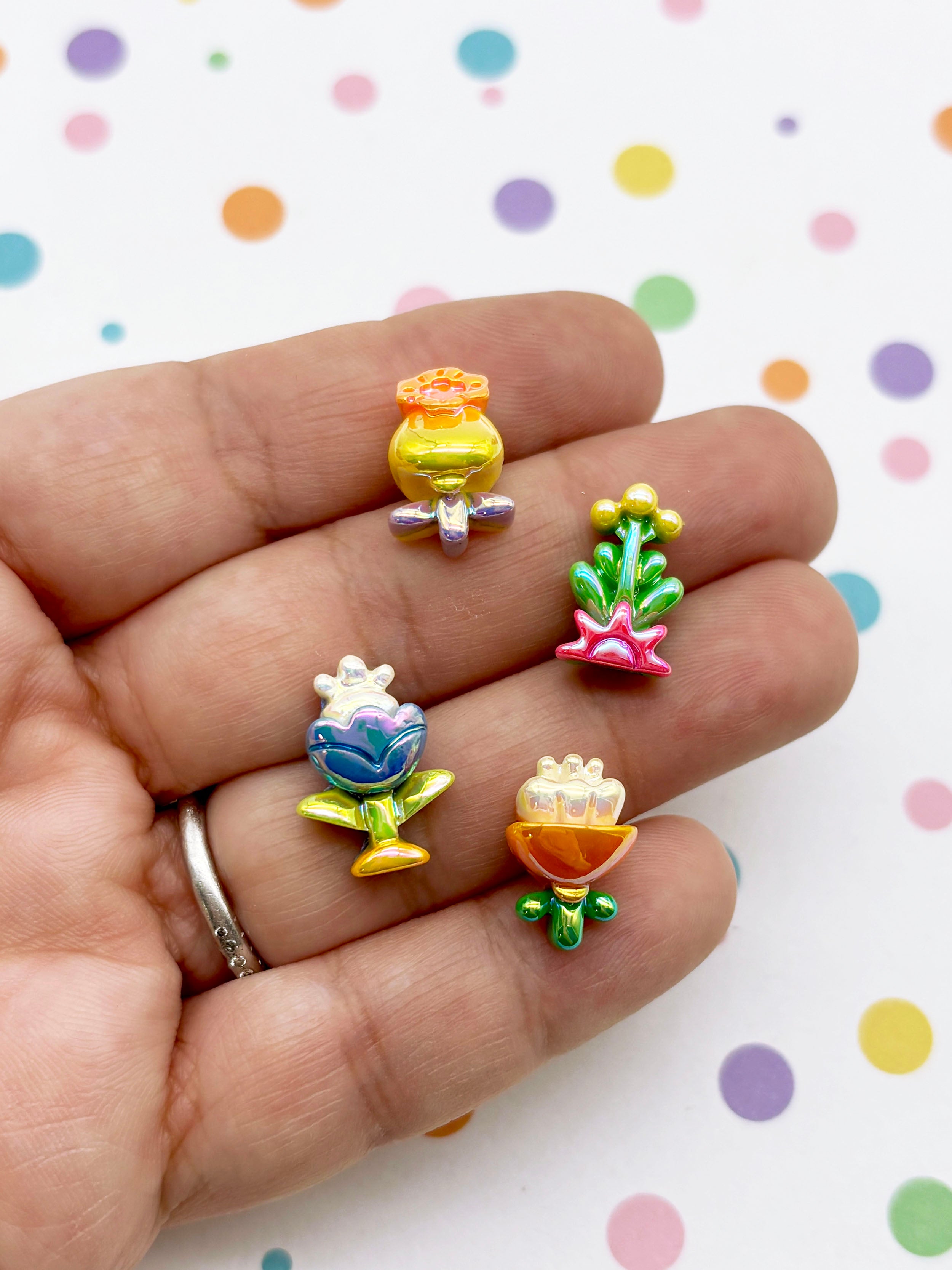 6 Flatbacked Colorful Ab Resin Spring Flower Cabochons, Flat Backed Acrylic Plastic Floral Cabs L280